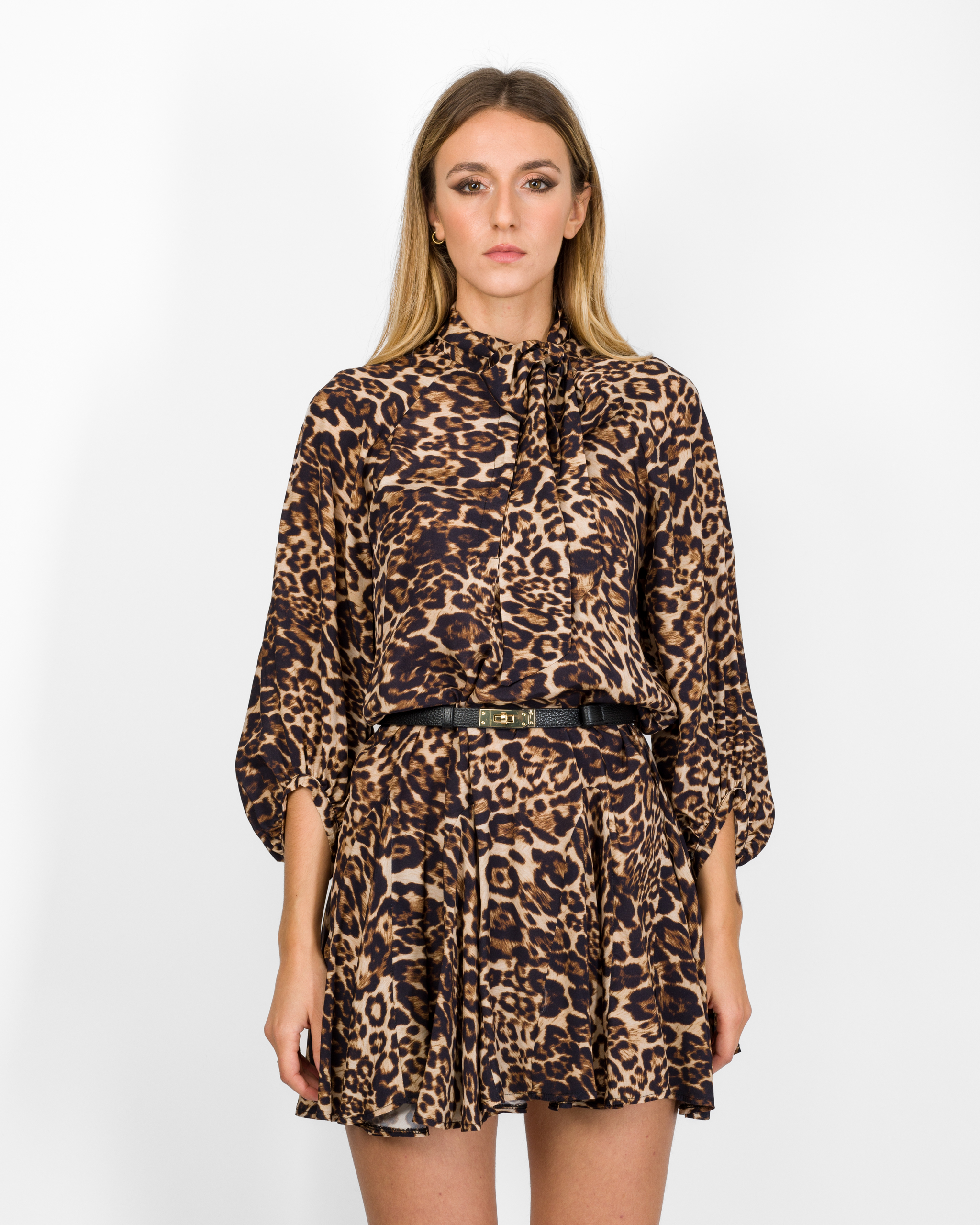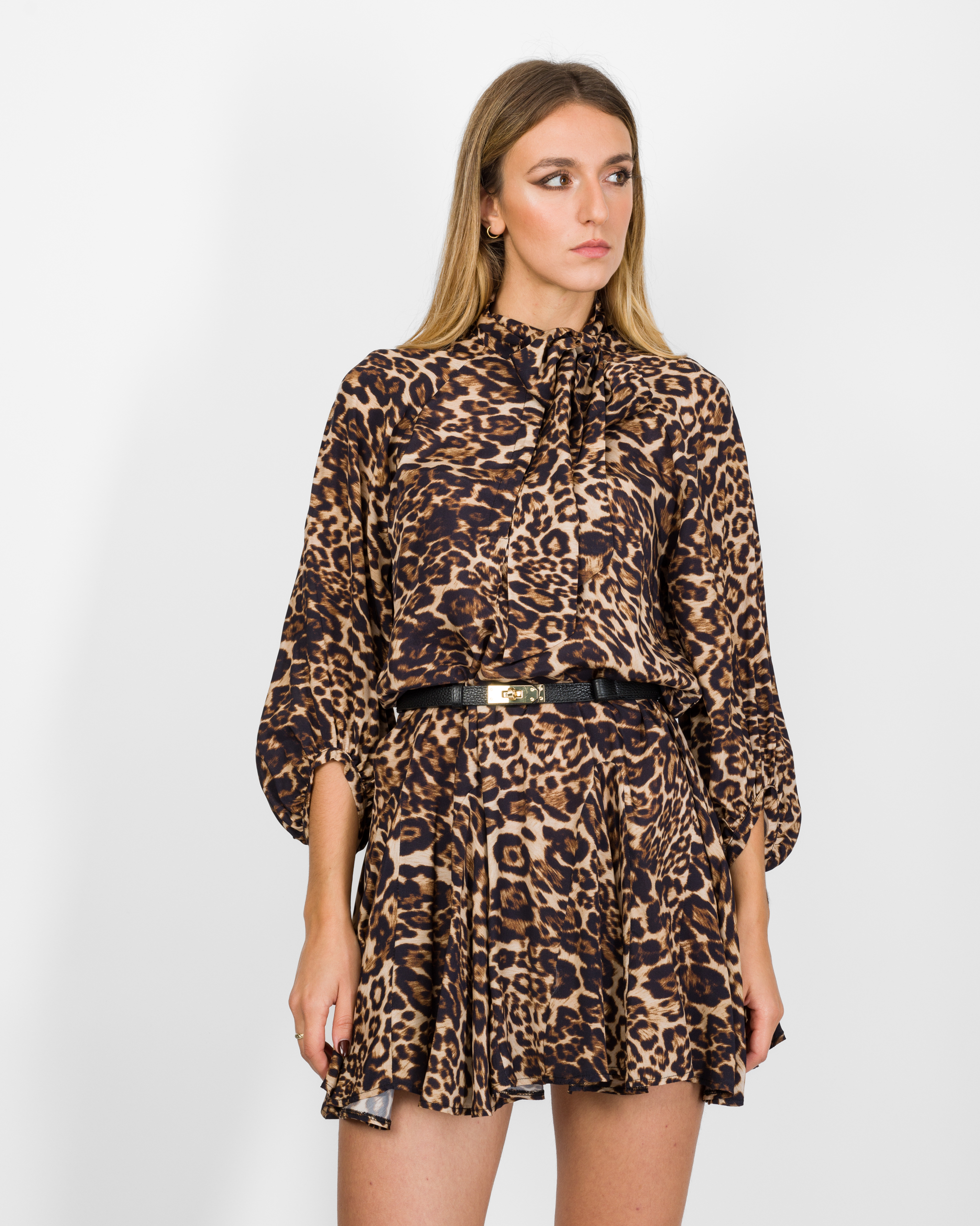 ABITO ANIMALIER CON FIOCCO E MANICA 3/4 – DIXIE