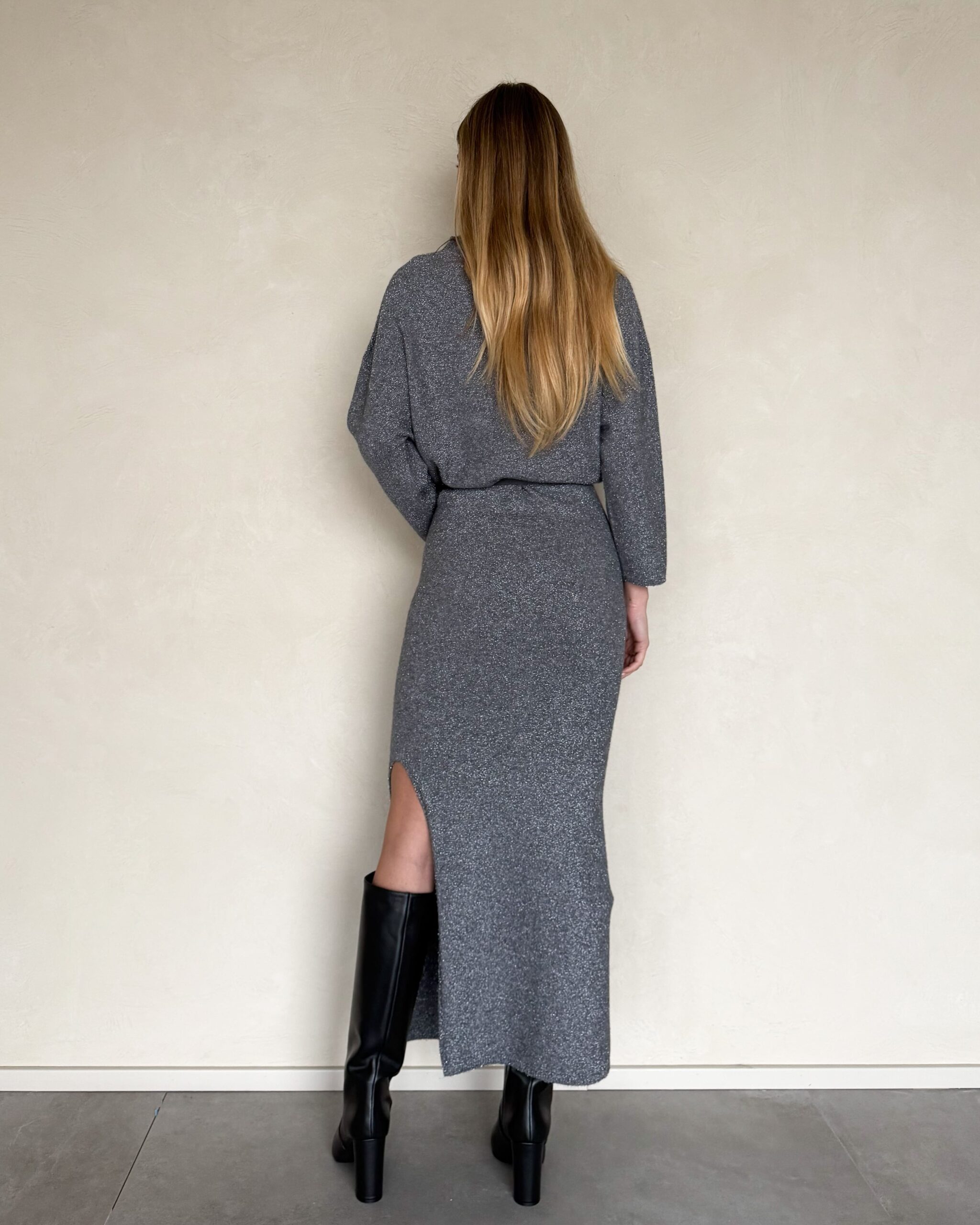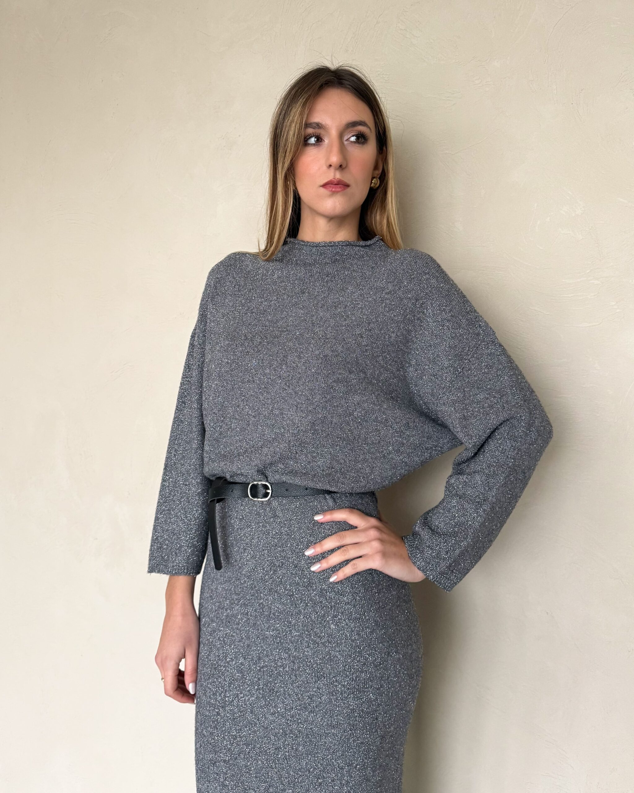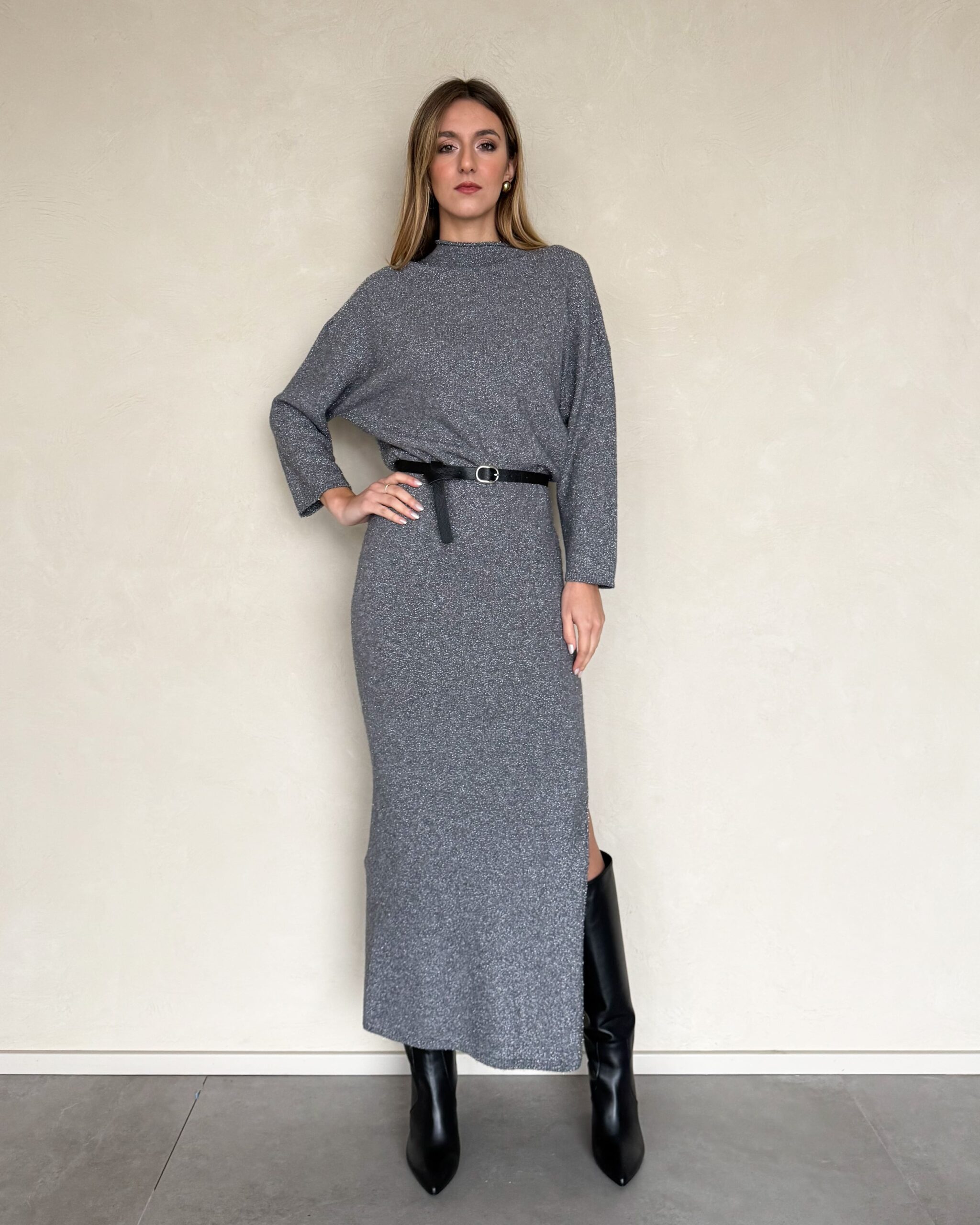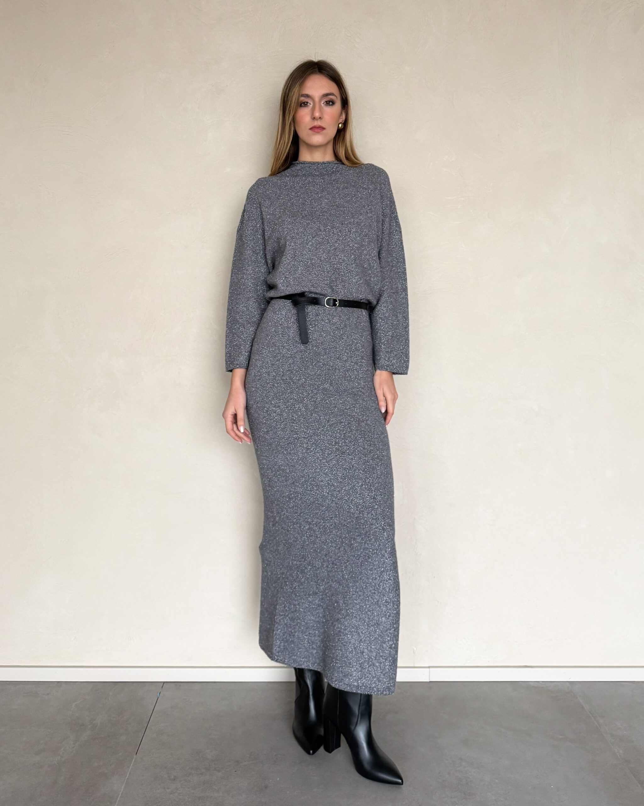 ABITO LUNGO CON FILO LUREX E CINTURA – KONTATTO