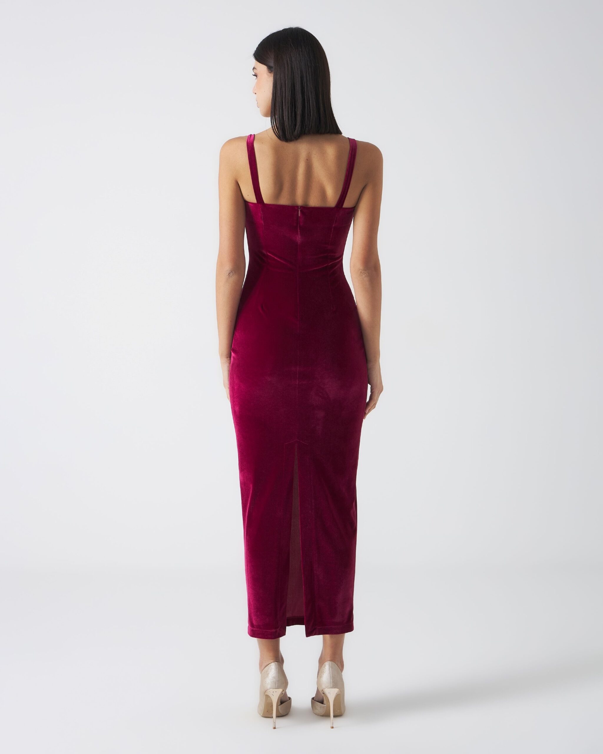 Un abito elegante e sensuale, perfetto per cerimonie, serate speciali e occasioni in cui il velluto diventa protagonista. Ideale da abbinare a sandali gioiello o décolleté luminose.