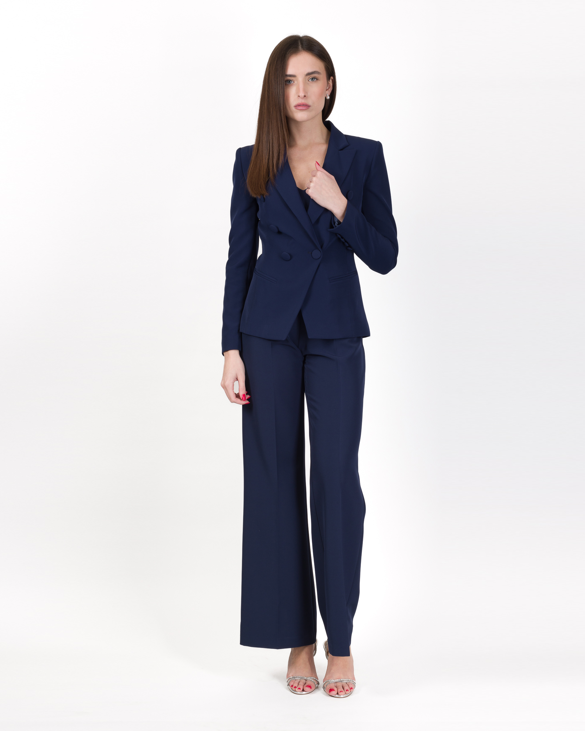 Blazer dal taglio sartoriale, elegante e raffinato. Per le vostre occasioni speciali, abbinato al suo pantalone crea un outfit perfetto ed impeccabile.