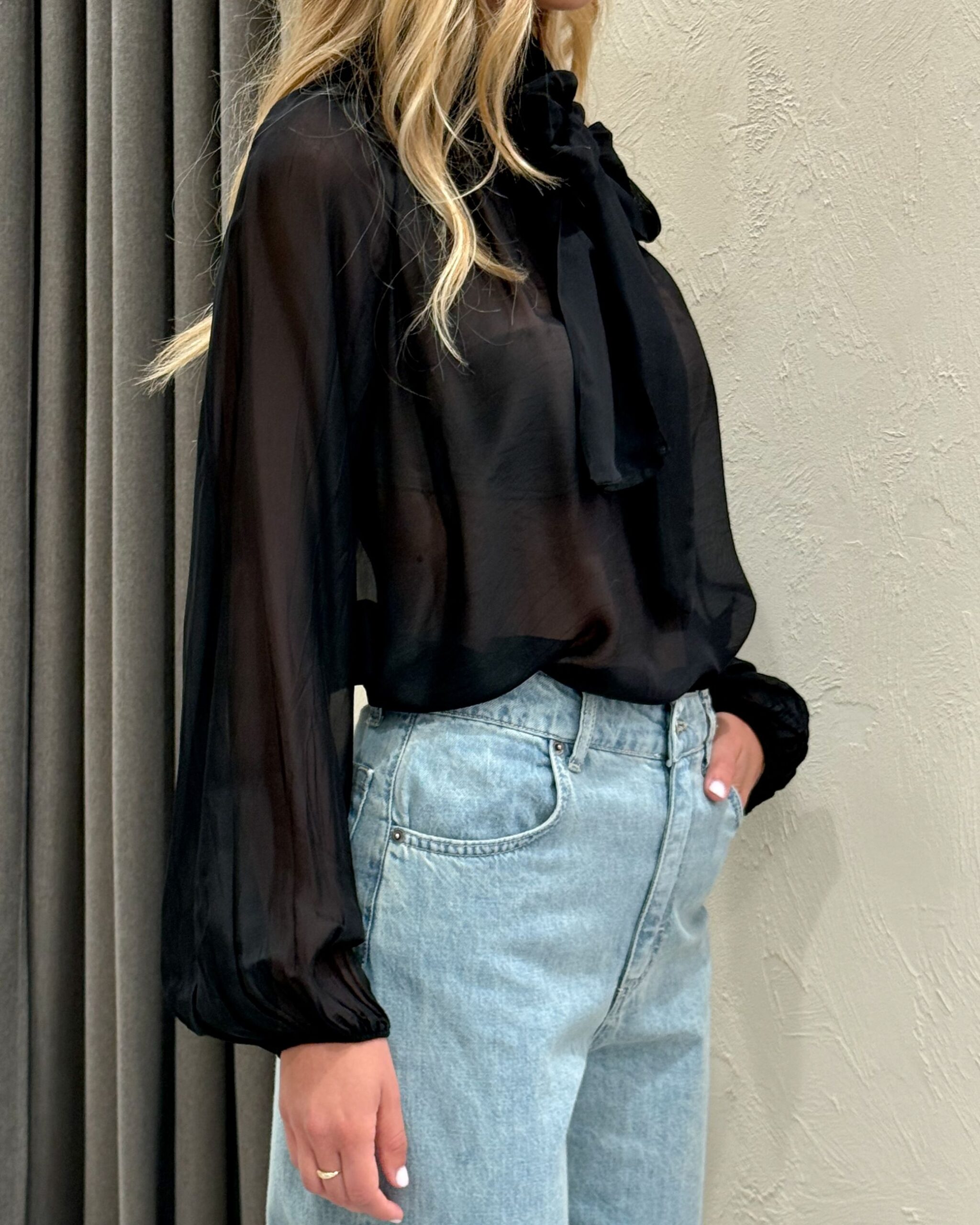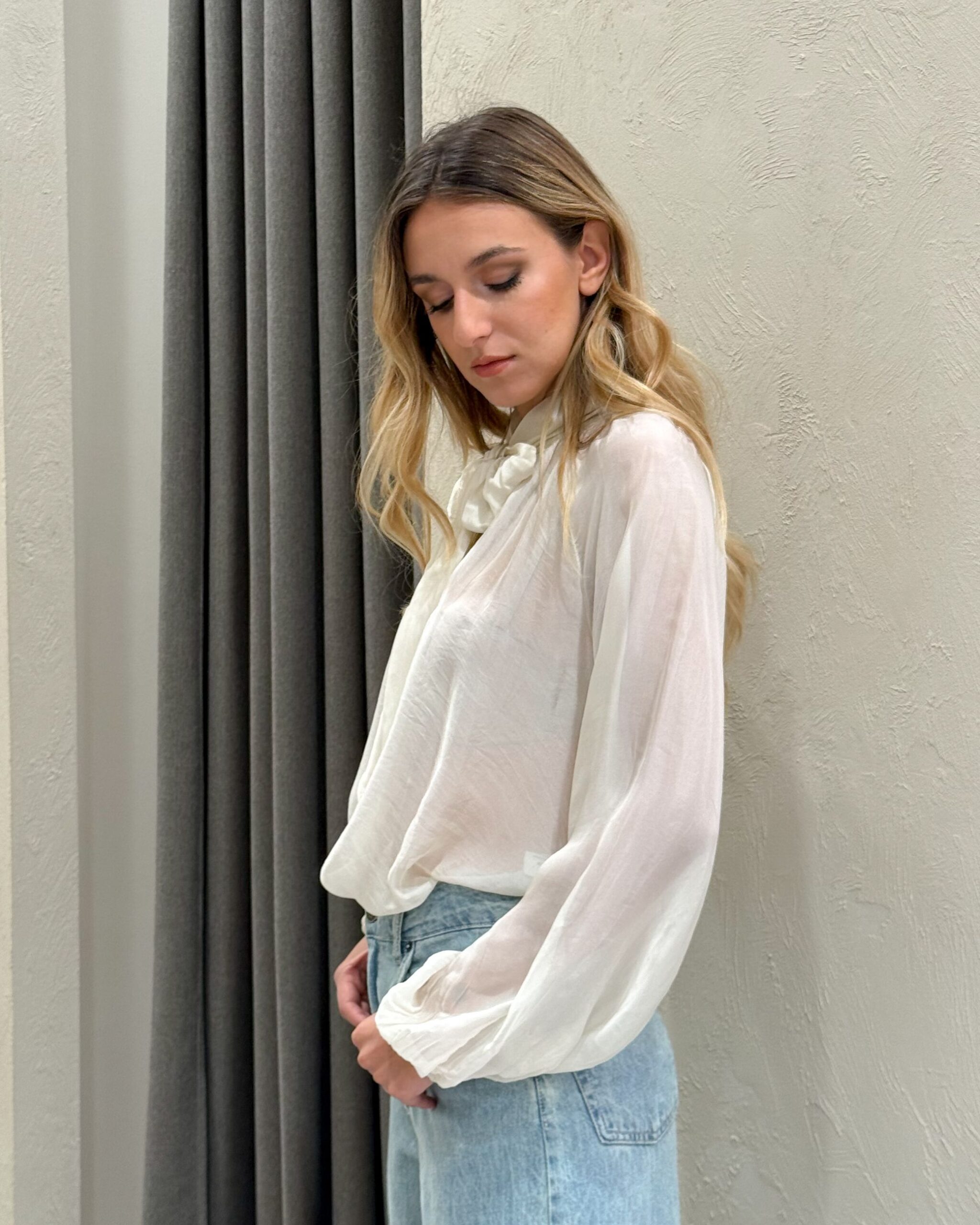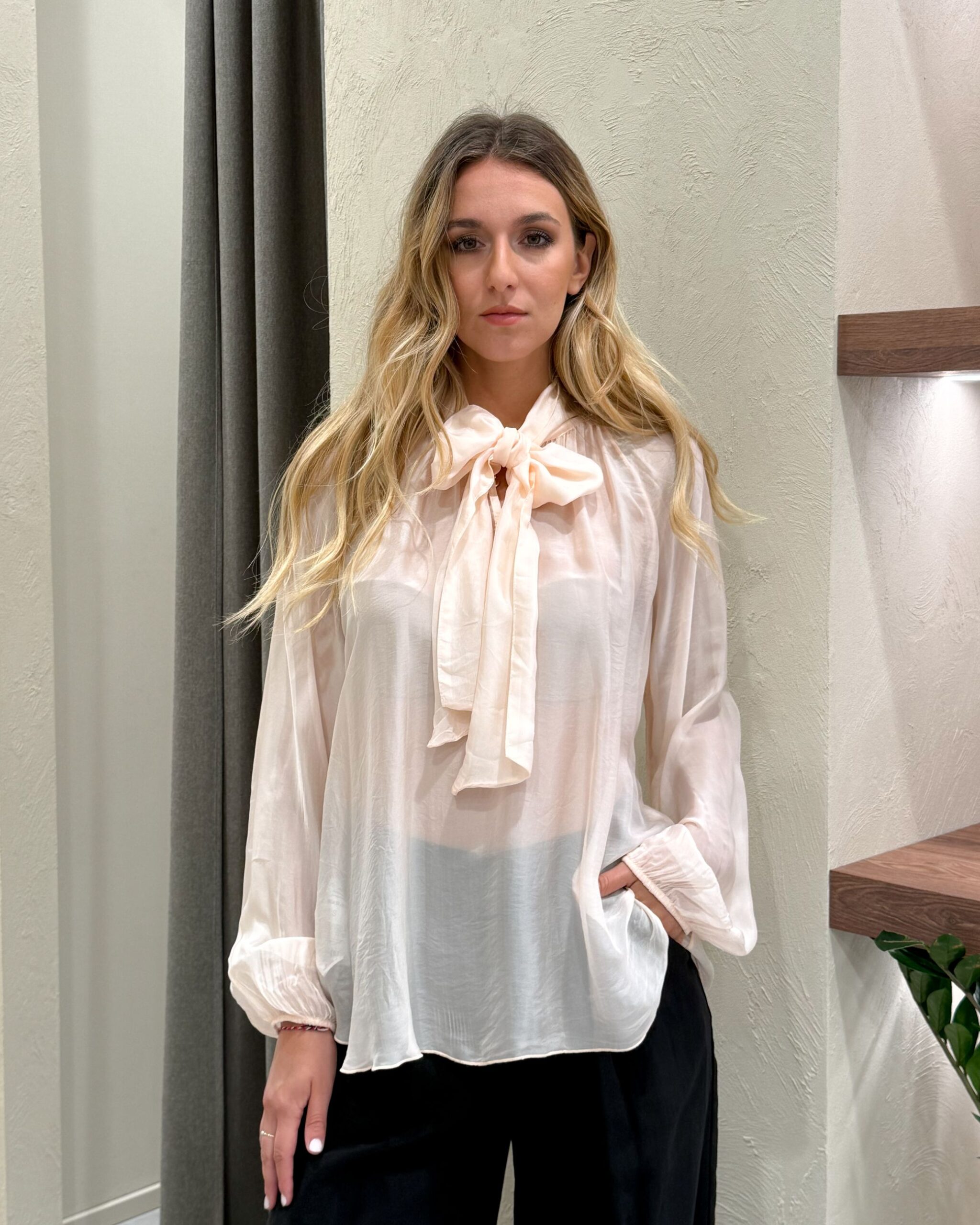 BLUSA CON FIOCCO IN VISCOSA MISTO SETA – DIXIE