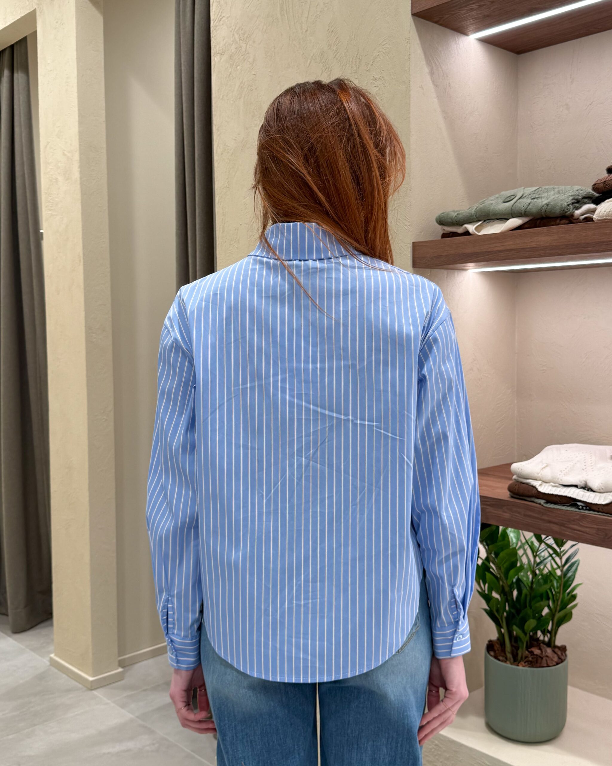 La camicia della collezione primavera/estate di Haveone si distingue per il motivo a righe bianche su fondo azzurro, elegante e intramontabile. Il colletto classico e i polsini strutturano il capo, mentre l’orlo stondato e la vestibilità morbida garantiscono una linea fluida e confortevole.