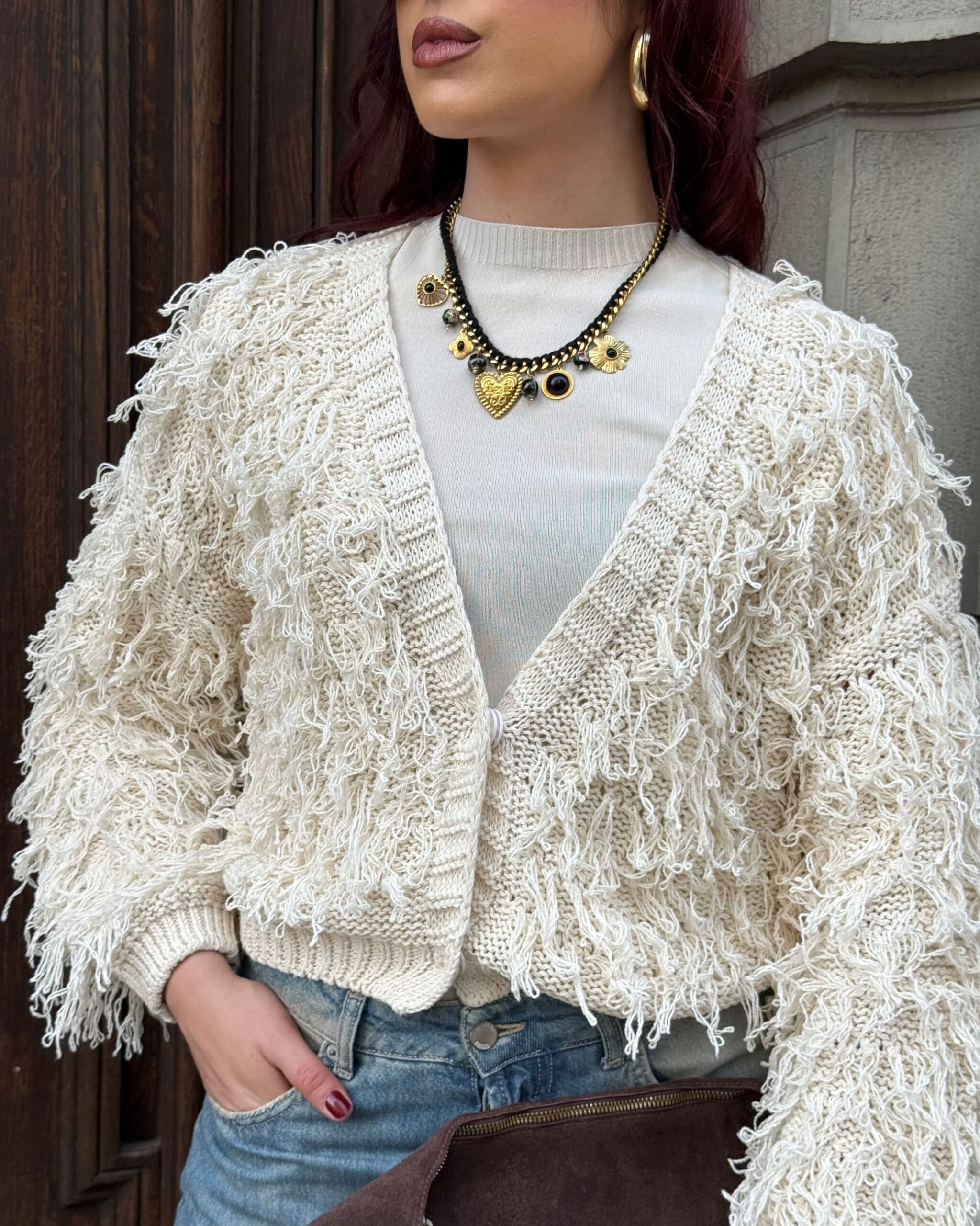 CARDIGAN CORTO CON FRANGE – HAVEONE