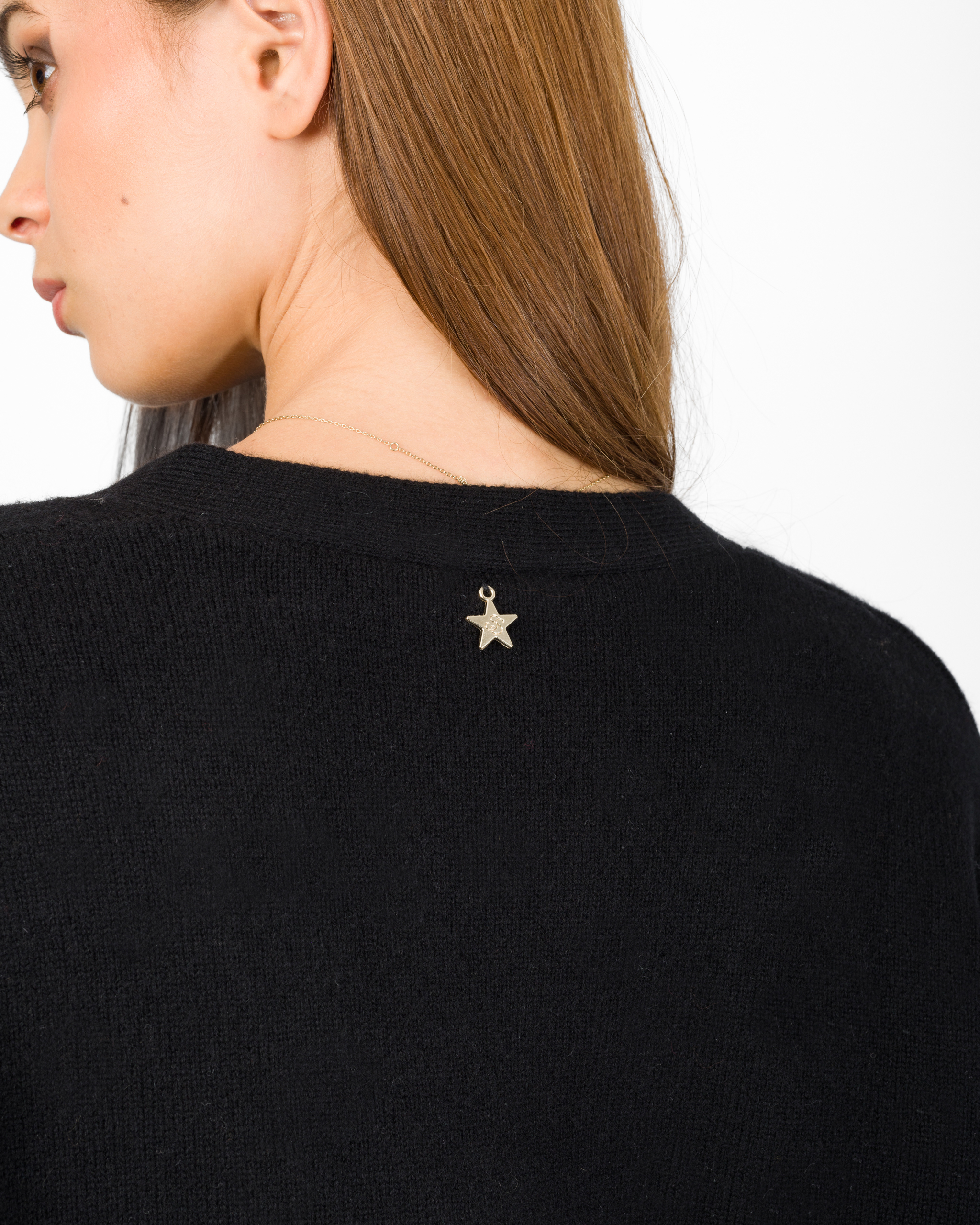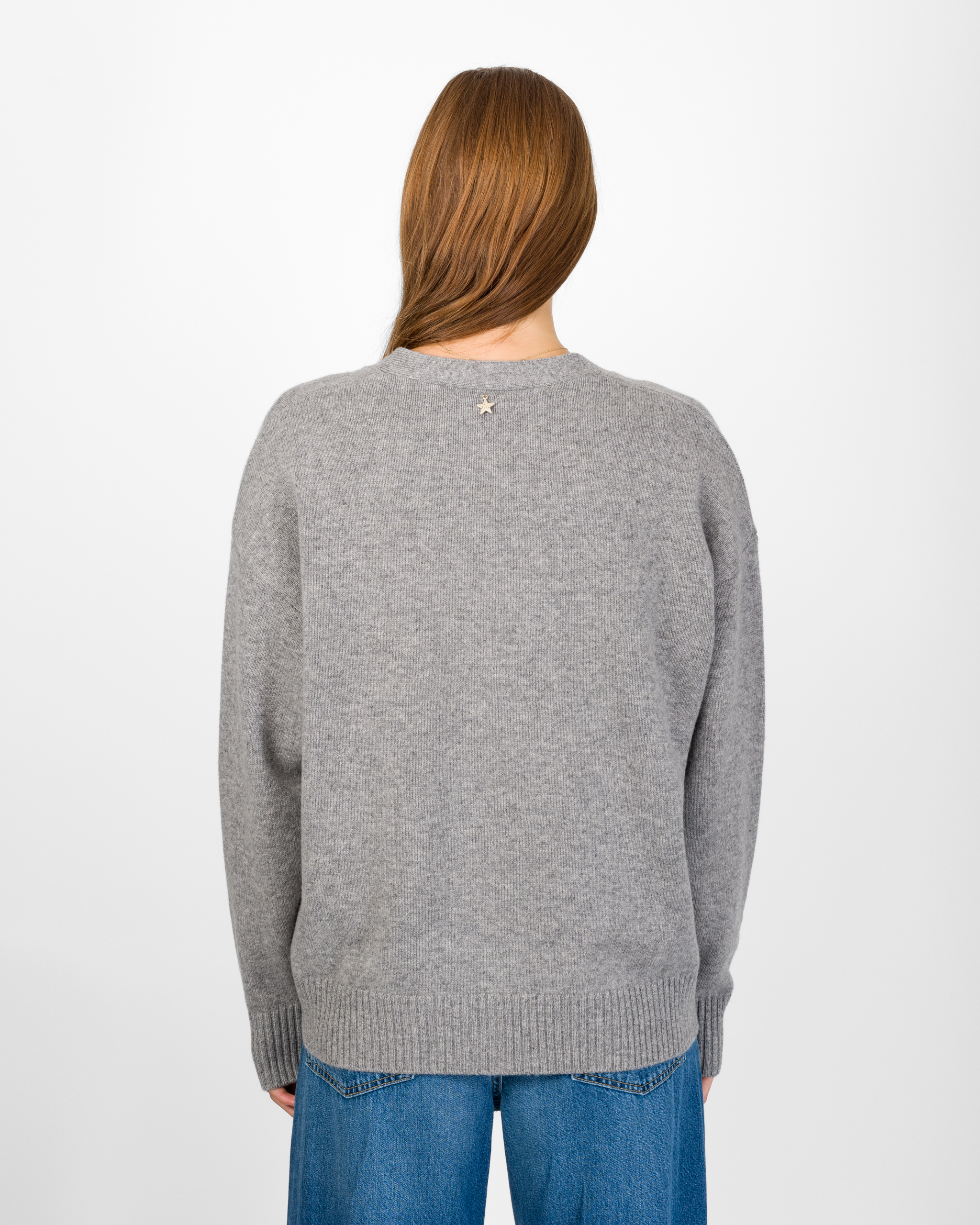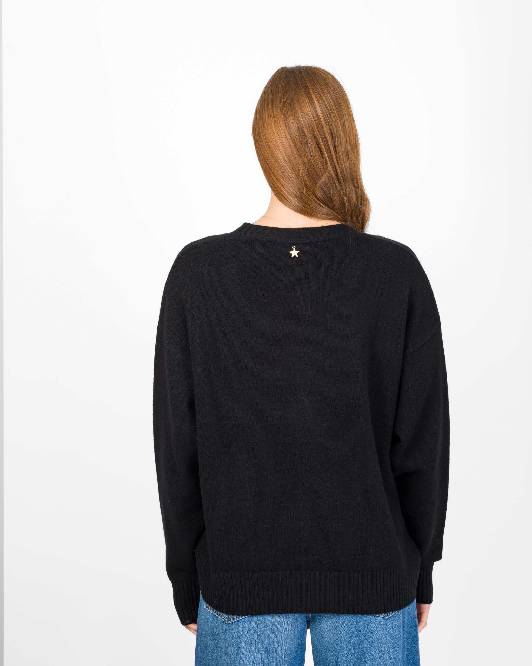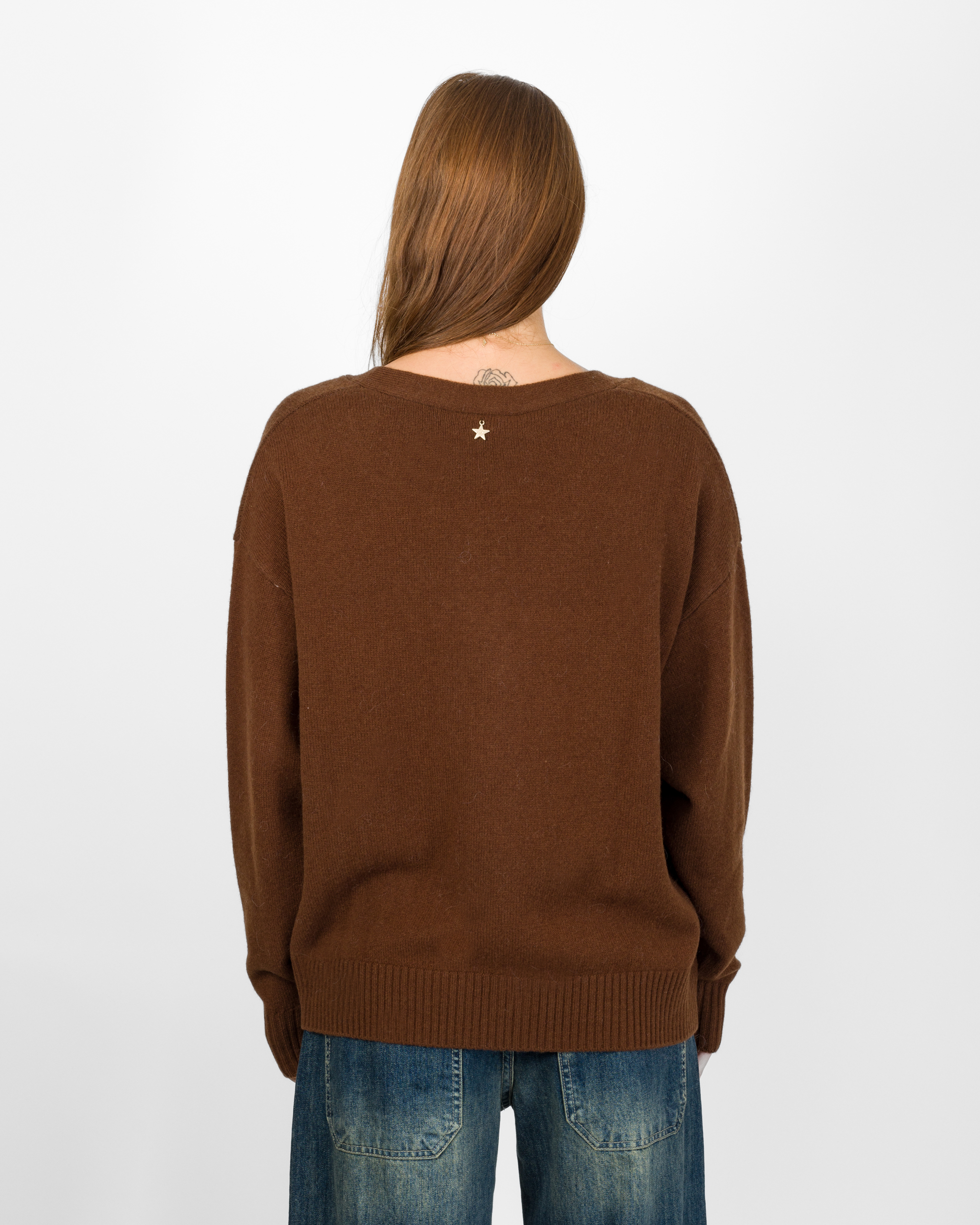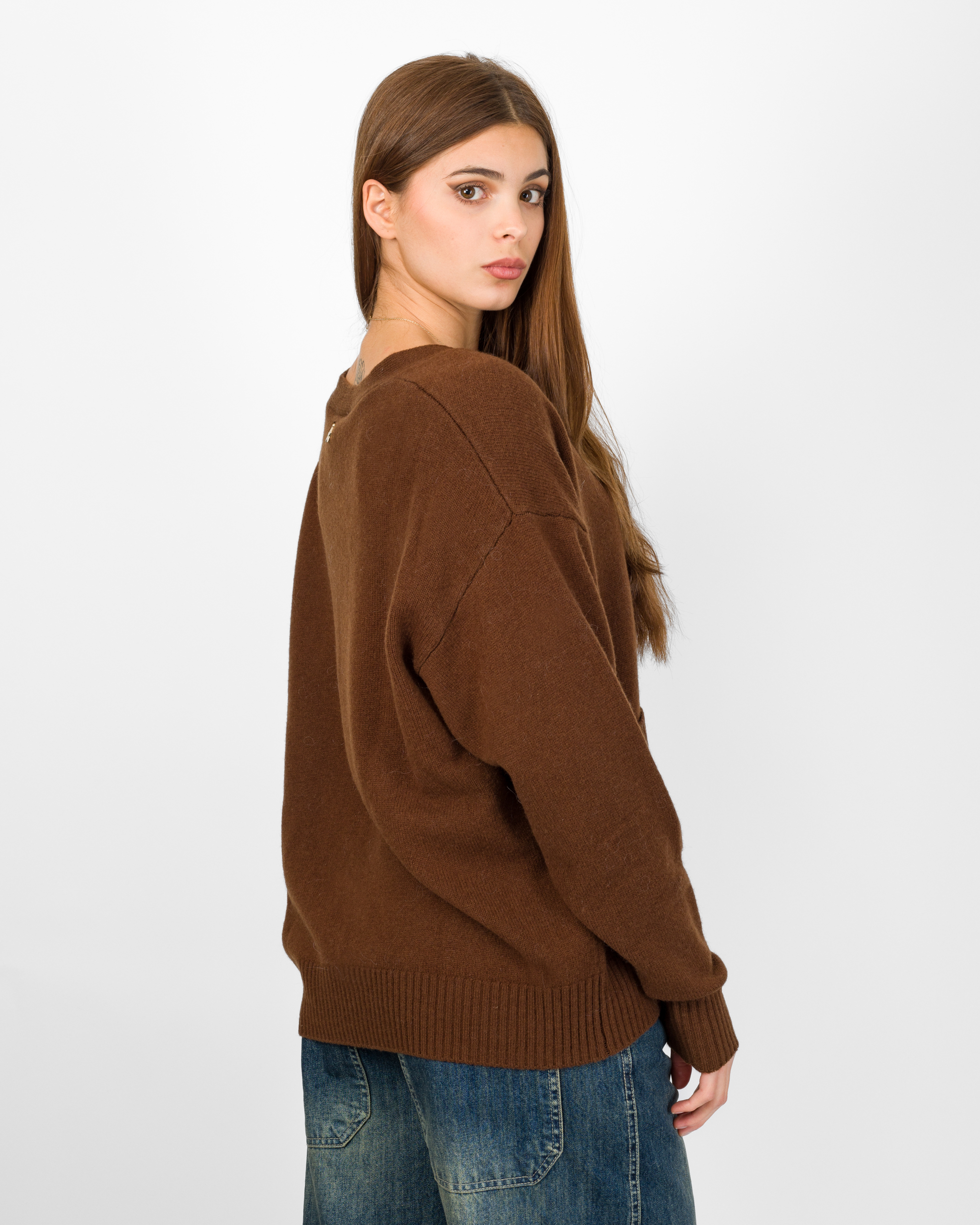 Il cardigan in 100% lana della collezione autunno/inverno di Souvenir presenta fit ampio con spalla scesa, scollo a V e chiusura frontale con bottoni tono su tono. Le tasche applicate e le finiture a costine su orlo e polsini definiscono con cura il design, mentre la texture valorizza la sensazione di calore e comfort.