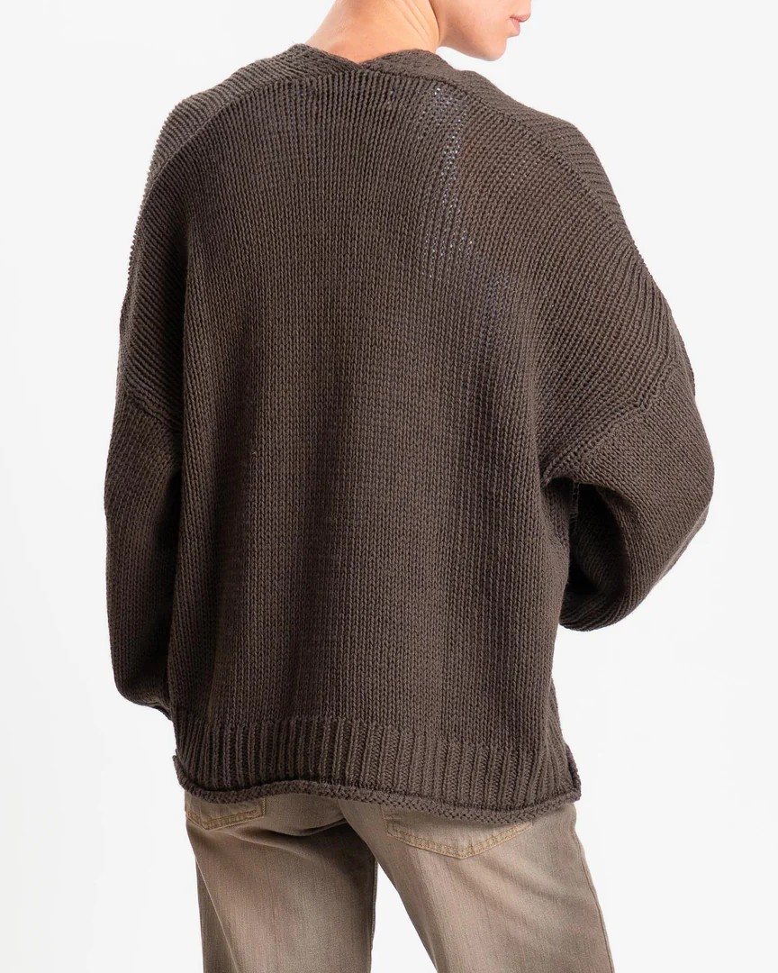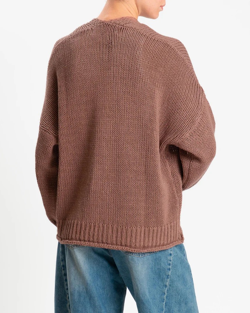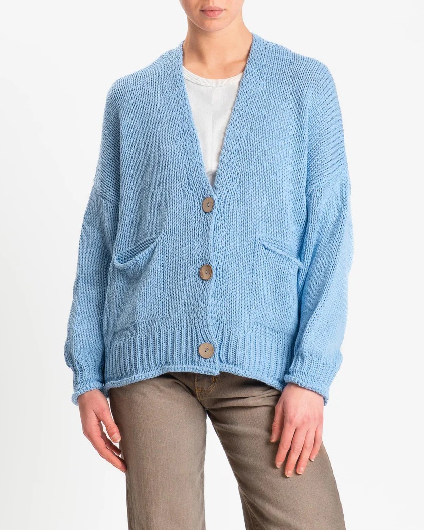 Il cardigan oversize della collezione primavera/estate di Haveone è caratterizzato dallo scollo a V, bottoni effetto legno, tasche applicate e orli a coste con effetto a taglio vivo.