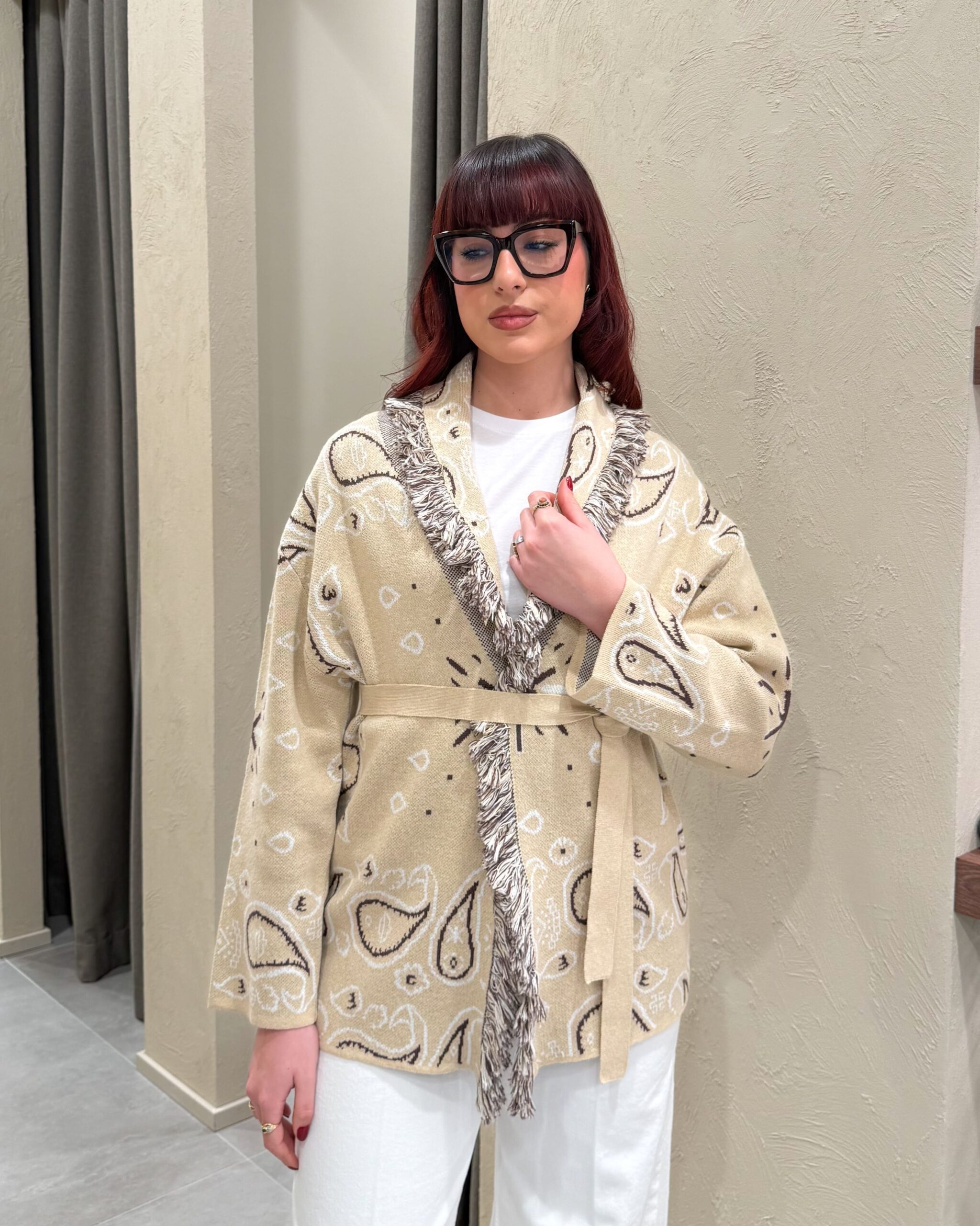CARDIGAN IN FANTASIA BANDANA CON FUSCIACCA – KONTATTO