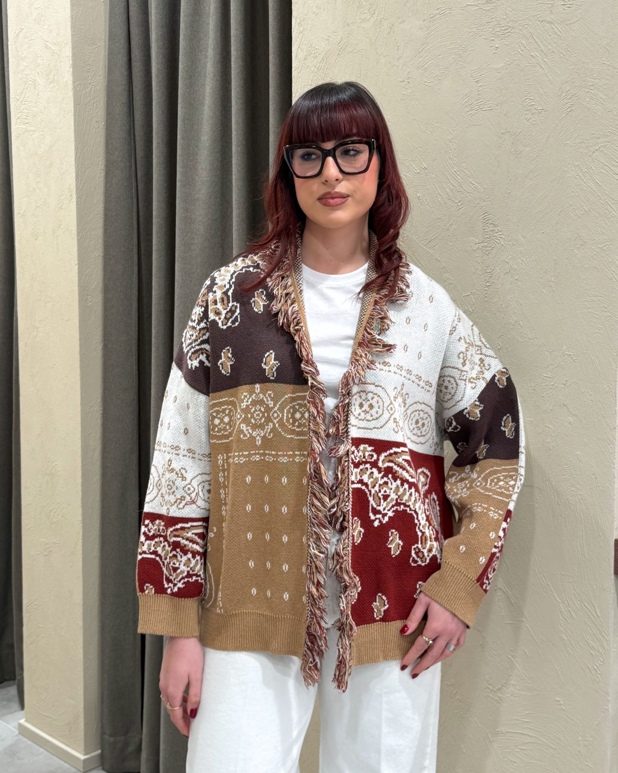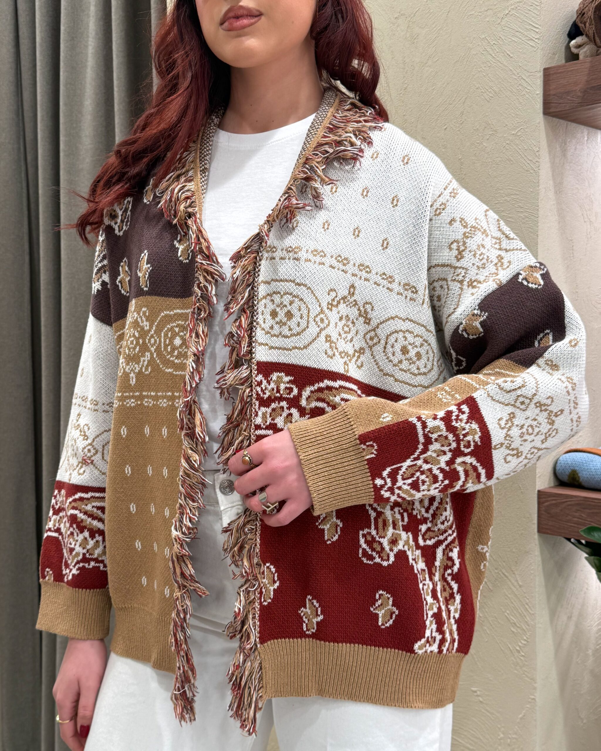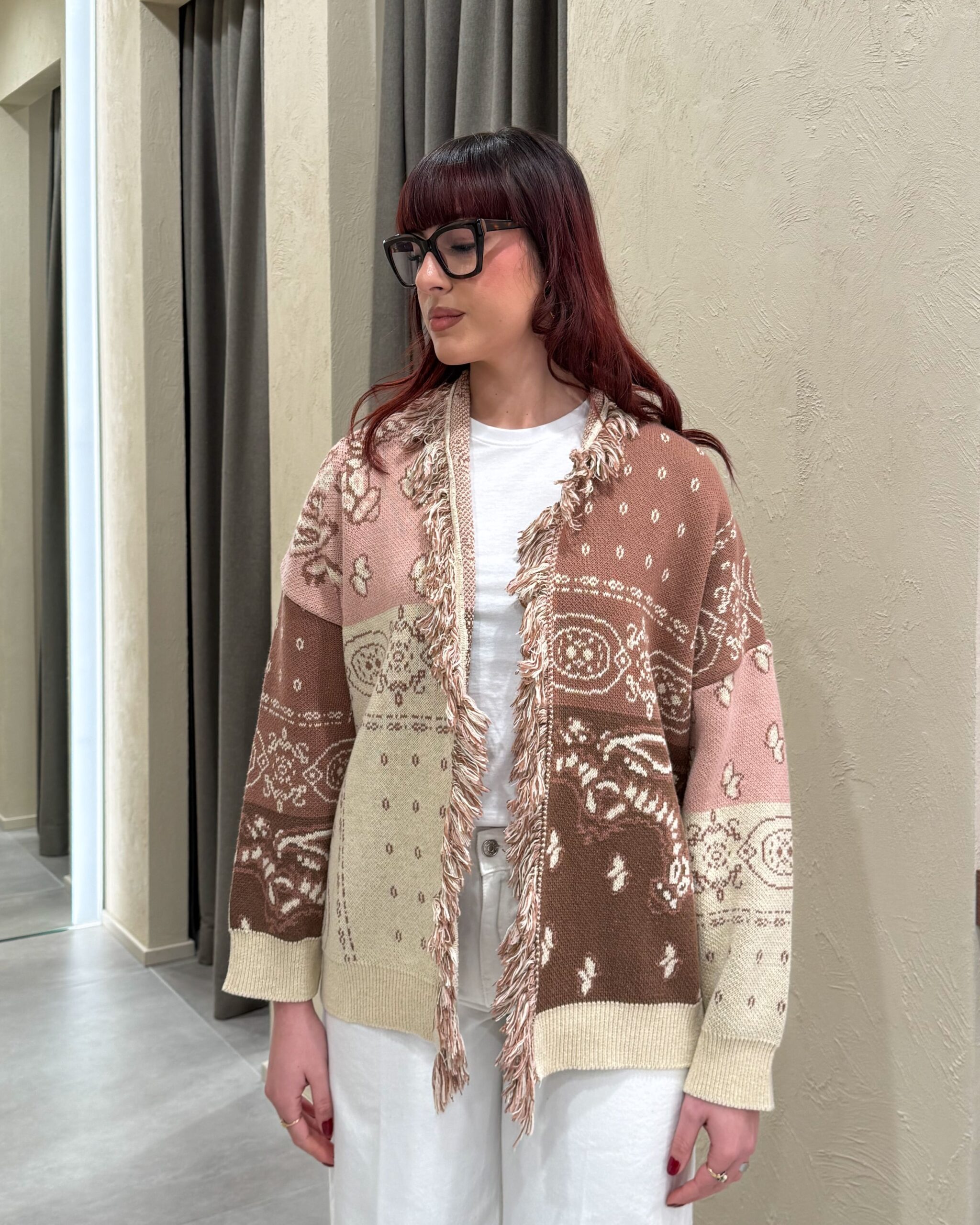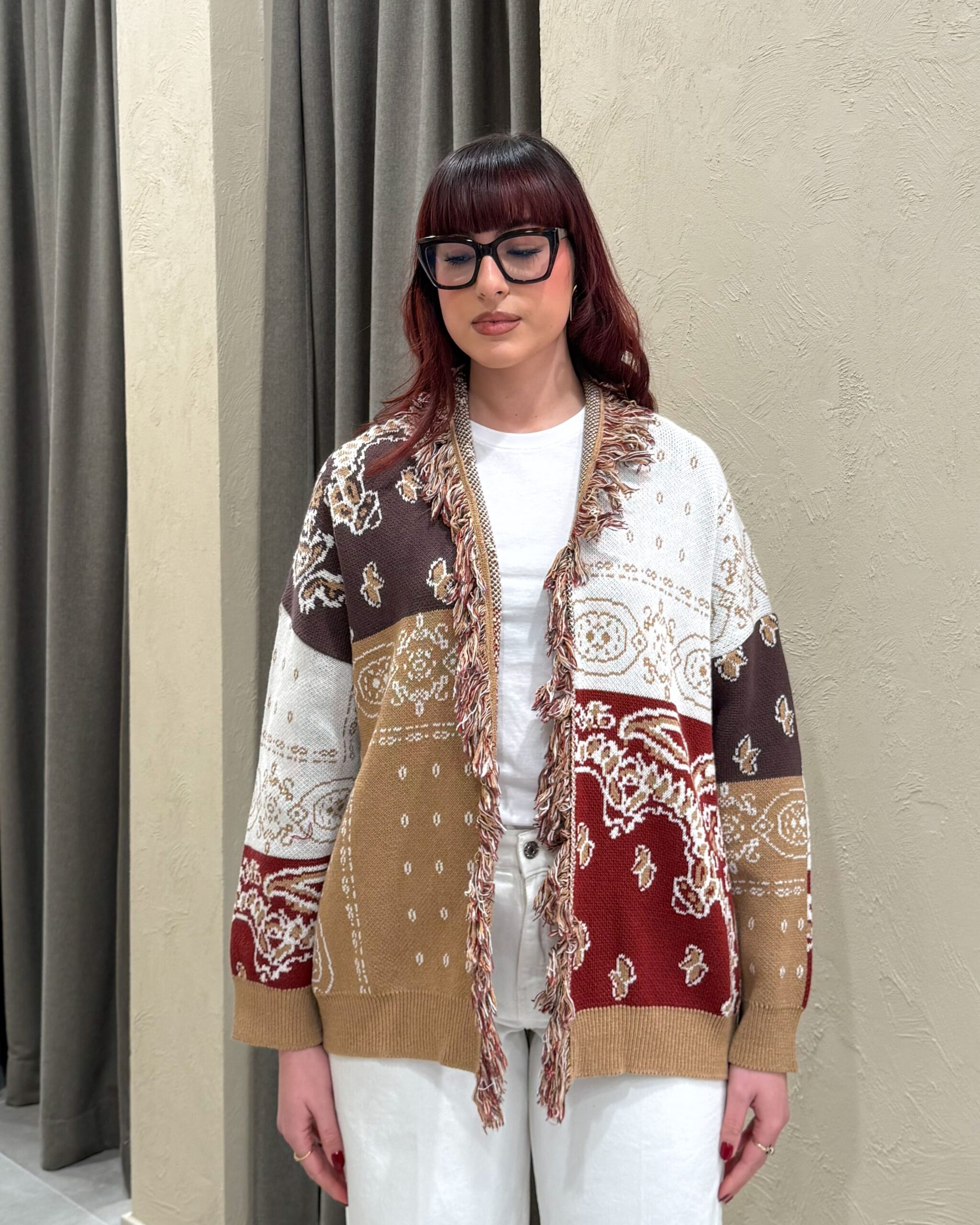 CARDIGAN JACQUARD CON FRANGE – KONTATTO