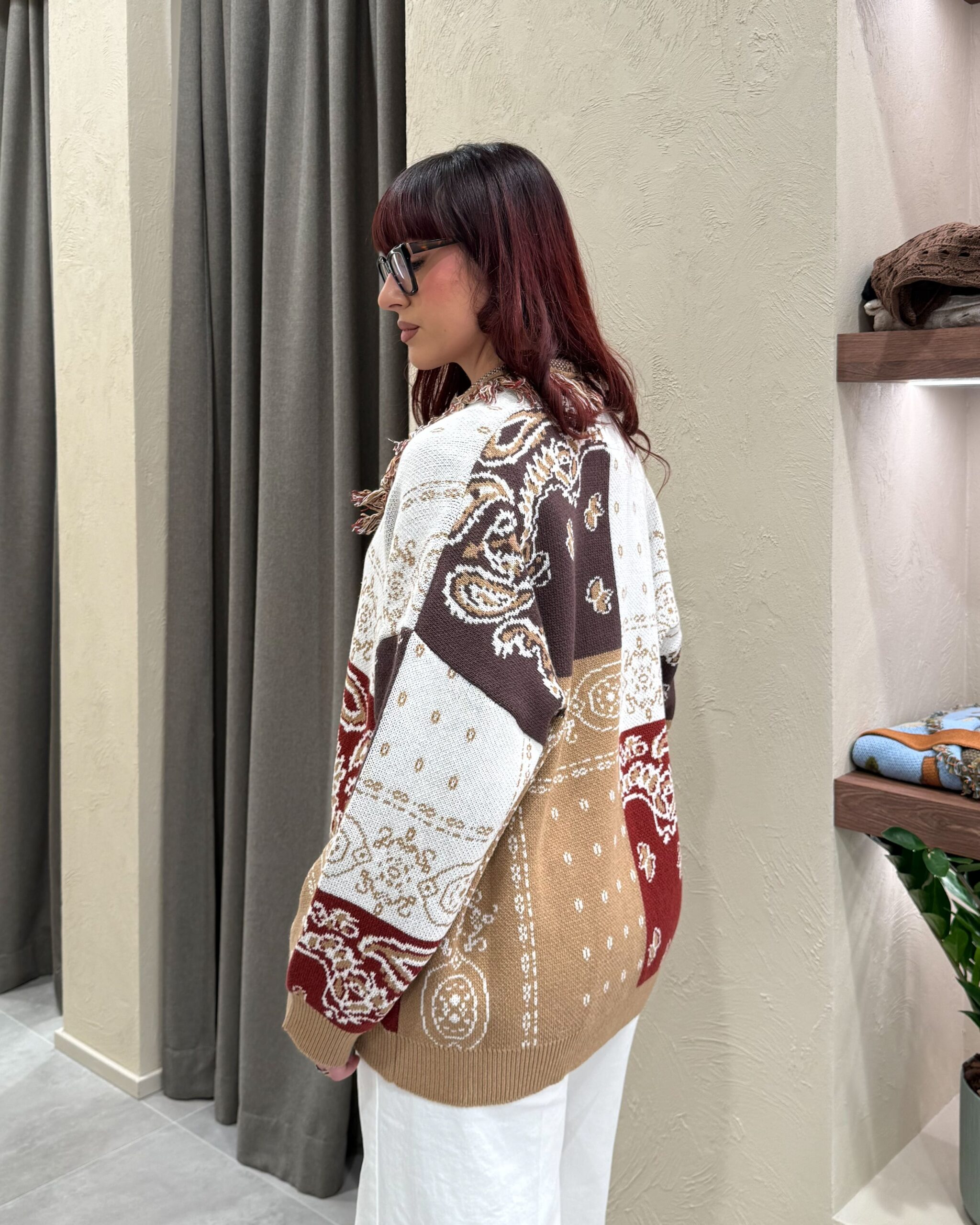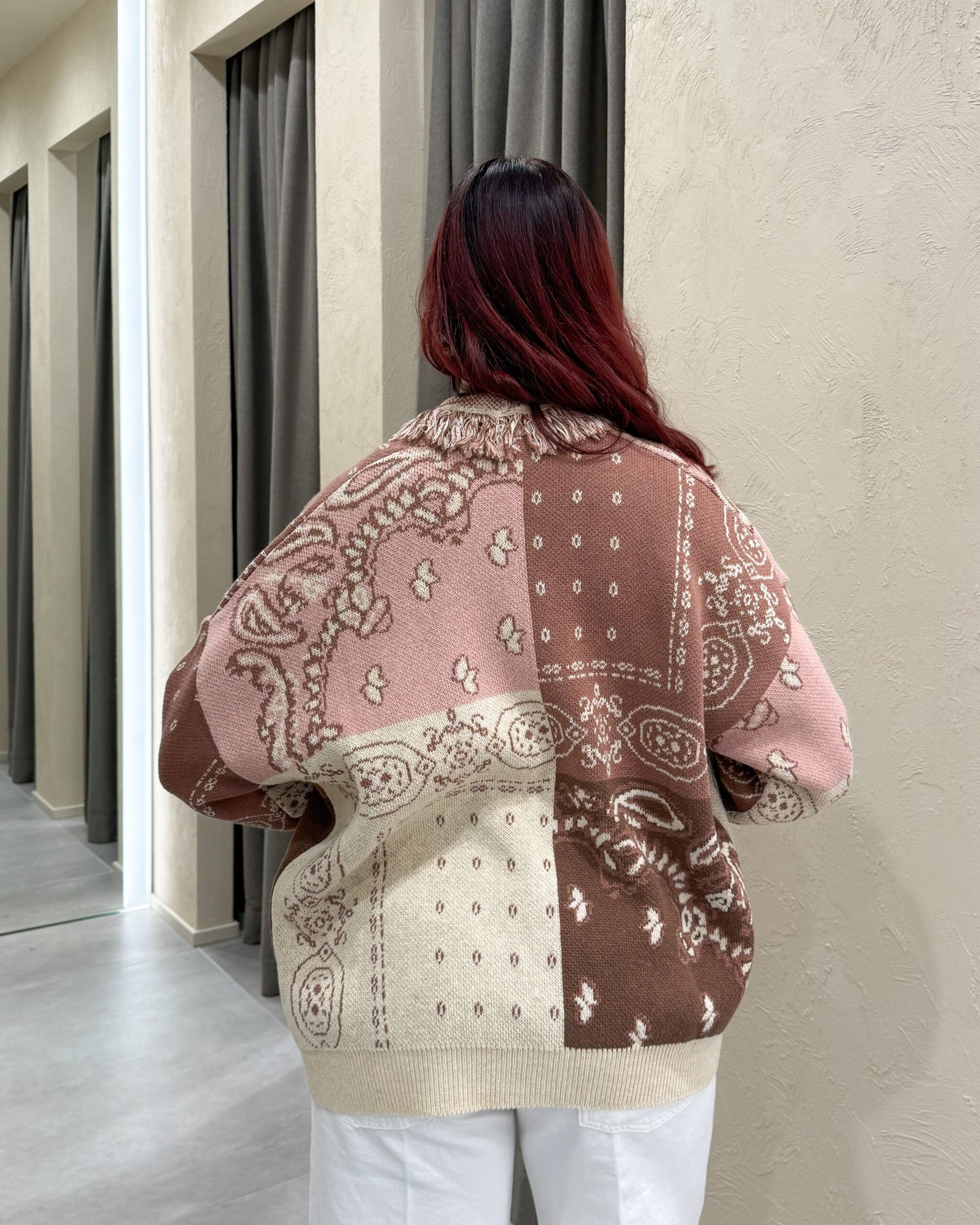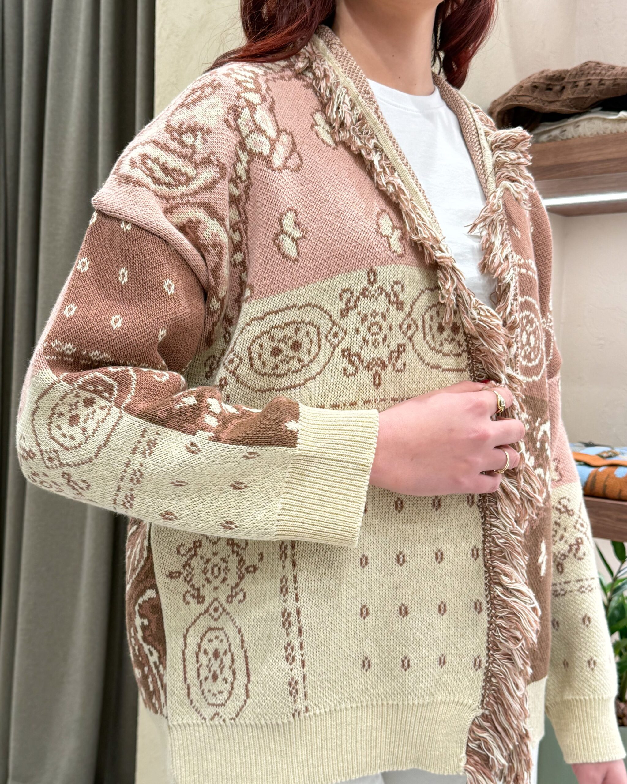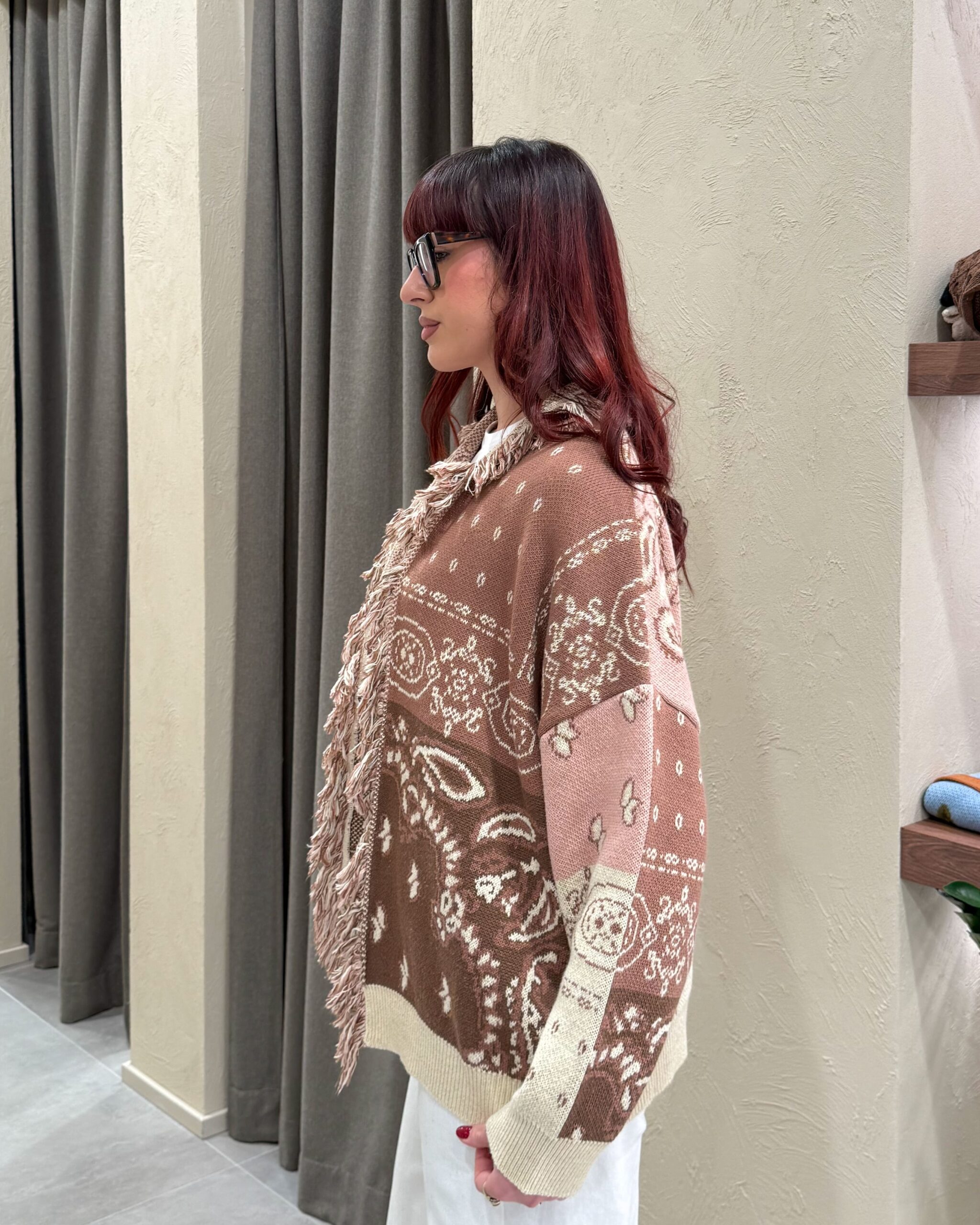CARDIGAN JACQUARD CON FRANGE – KONTATTO