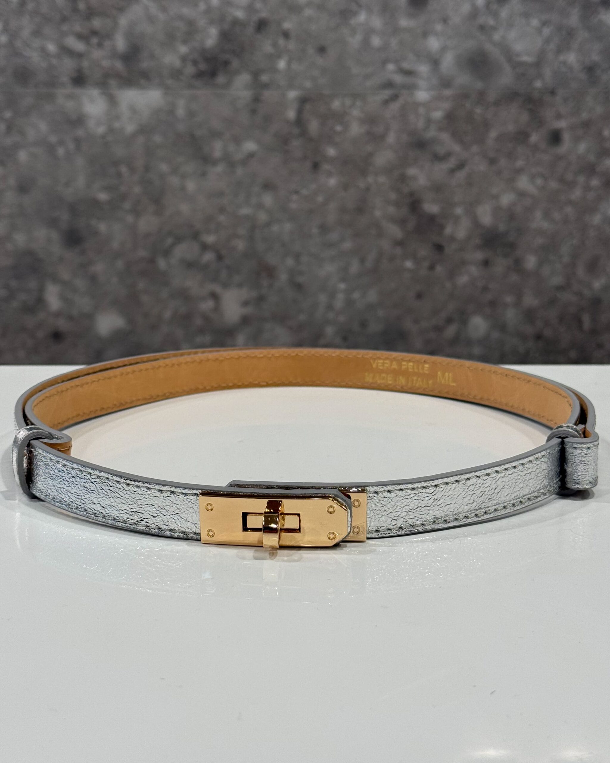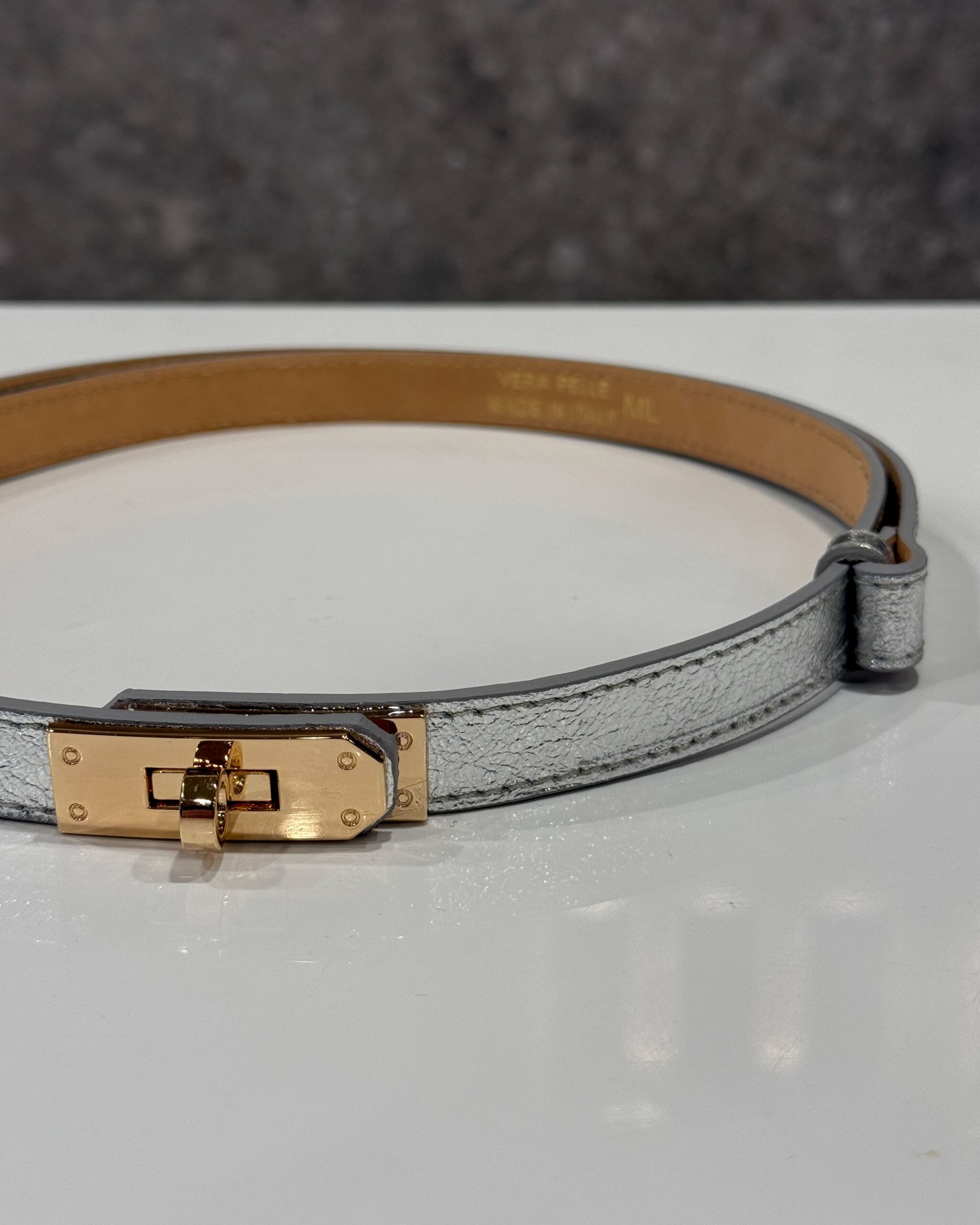 Il design minimal e sofisticato si abbina perfettamente ad abiti, gonne e pantaloni, valorizzando la silhouette con un dettaglio di classe.