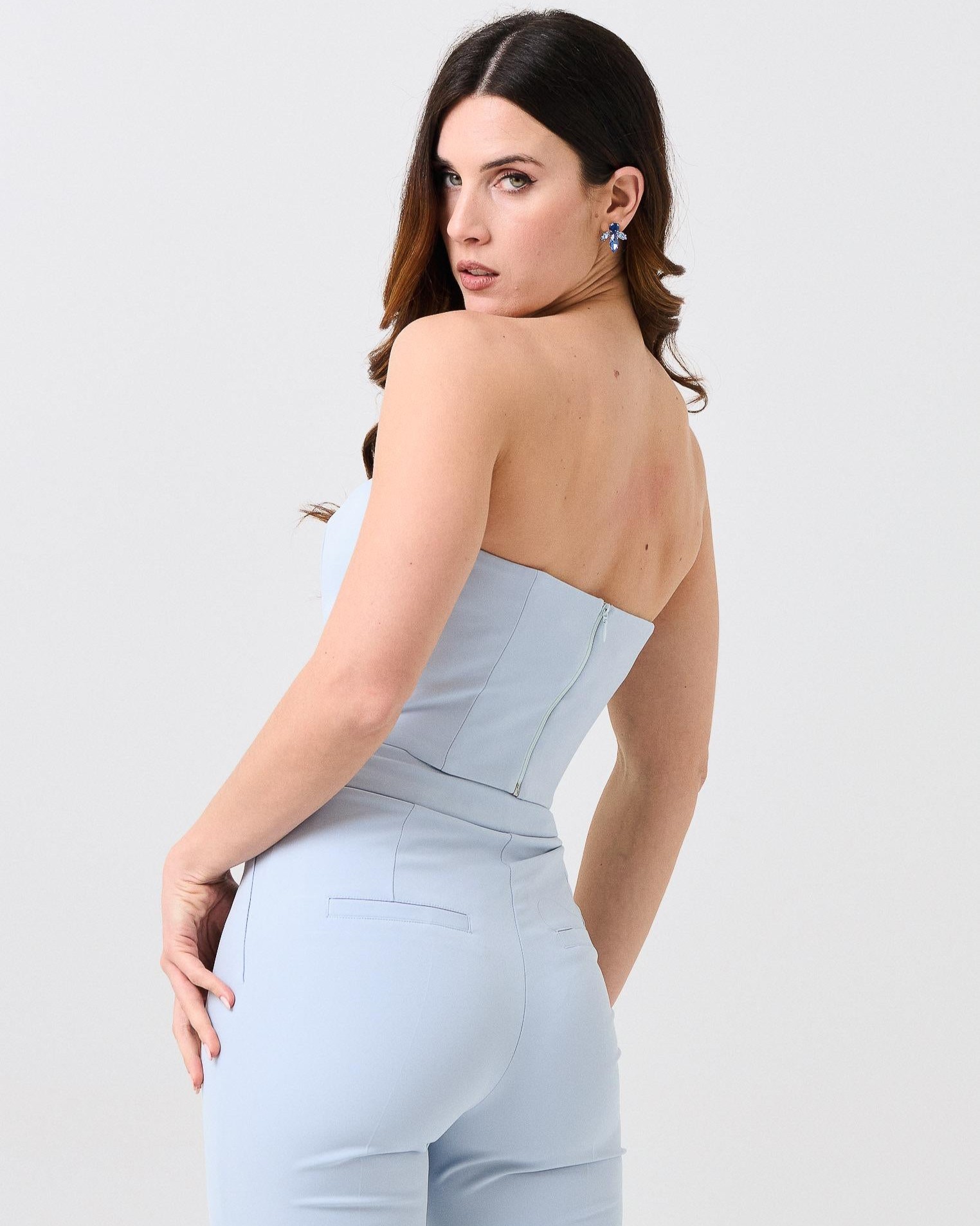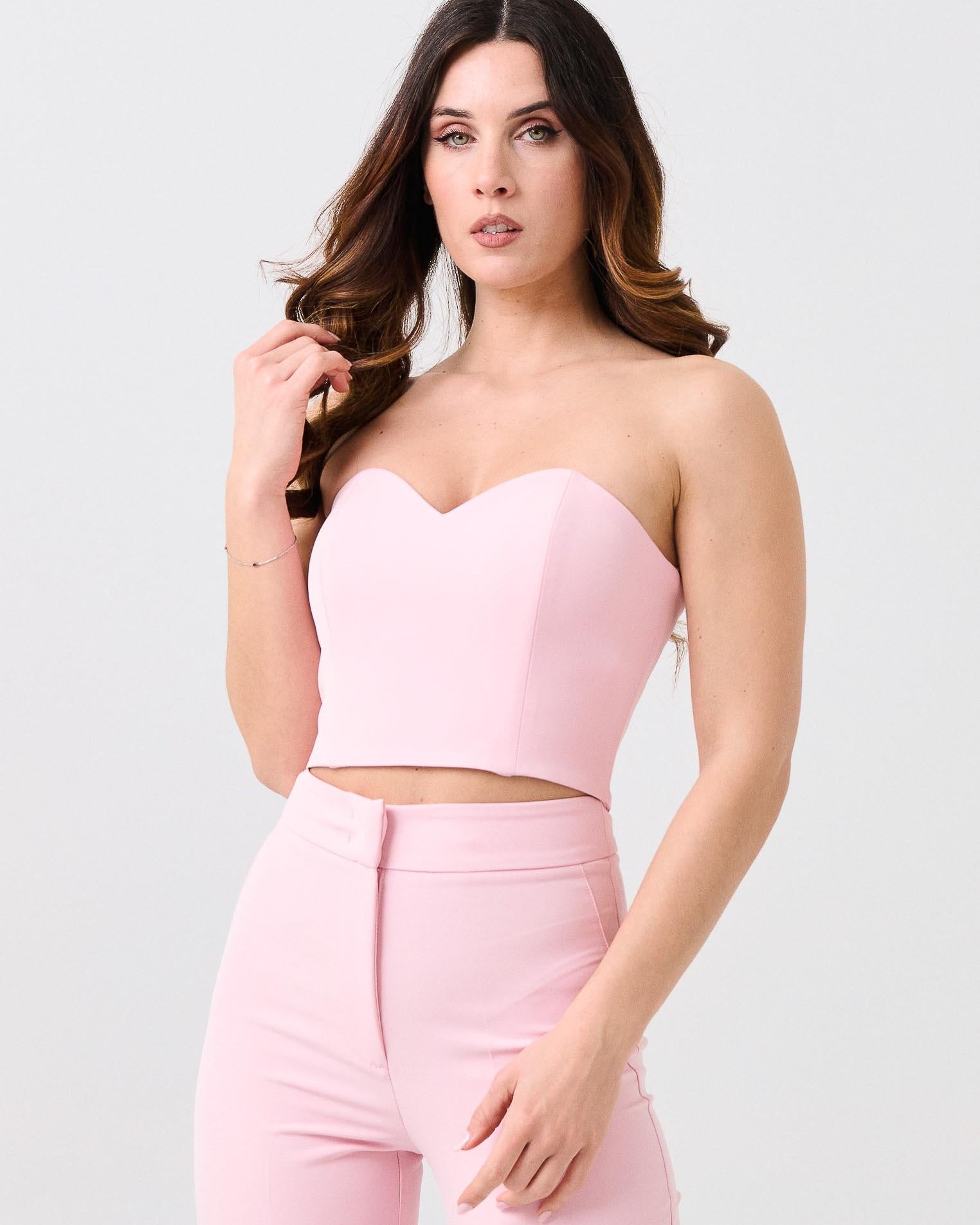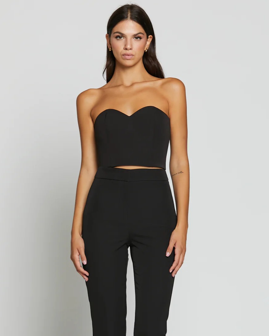Il top della collezione primavera/estate di Silence Limited è caratterizzato dal design cropped a bustier con stecche rigide e scollo a cuore. Chiusura posteriore con zip.