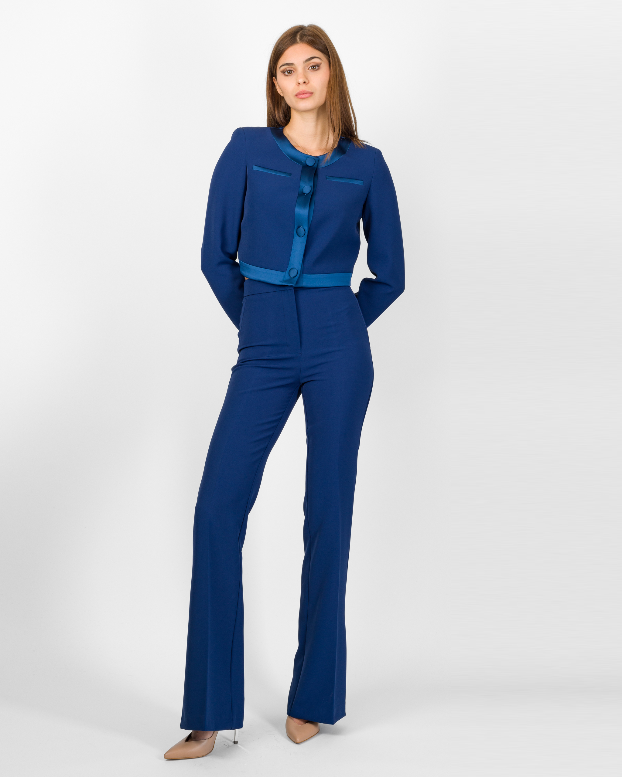 Un capo sofisticato che unisce allure sartoriale e contemporaneità, perfetto con il suo pantalone per cerimonie o serate di una certa importanza.