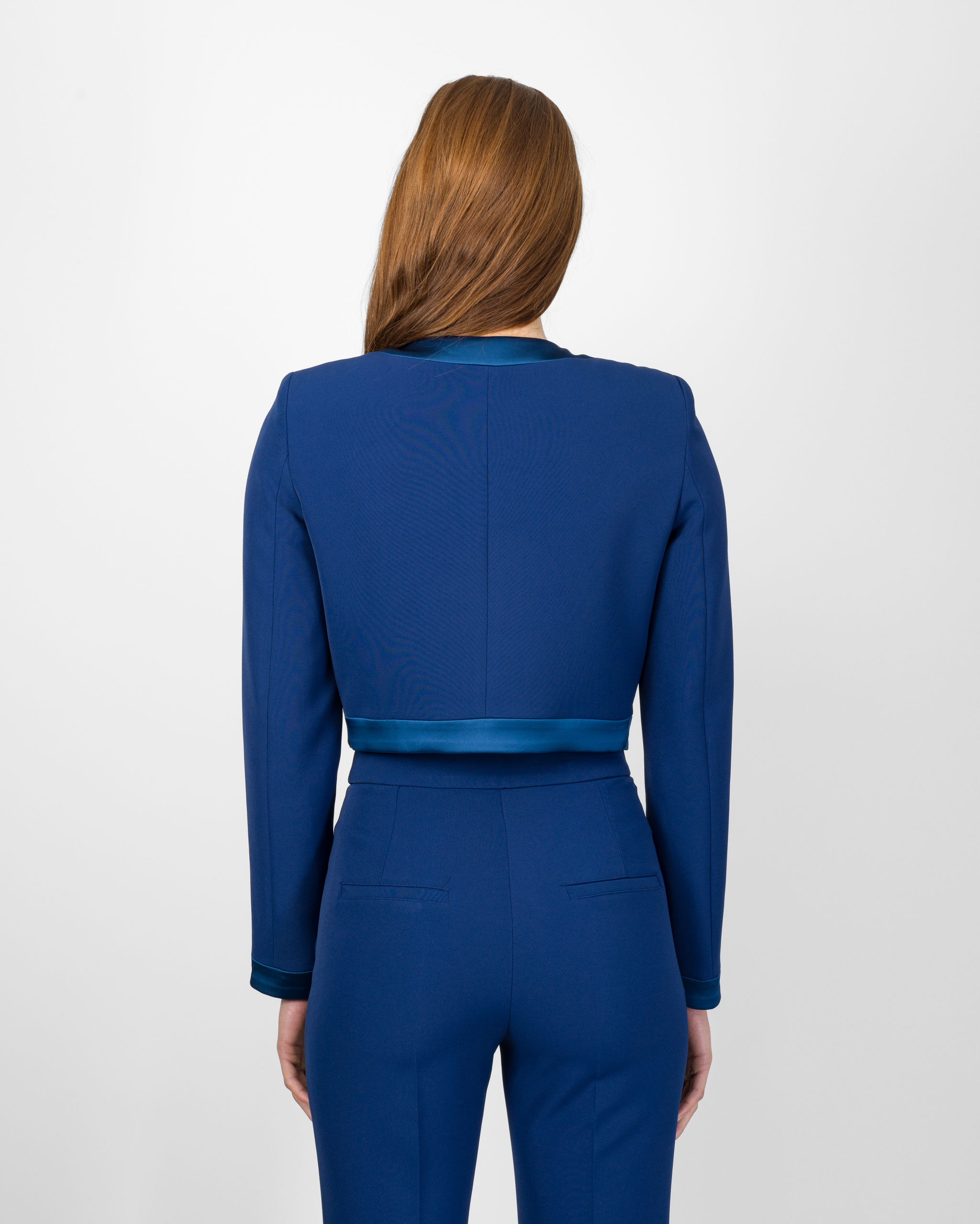La giacca della collezione autunno/inverno di Silence Limited è caratterizzato dal design a bolero e rappresenta un concentrato di eleganza moderna. Realizzata con dettagli in raso ad illuminare, presenta taglio cropped e fit femminile e strutturato.