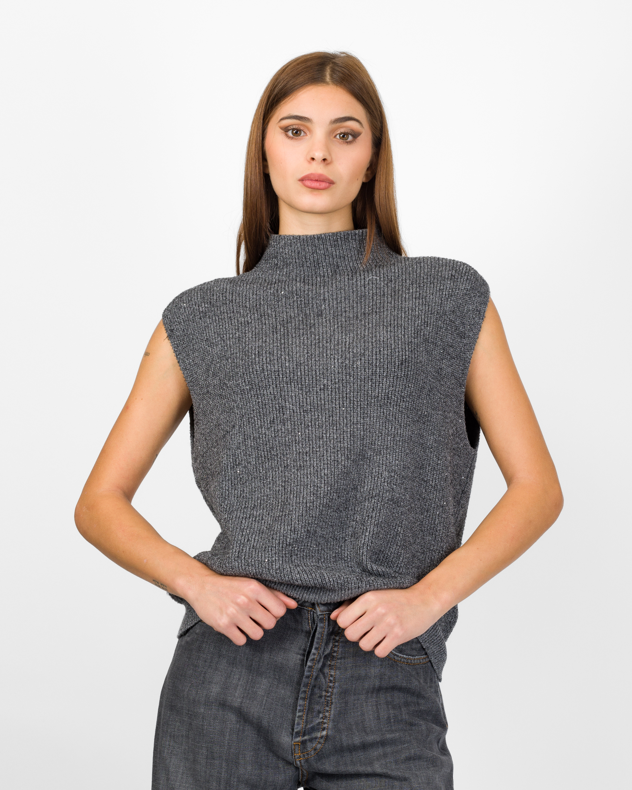 GILET IN MAGLIA CON MICRO PAILLETTES – HAVEONE