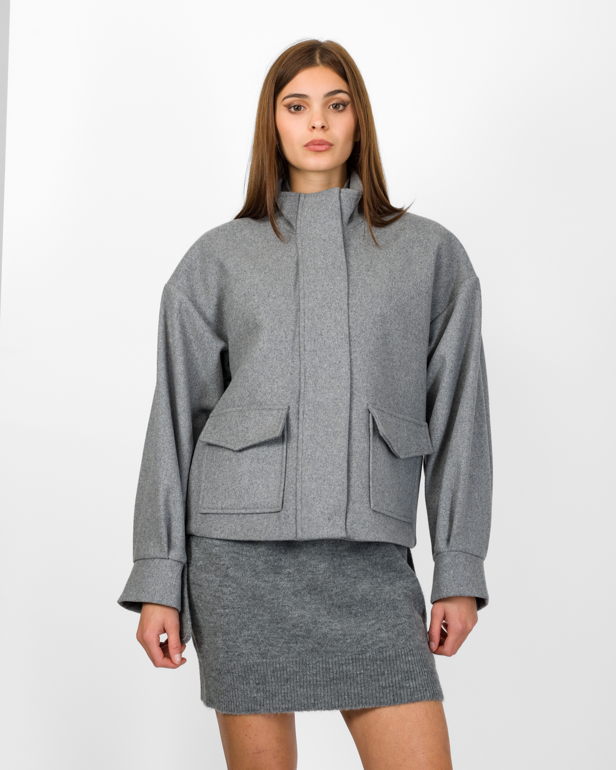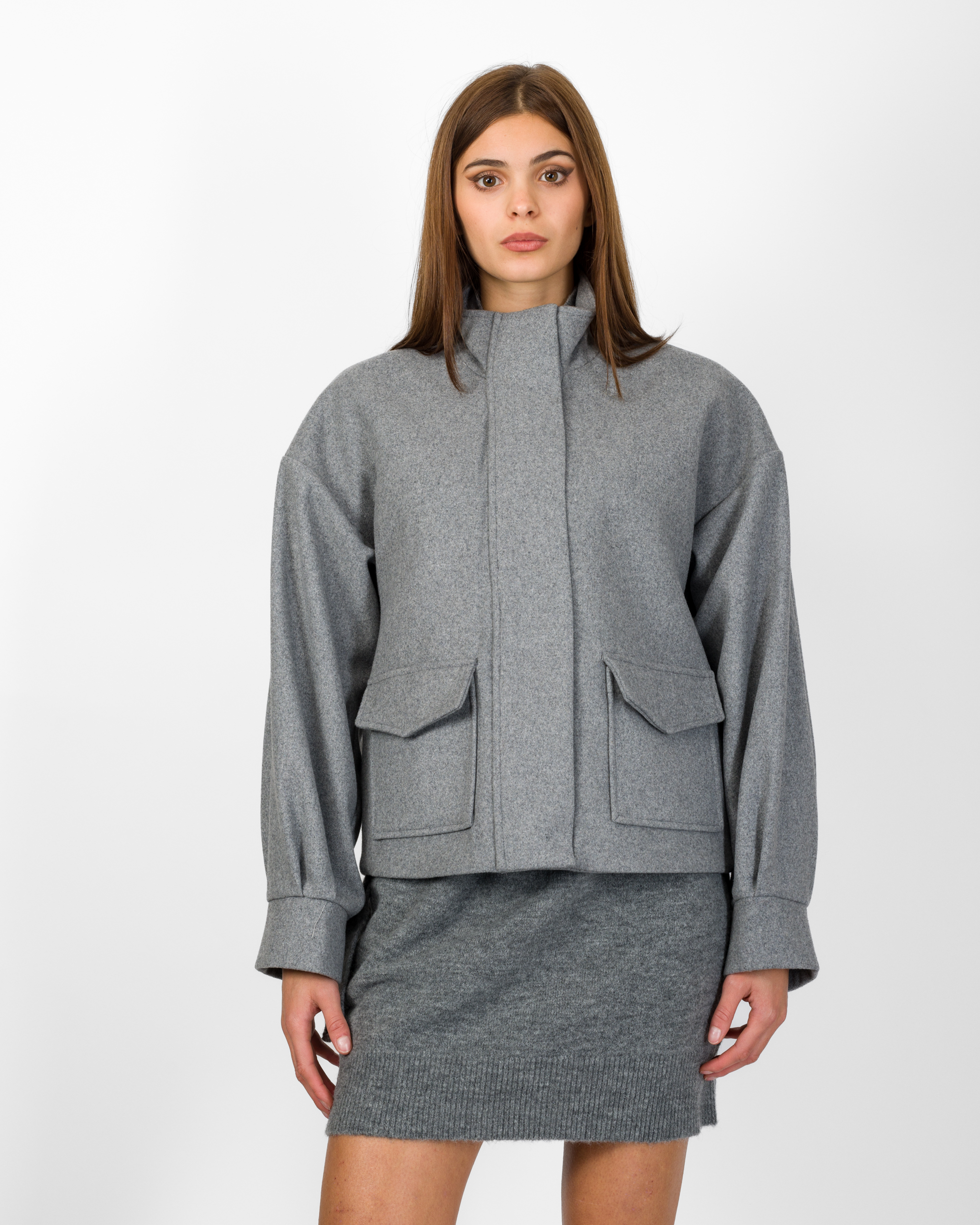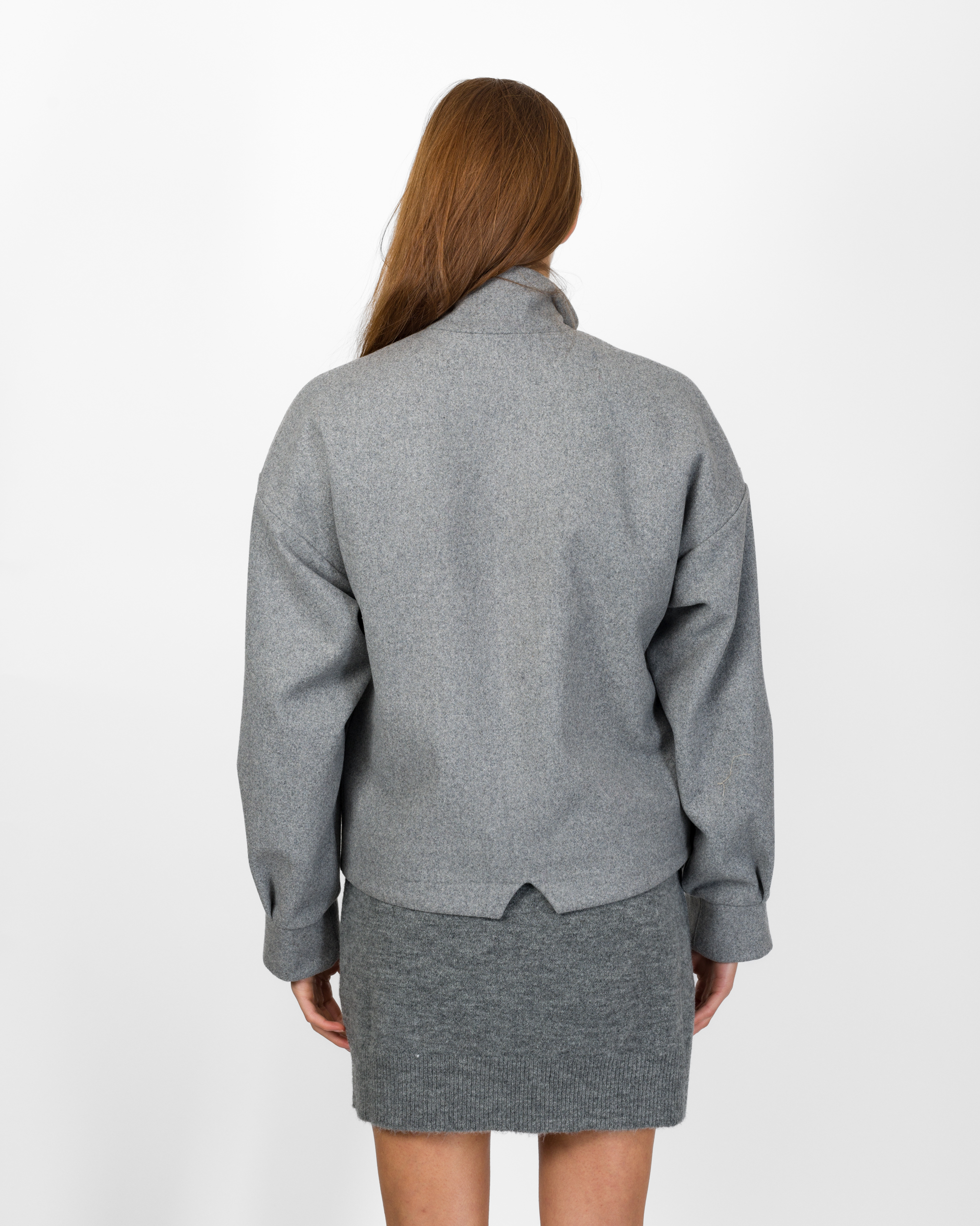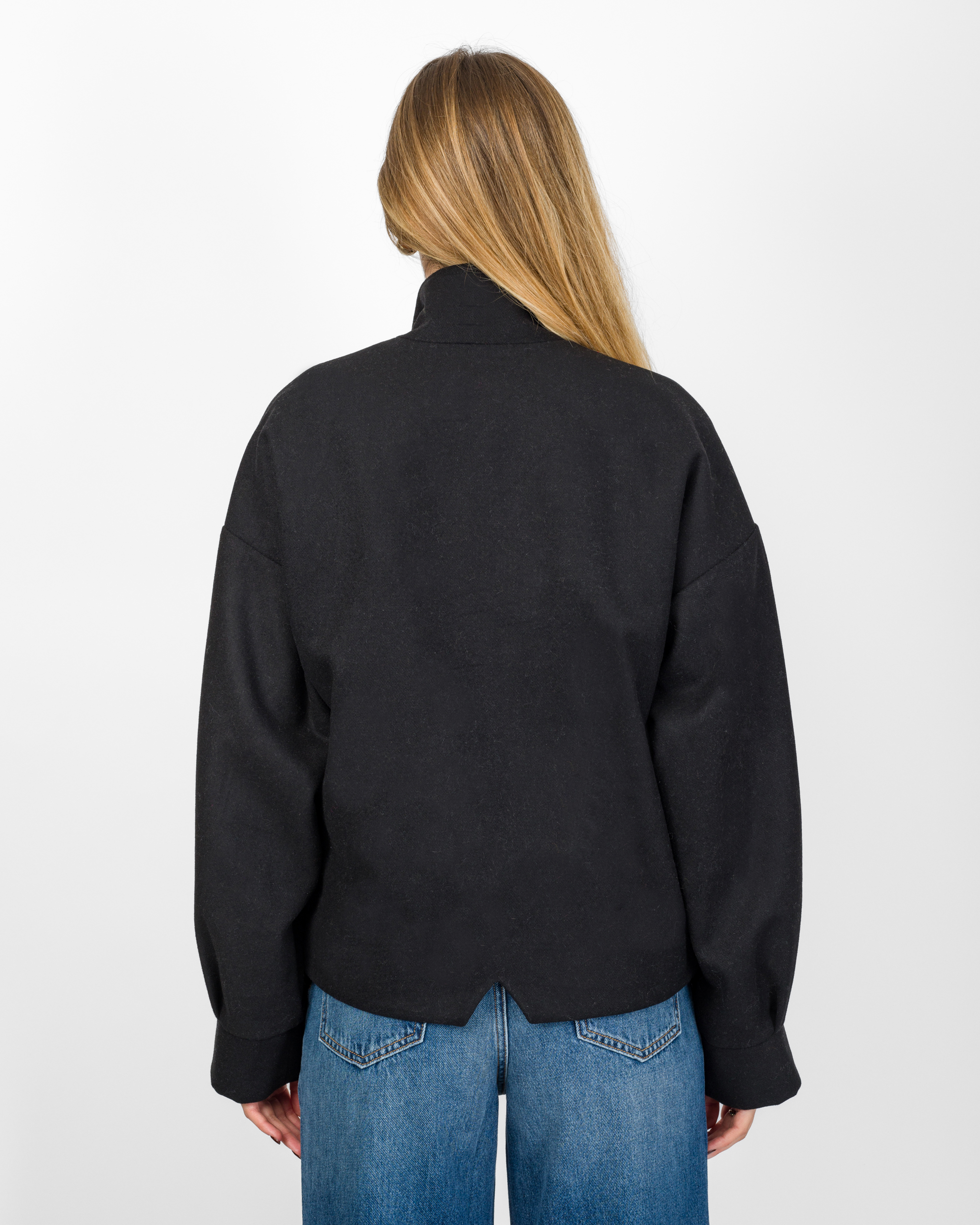 Il bomber in 50% lana della collezione autunno/inverno di Silence Limited punta su un’estetica minimal ma sofisticata. Il design moderno con collo alto strutturato, maniche lunghe ampie con polsino definito, le tasche applicate con patta e l’abbottonatura nascosta conferiscono al capo un tocco sartoriale.