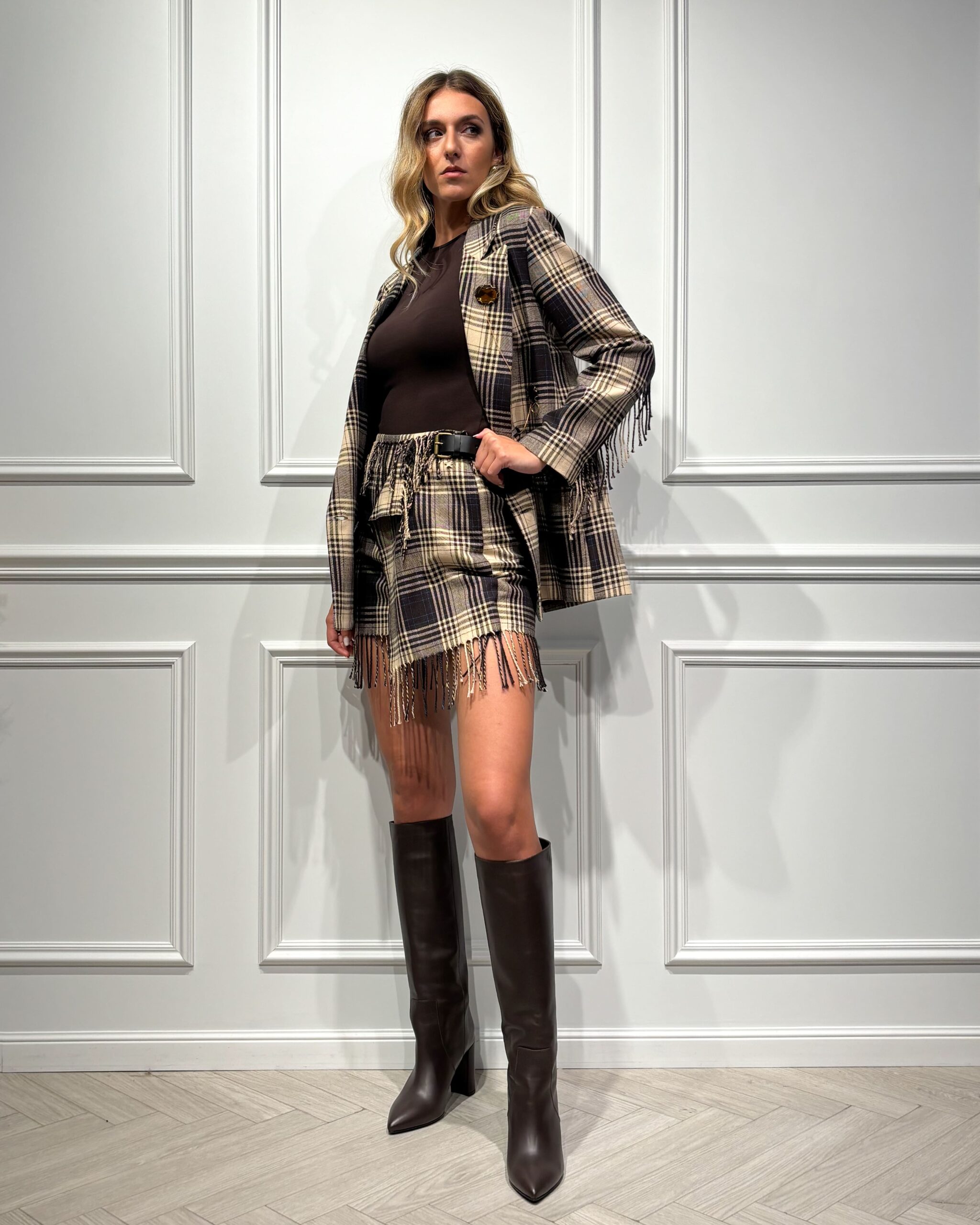 Abbinata al blazer coordinato crea un completo deciso oppure con un dolcevita per un’eleganza più essenziale.