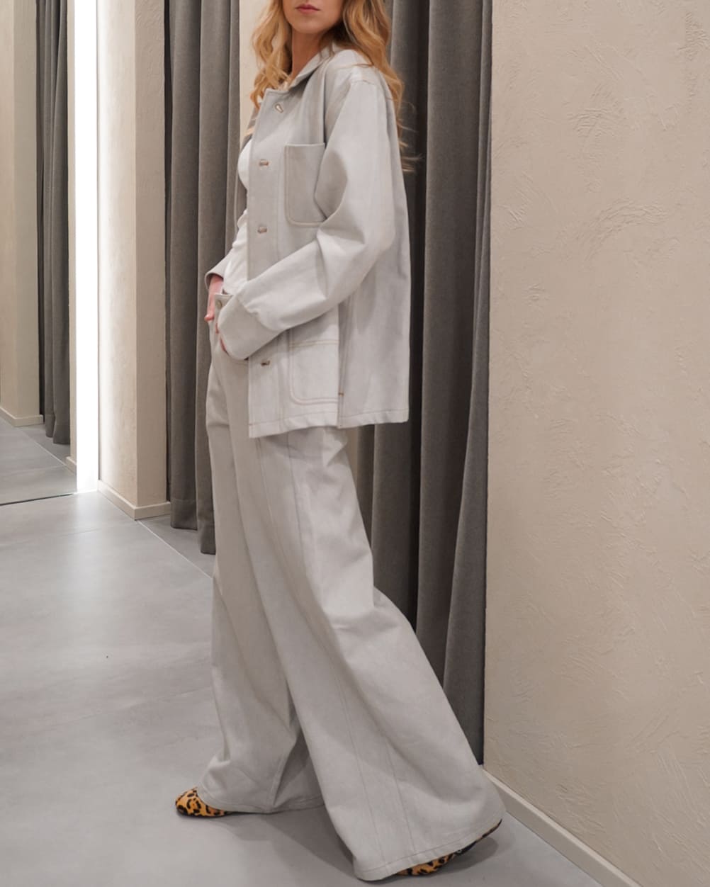 Abbinato alla sua shacket, diventa un set versatile e di tendenza, perfetto per passare dal giorno alla sera con un’unica soluzione di stile.