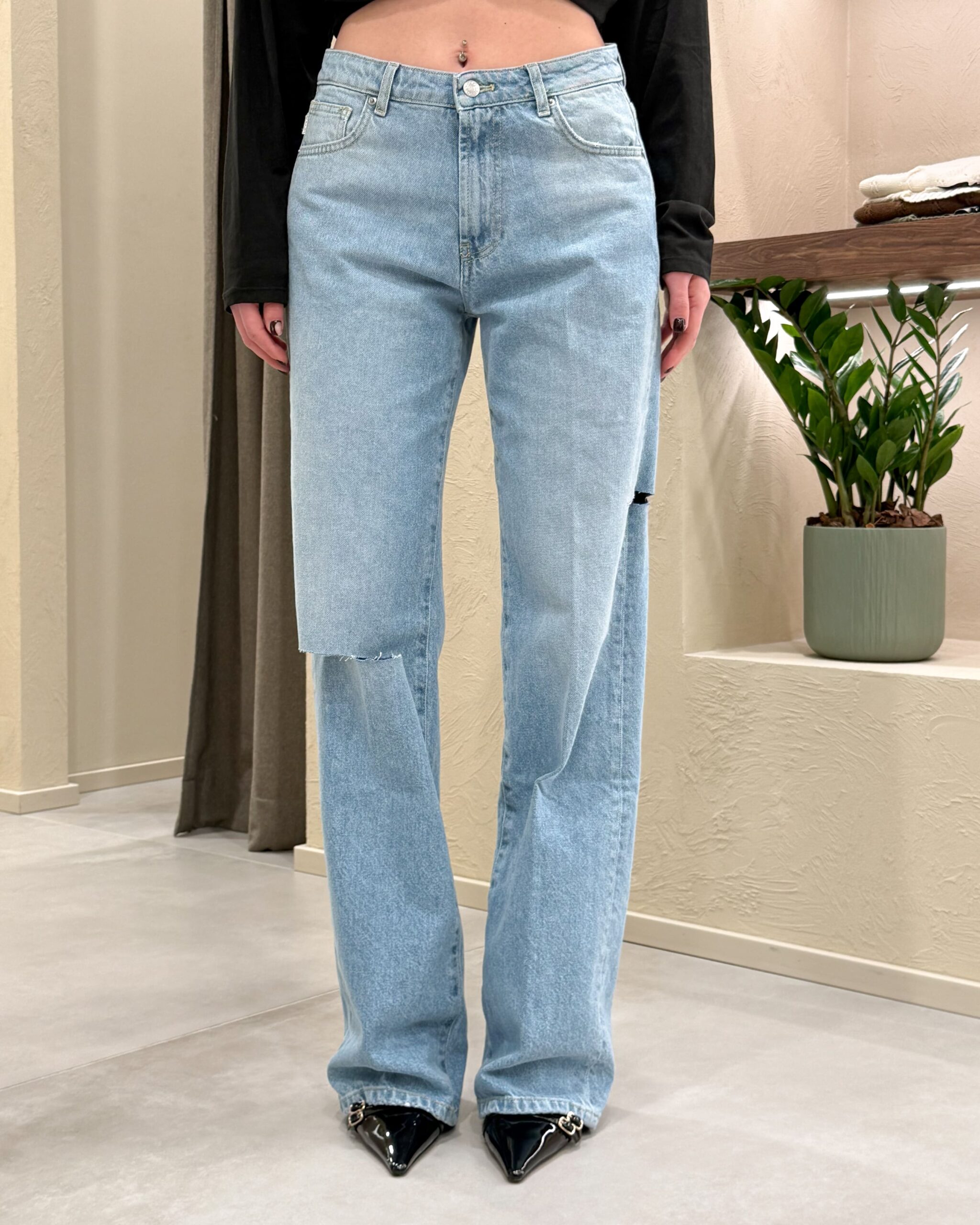 JEANS STRAIGHT-LEG MID RISE CON ROTTURE – ALEX – VICOLO