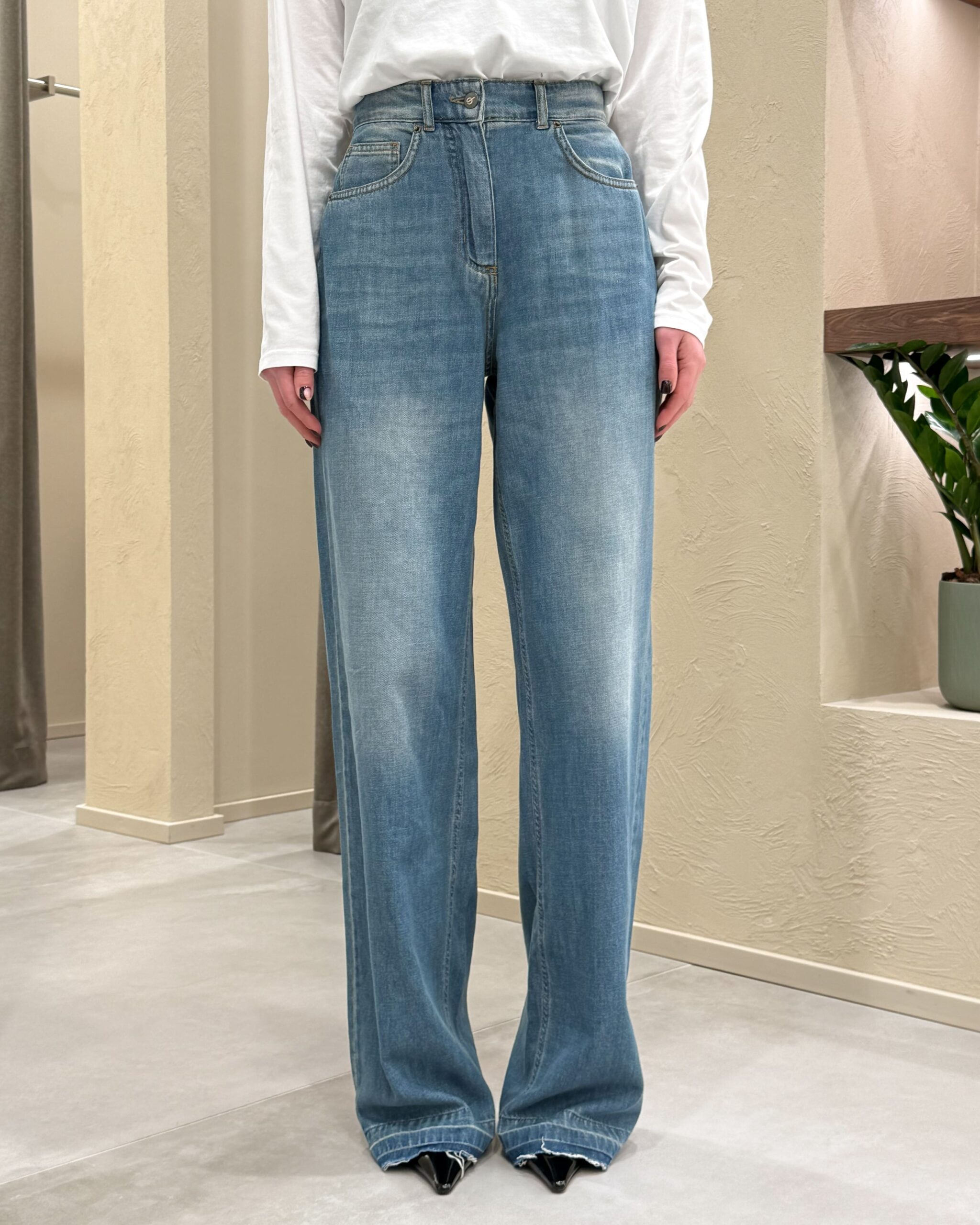 JEANS WIDE-LEG CON ORLO SFRANGIATO – PHILIA LOFT