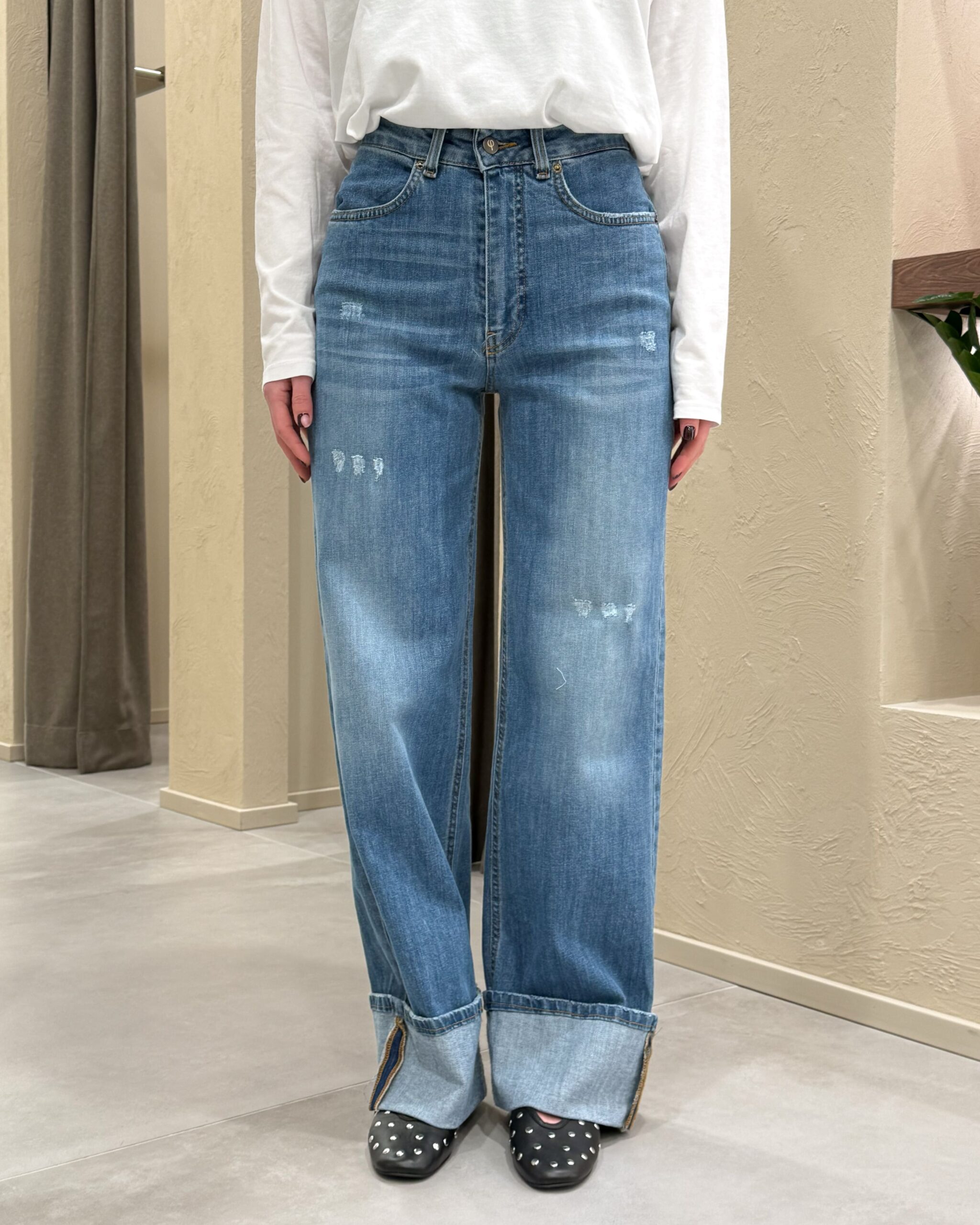 JEANS WIDE-LEG CON RISVOLTO E ROTTURE – PHILIA LOFT