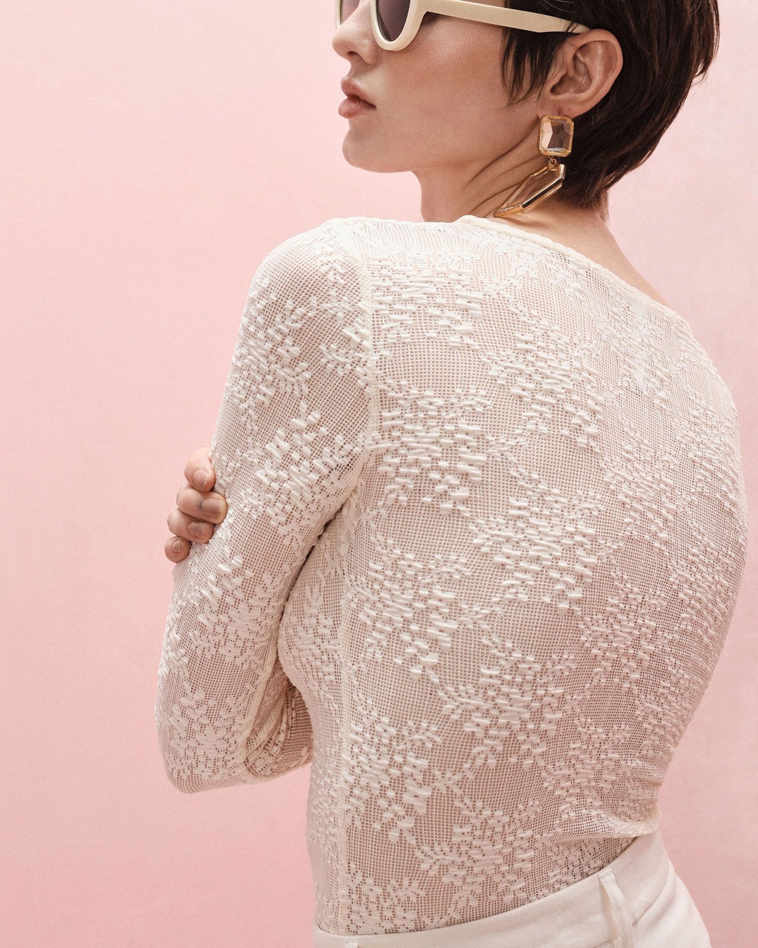 La maglia della collezione primavera/estate di Imperial è caratterizzata da una vestibilità aderente e da una lavorazione in tessuto semi-trasparente con motivo floreale all-over a rilievo. Presenta scollo tondo, maniche lunghe e lunghezza regolare al fianco.