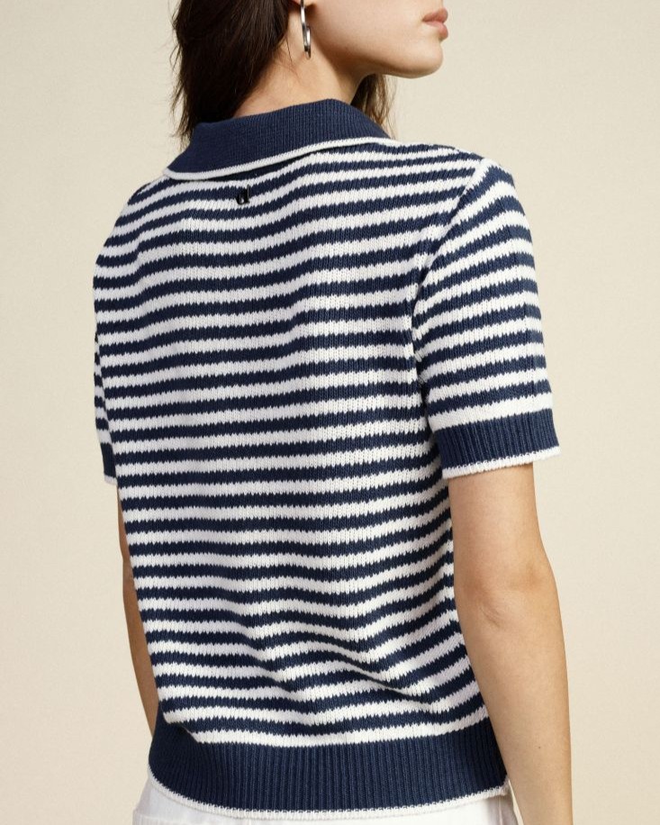 Un capo d’ispirazione marinière, perfetto per look casual-chic dal gusto estivo e raffinato.