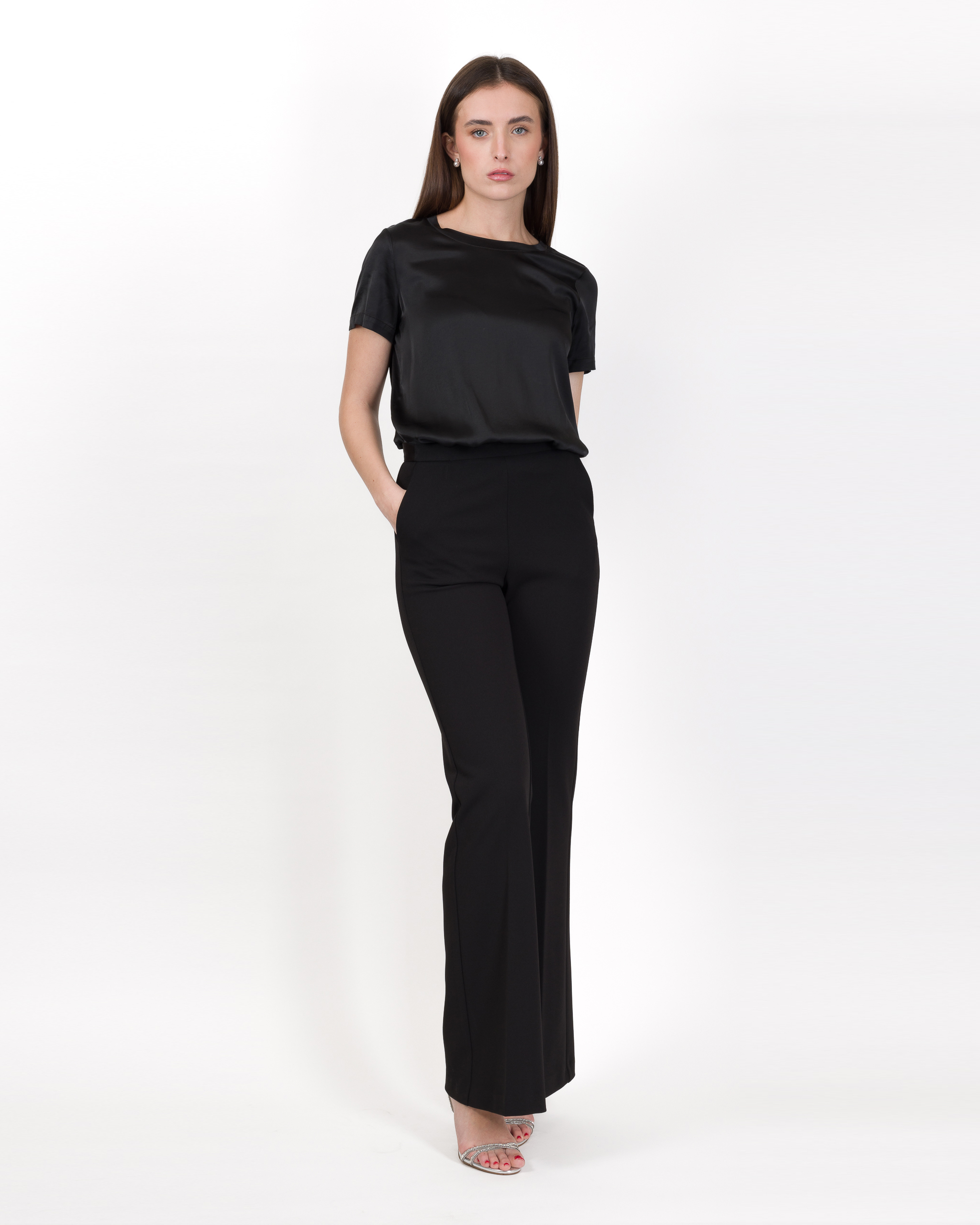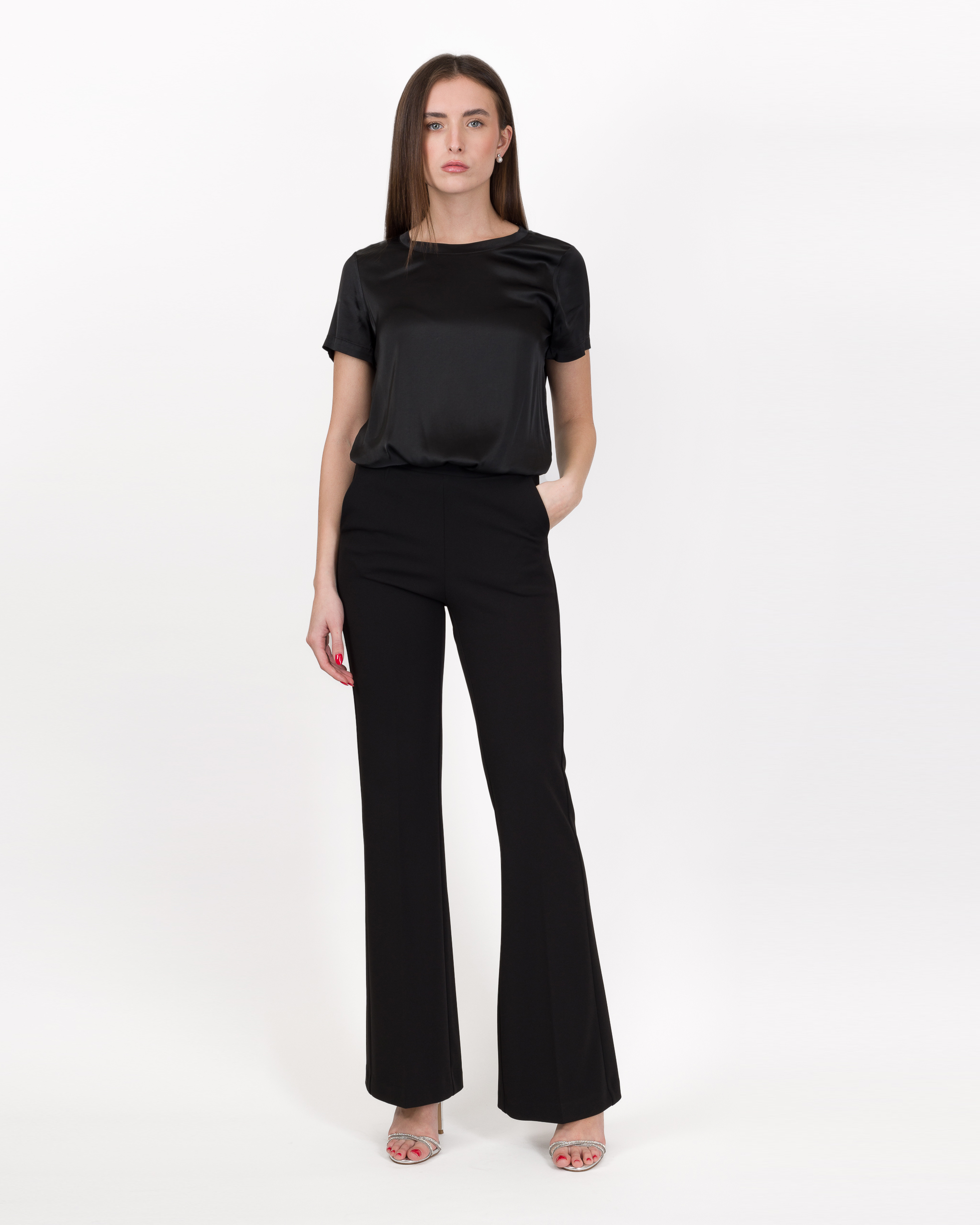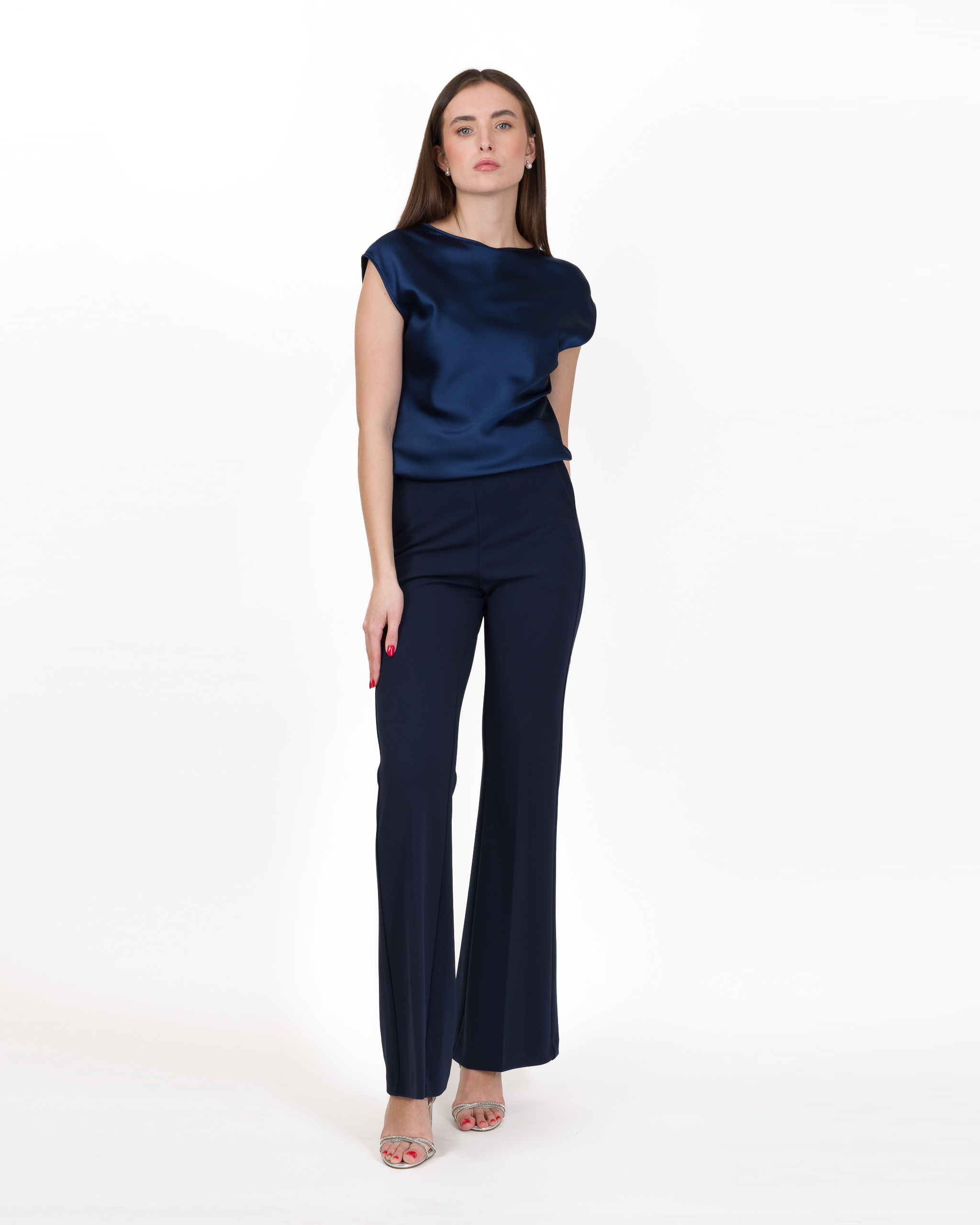 PANTALONE FLARE CON DETTAGLI IN RASO – AGATA – IMPERIAL