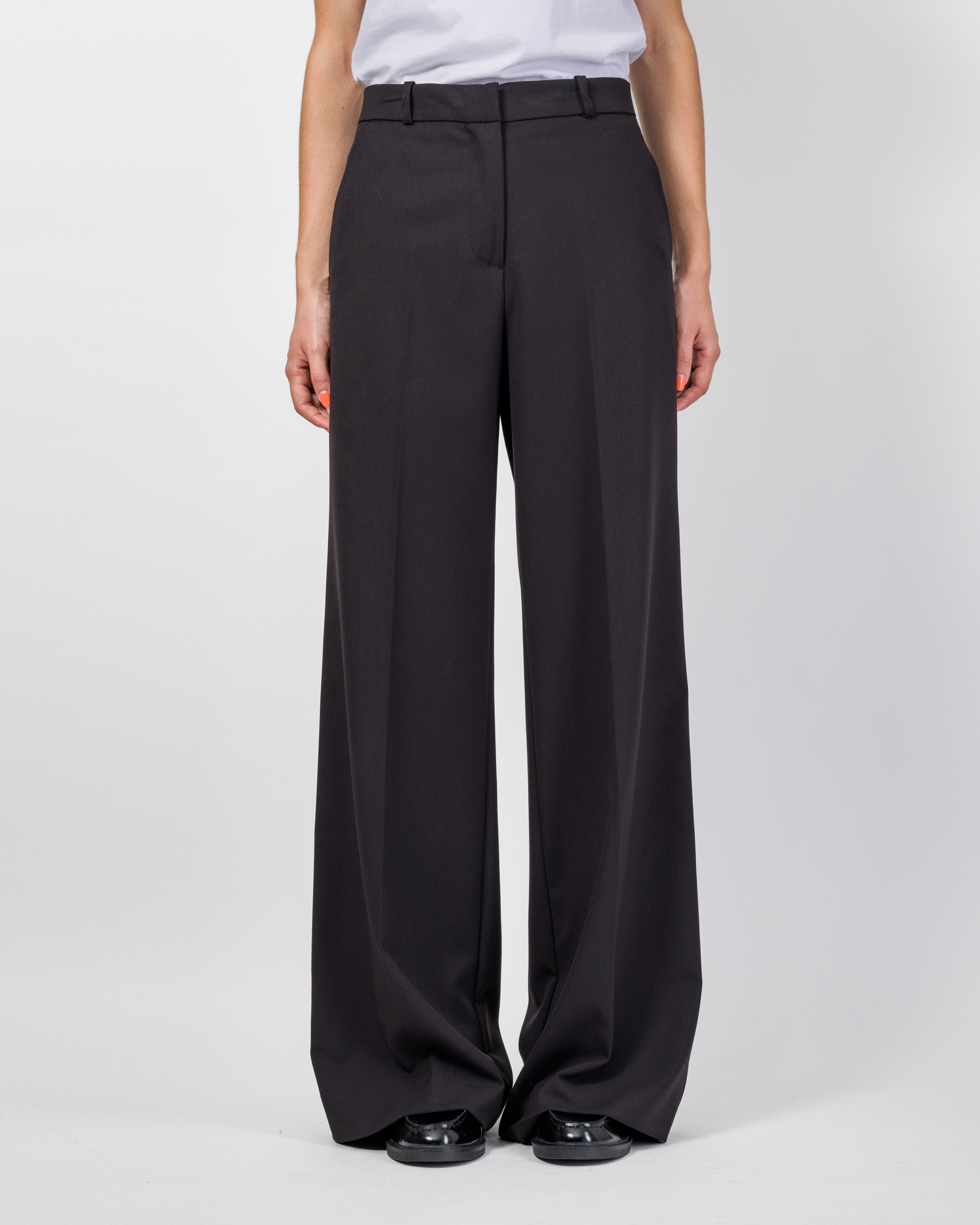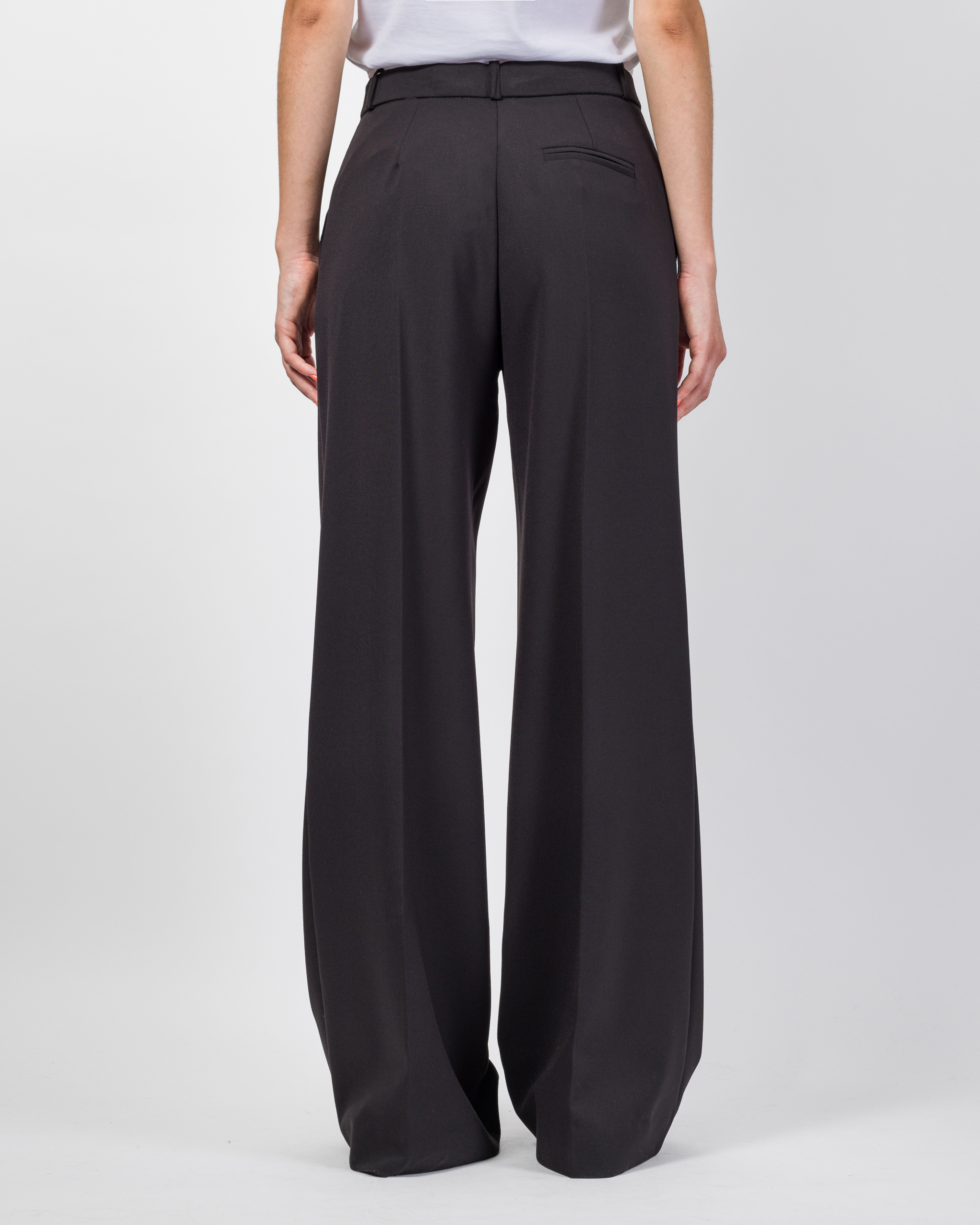 Il pantalone della collezione autunno/inverno di Haveone è caratterizzato dal design a palazzo a vita media con passanti e presenta tasche america laterali. Chiusura con gancio e zip a scomparsa.