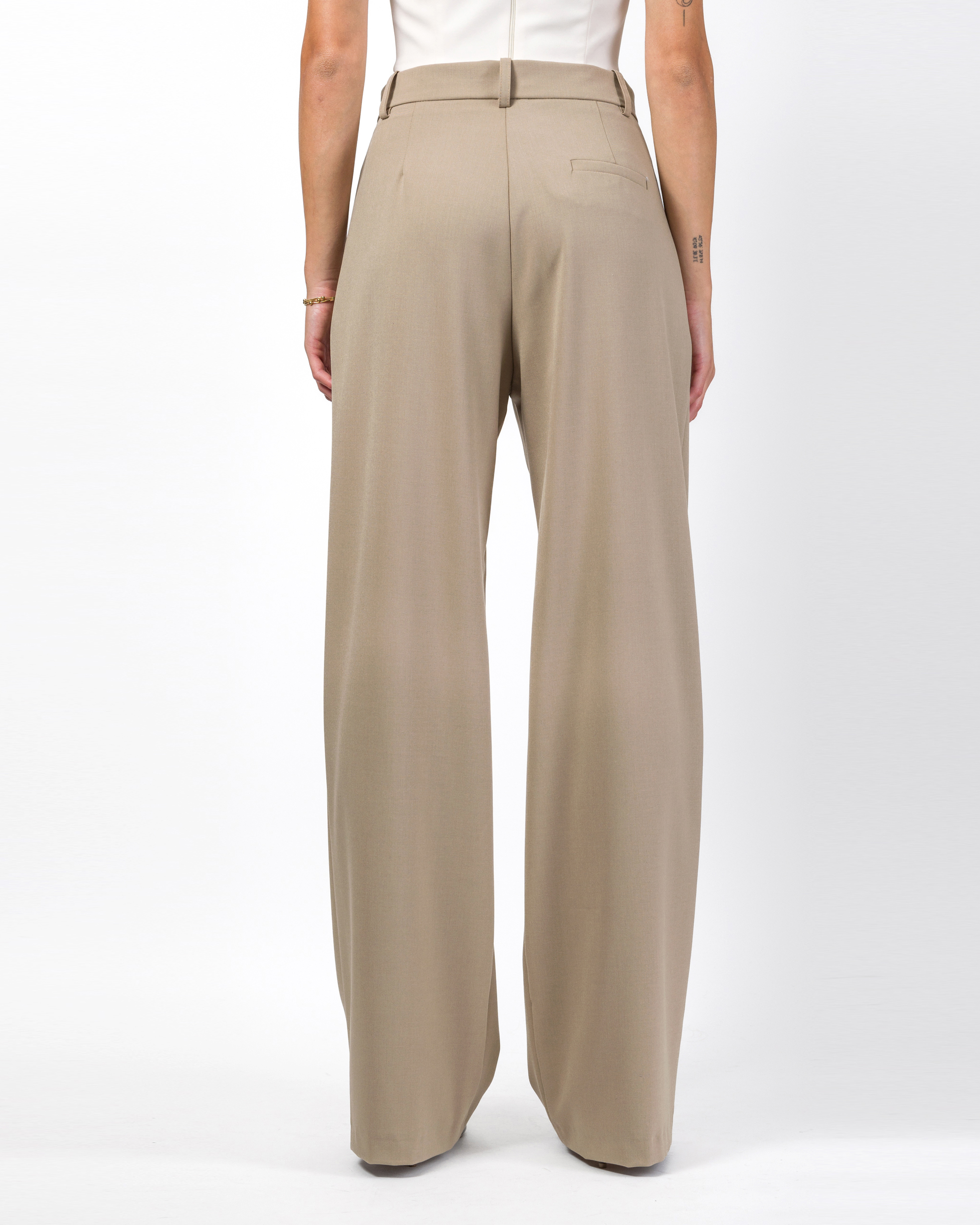 Il pantalone misto viscosa della collezione autunno/inverno di Dixie è caratterizzato dal design a palazzo e presenta vita alta con passanti, piega stirata frontale e tasche america laterali. Chiusura con bottone e zip a scomparsa.