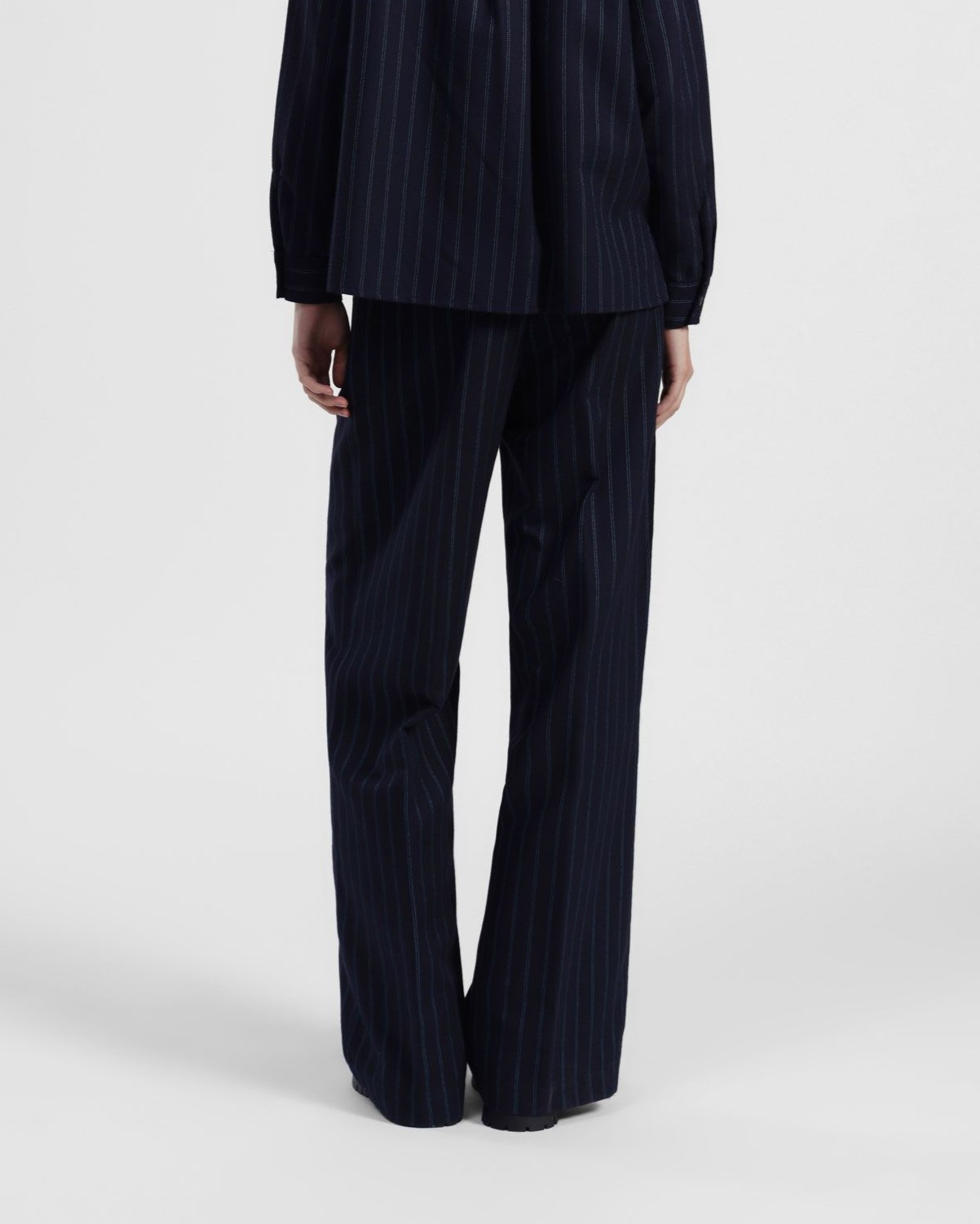 Il pantalone della collezione autunno/inverno di Dixie è caratterizzato dal design a palazzo e presenta stampa gessata, vita elasticata e tasche america.