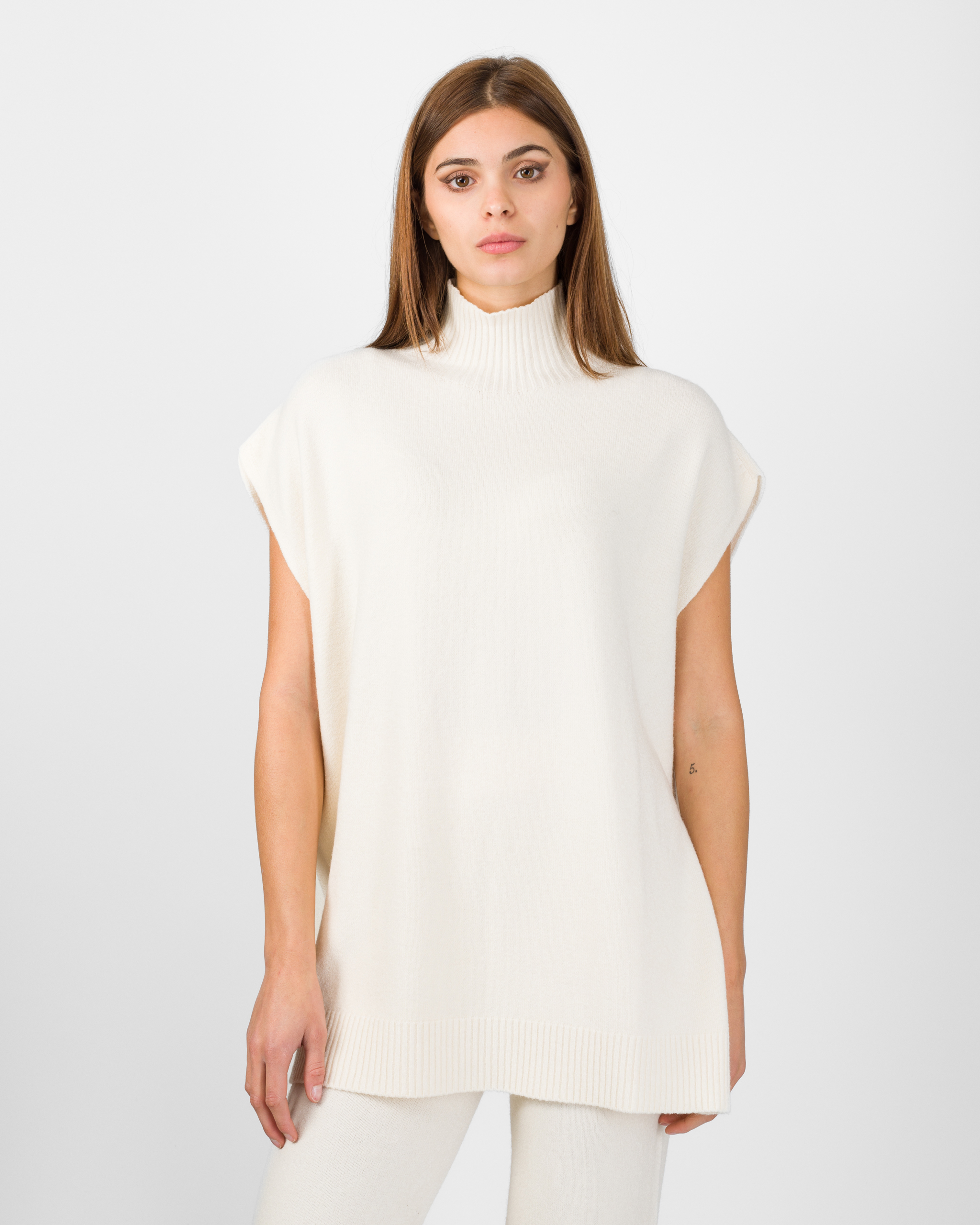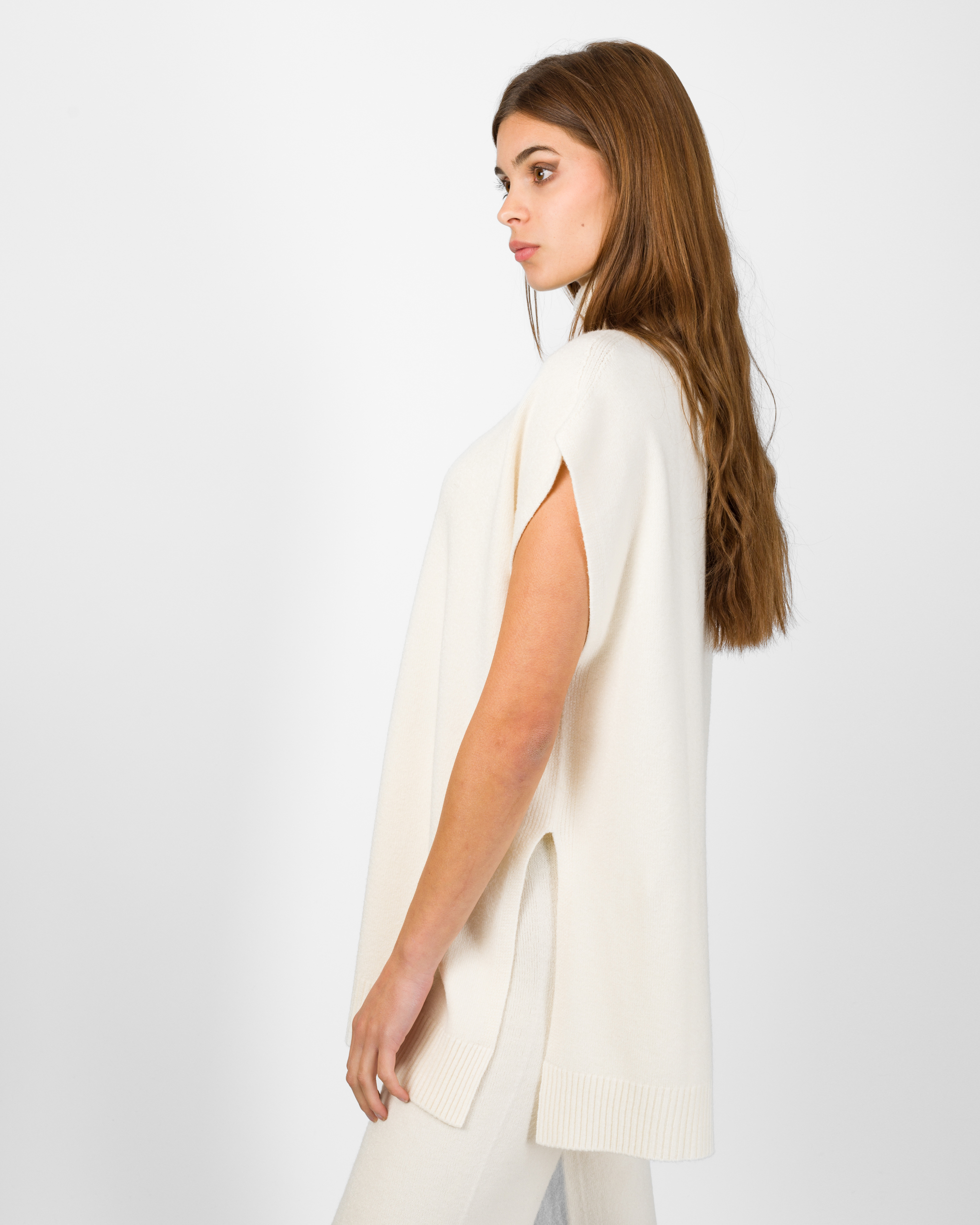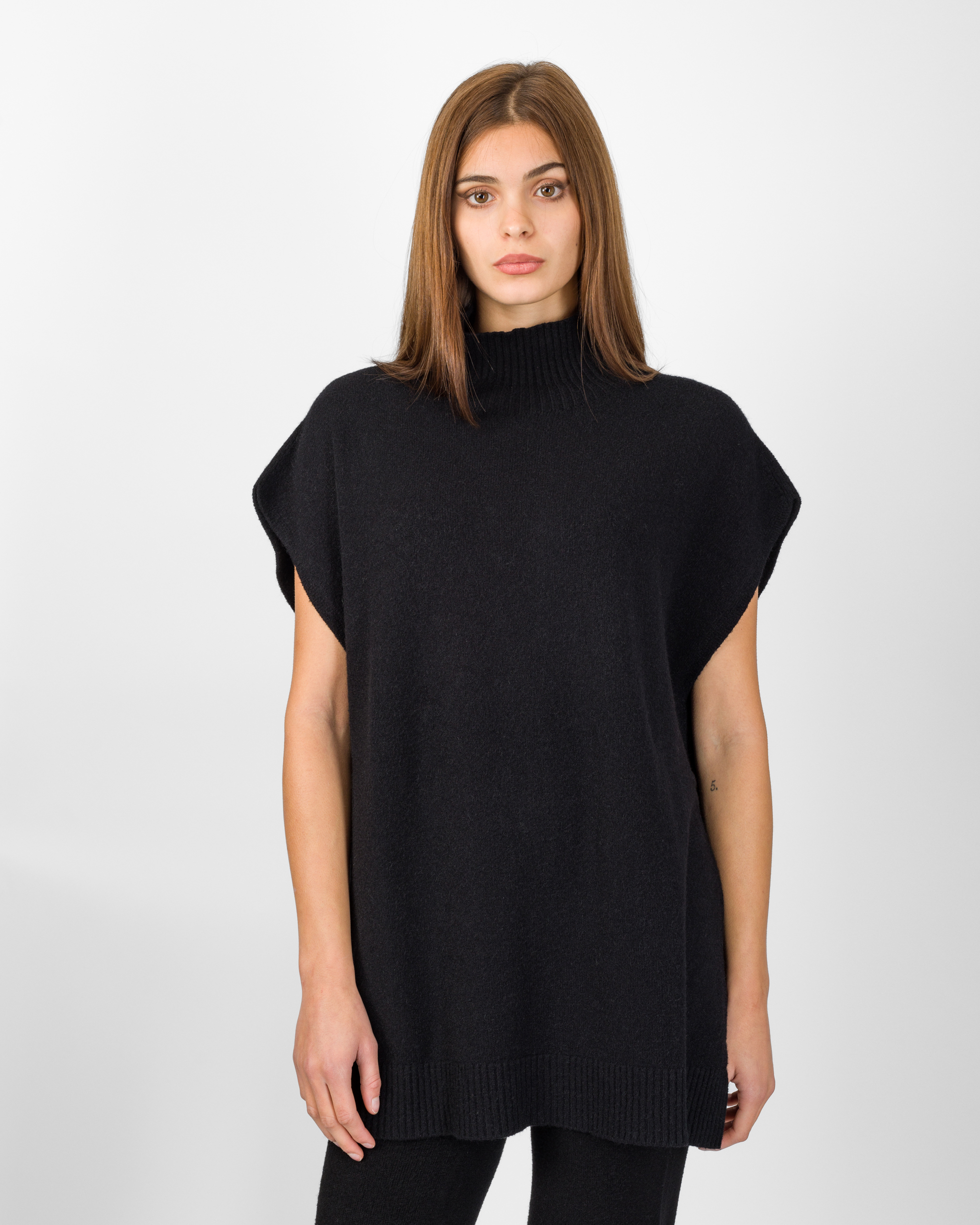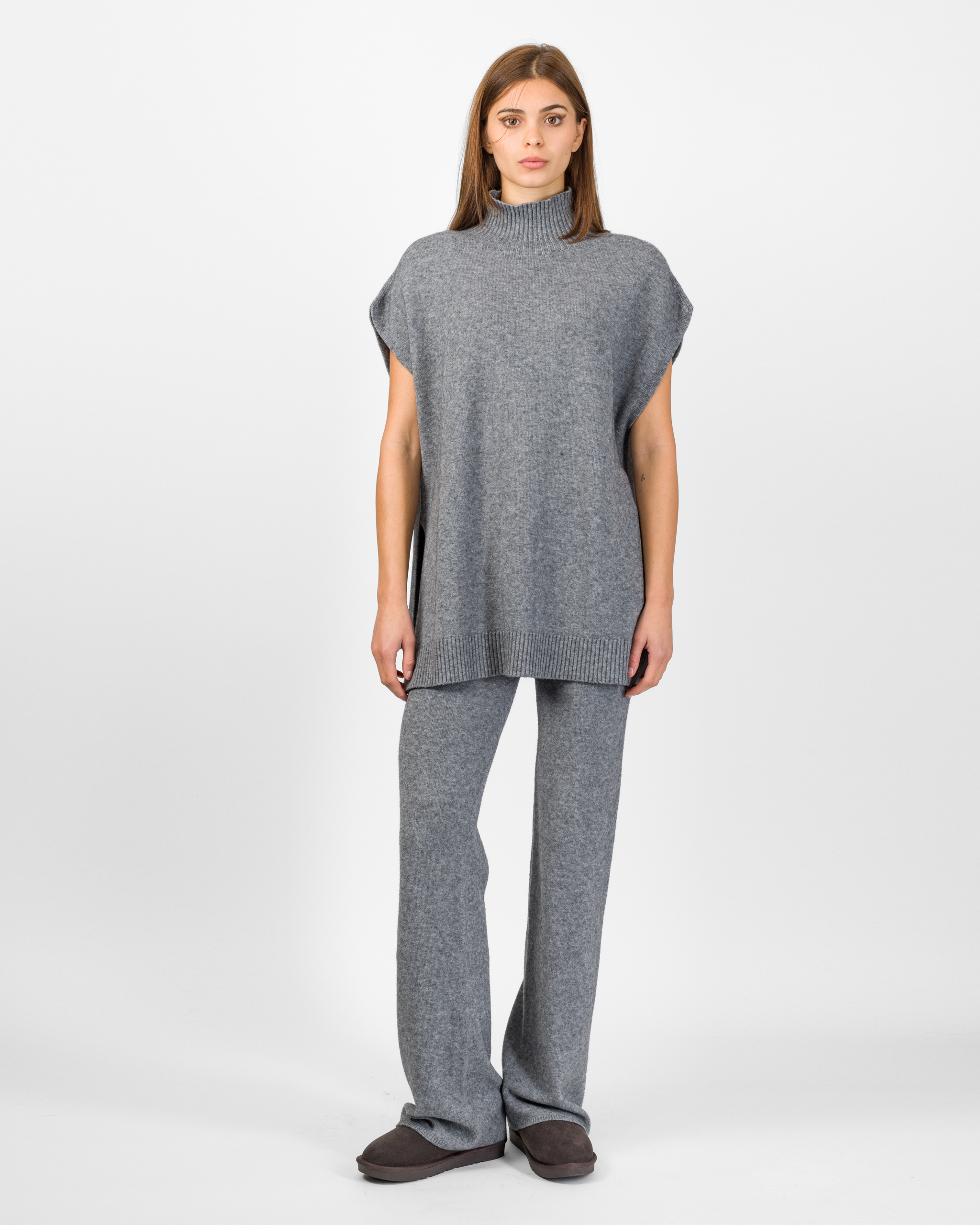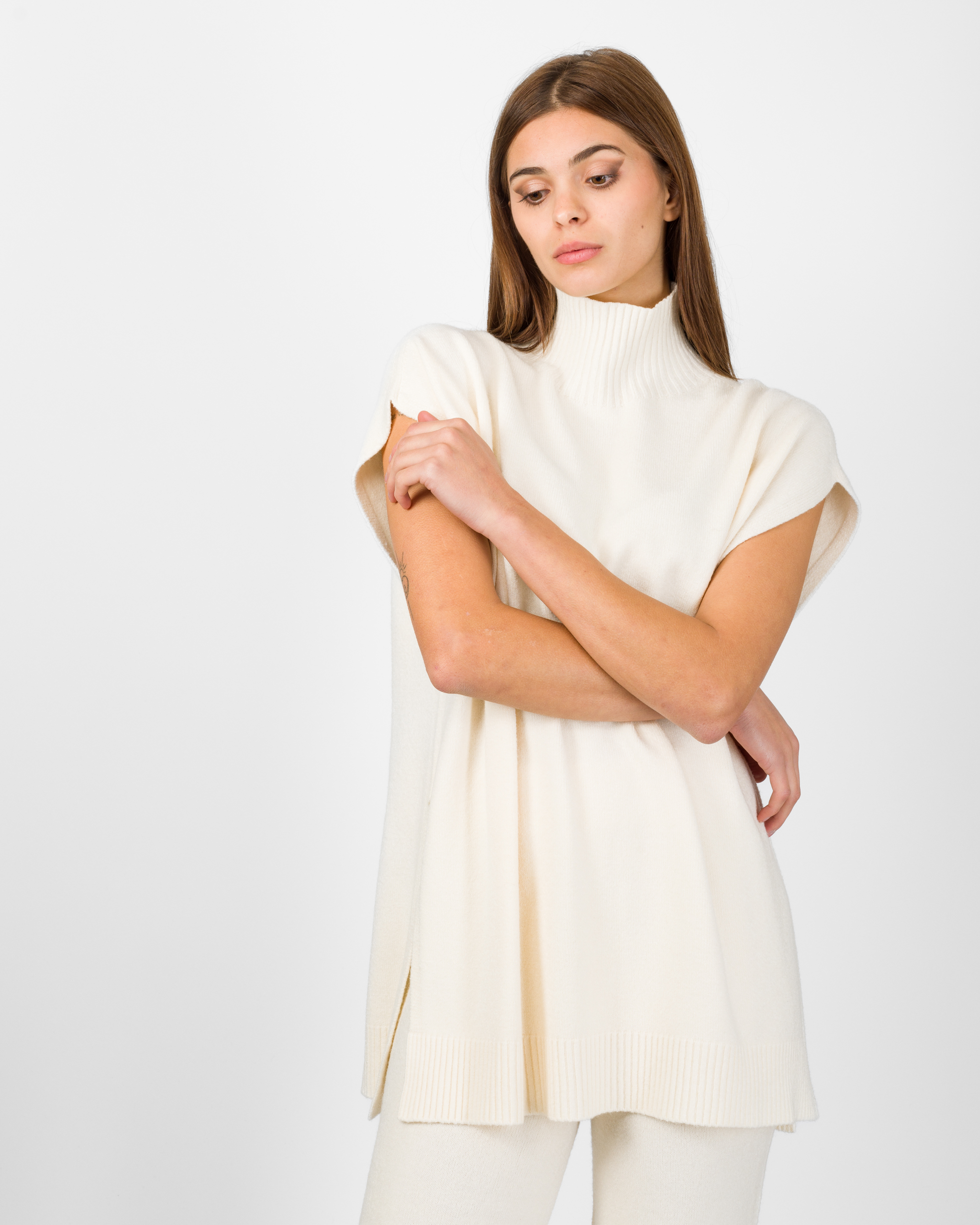 Il poncho della collezione autunno/inverno di Kontatto rappresenta l’alternativa sofisticata al coordinato tradizionale. Smanicato e con spalla scesa, si distingue per la linea morbida ed i delicati spacchetti laterali che ne accentuano il movimento.
