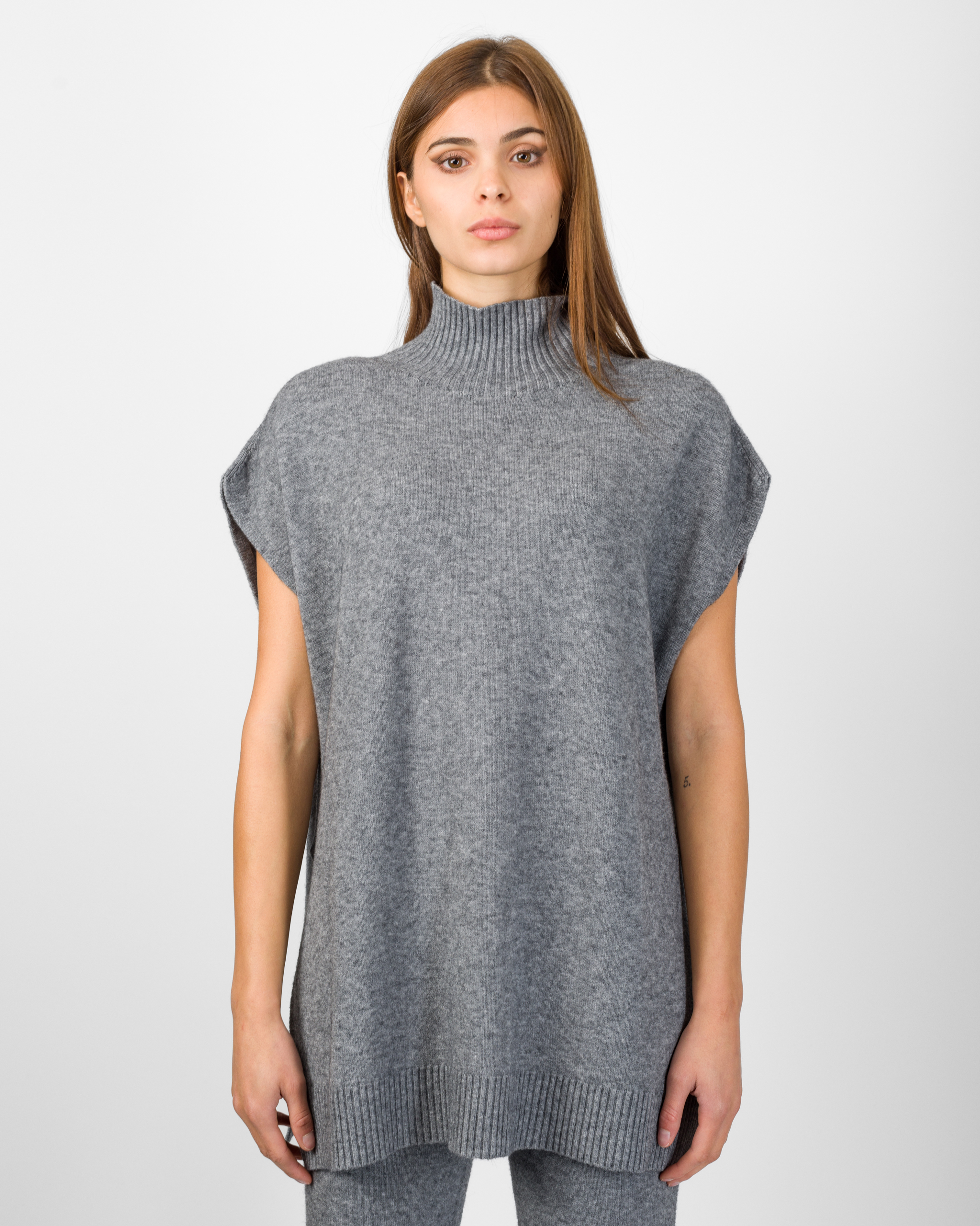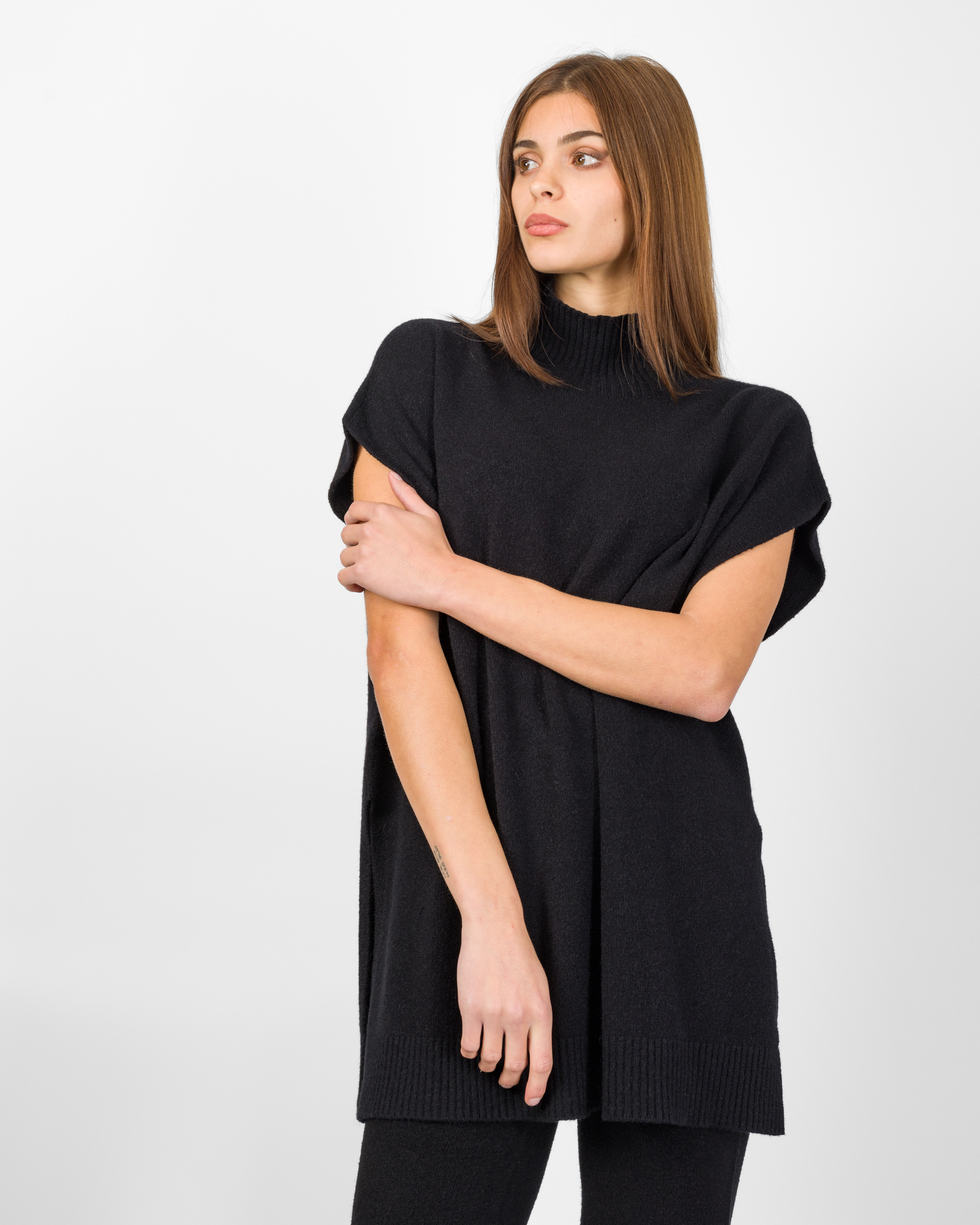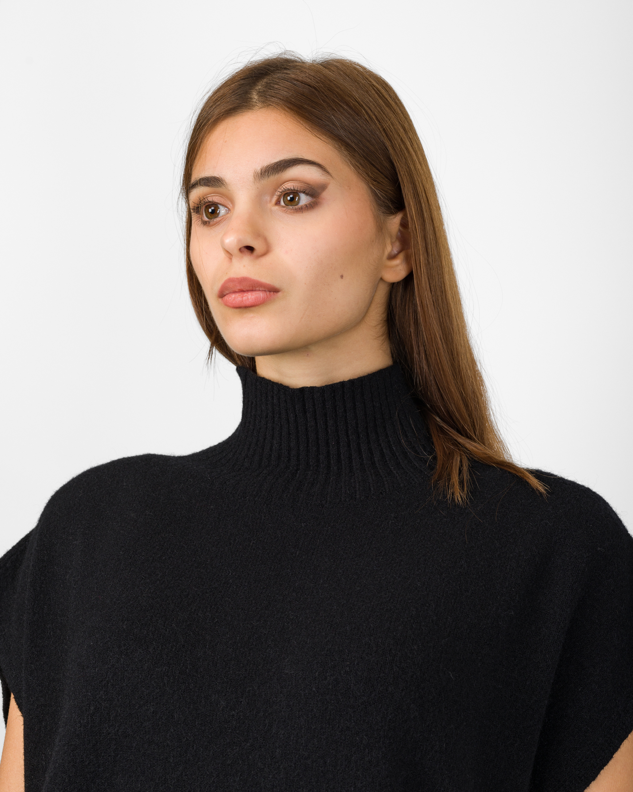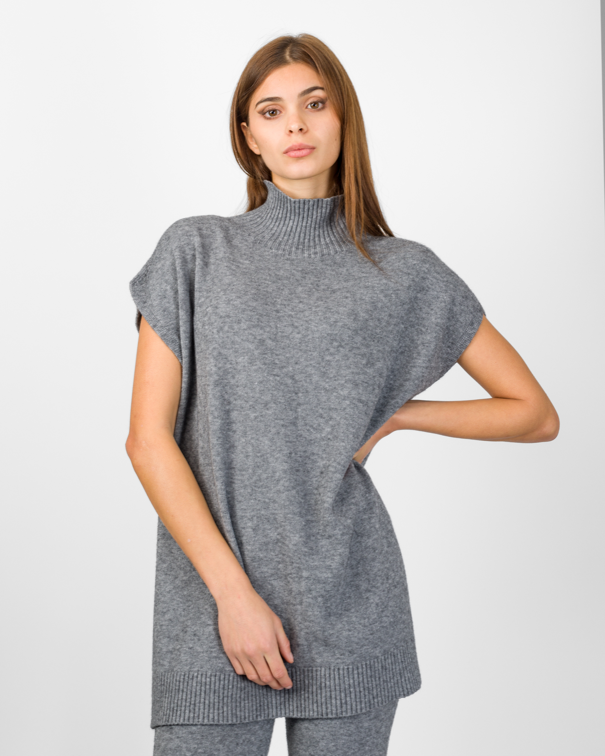 Il poncho della collezione autunno/inverno di Kontatto rappresenta l’alternativa sofisticata al coordinato tradizionale. Smanicato e con spalla scesa, si distingue per la linea morbida ed i delicati spacchetti laterali che ne accentuano il movimento.
