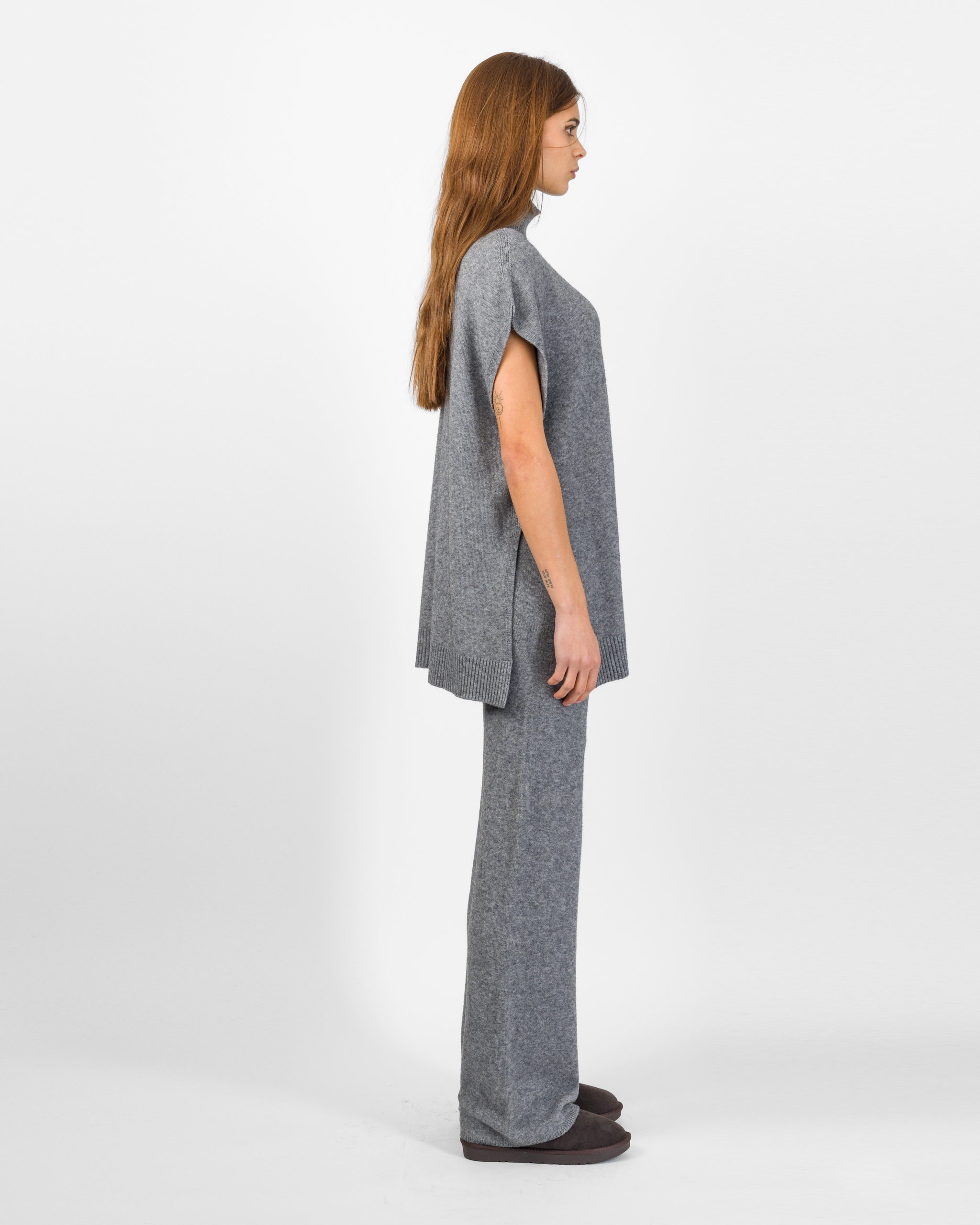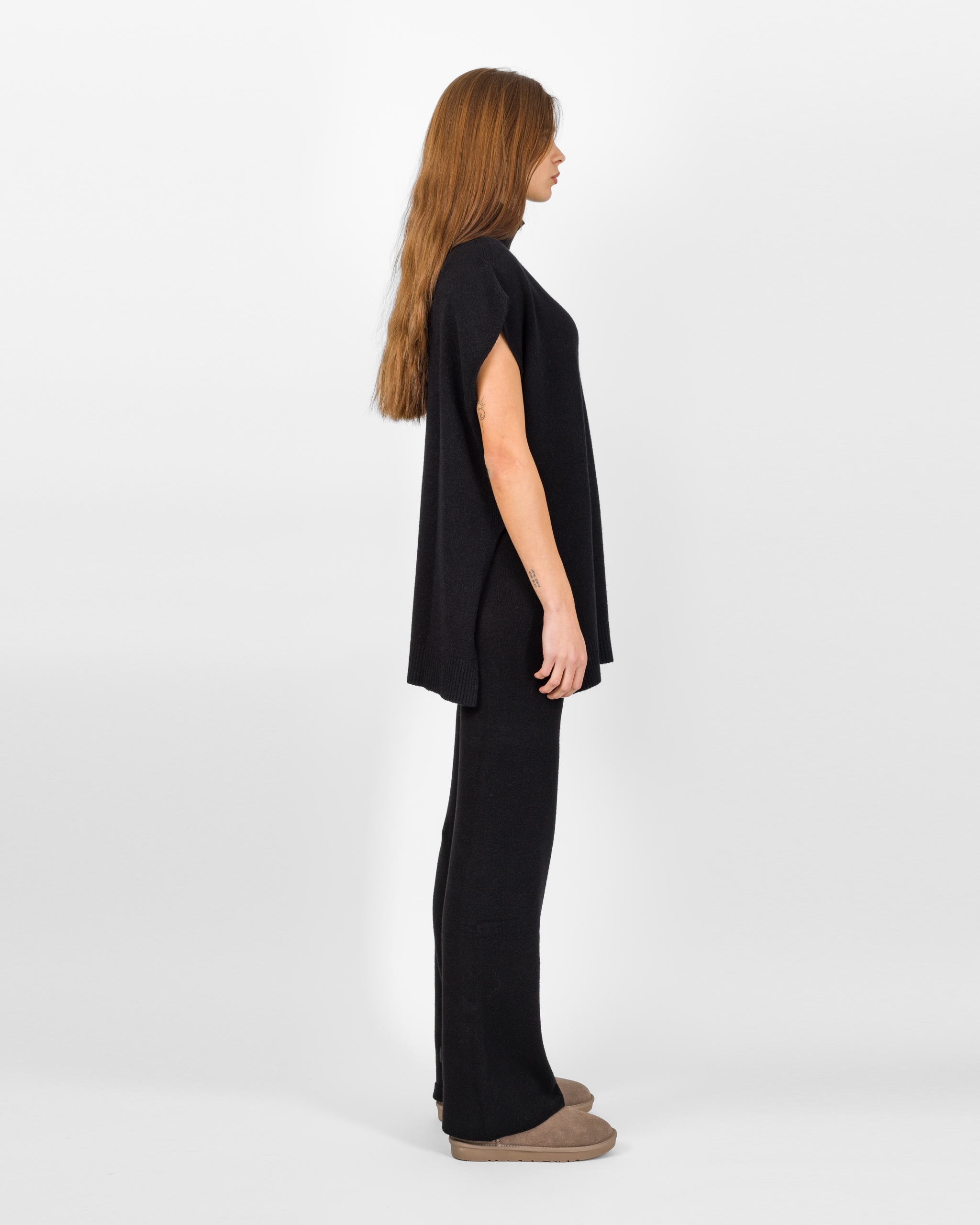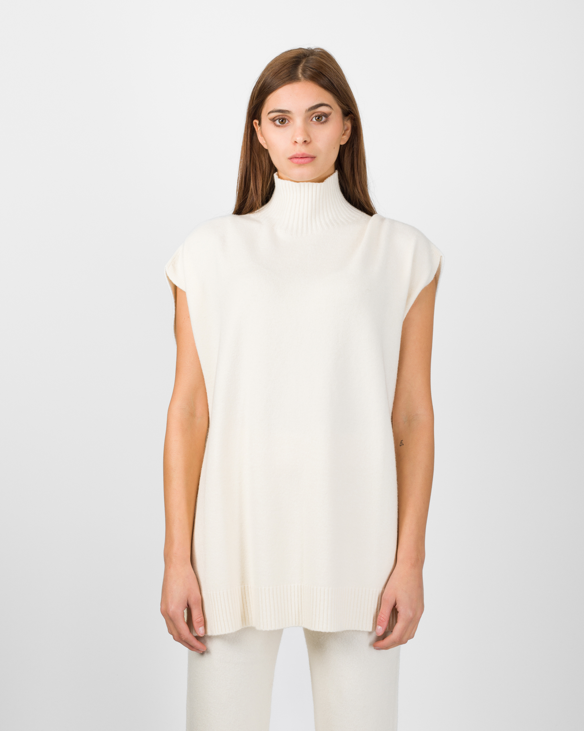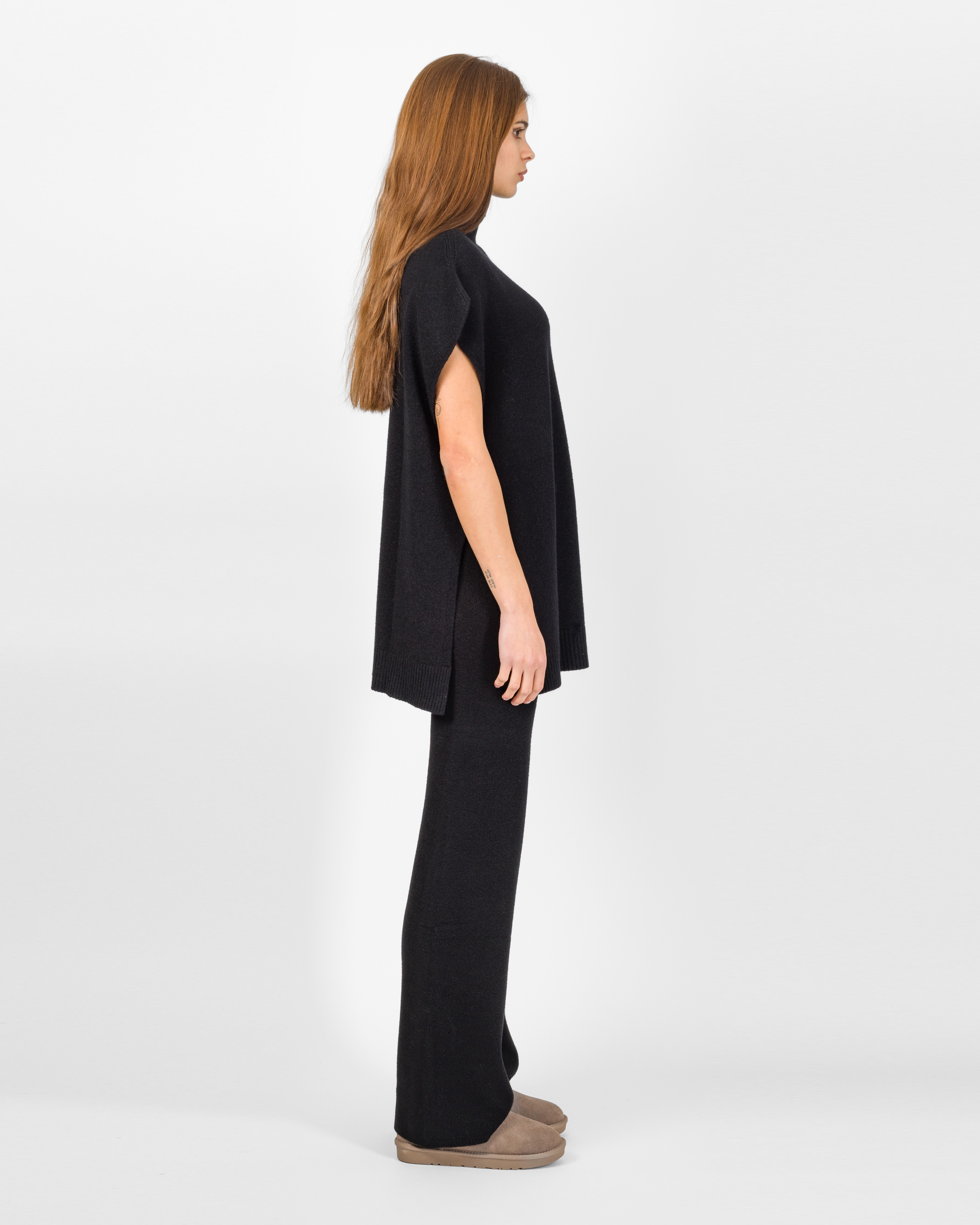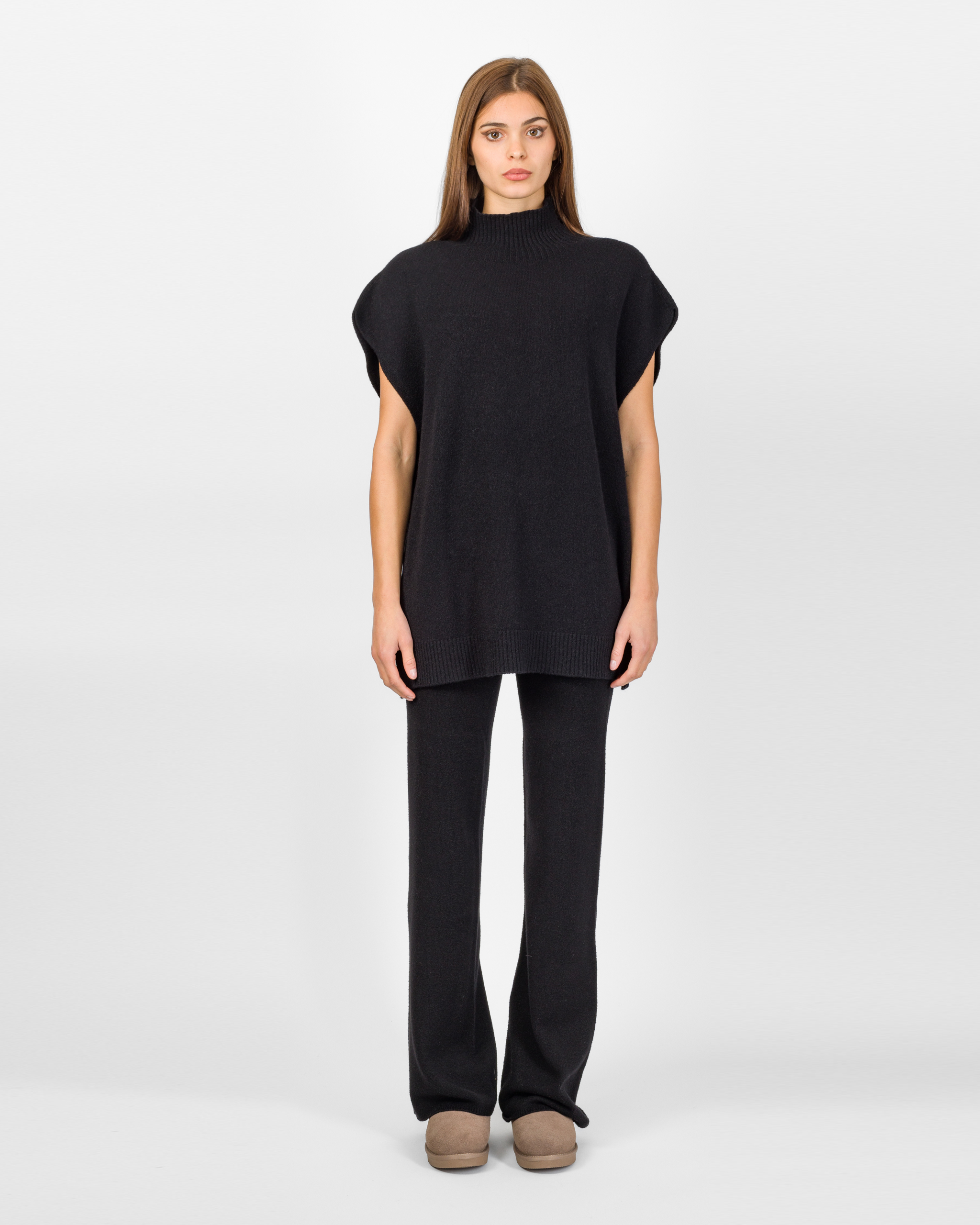 Il poncho della collezione autunno/inverno di Kontatto rappresenta l’alternativa sofisticata al coordinato tradizionale. Smanicato e con spalla scesa, si distingue per la linea morbida ed i delicati spacchetti laterali che ne accentuano il movimento.