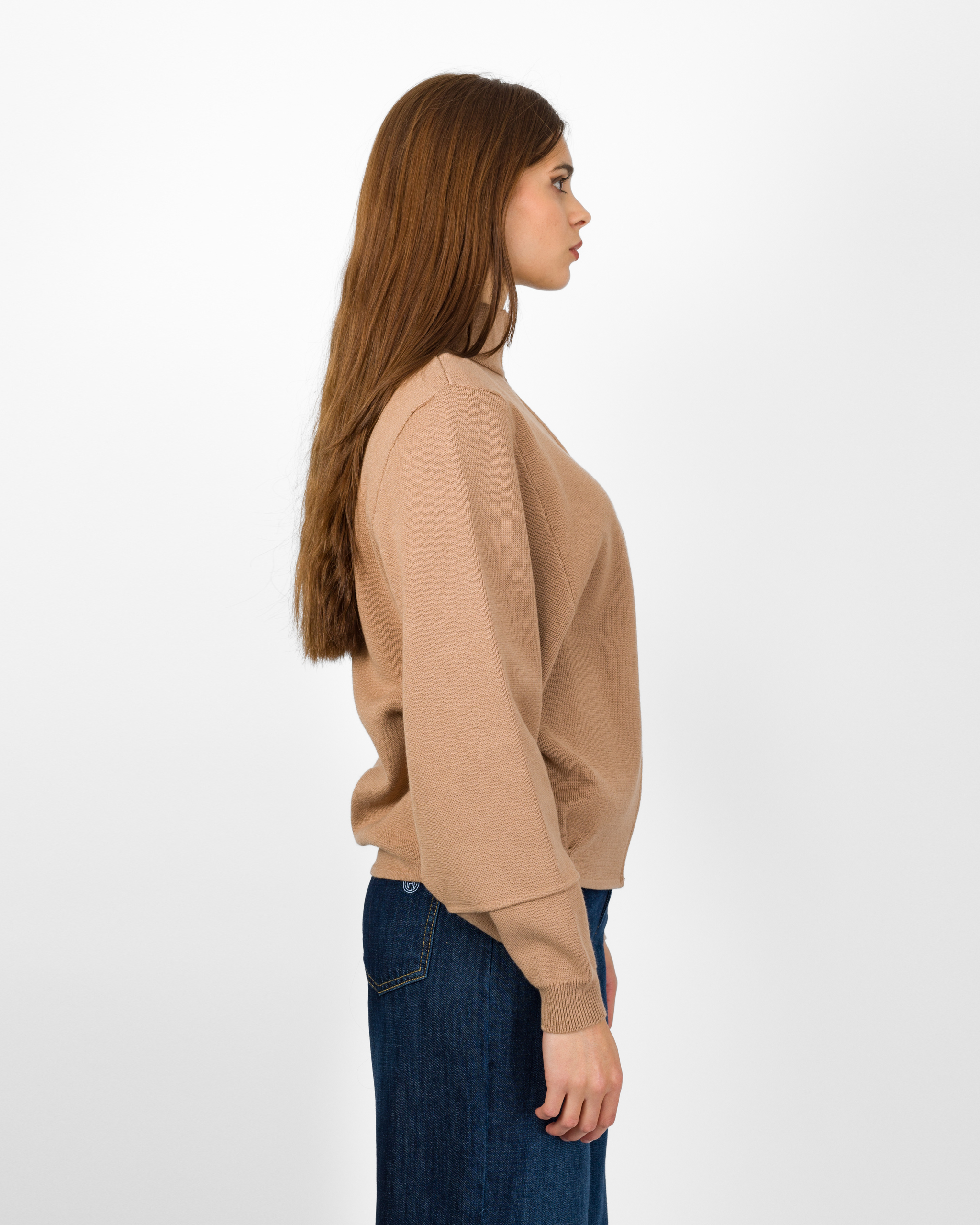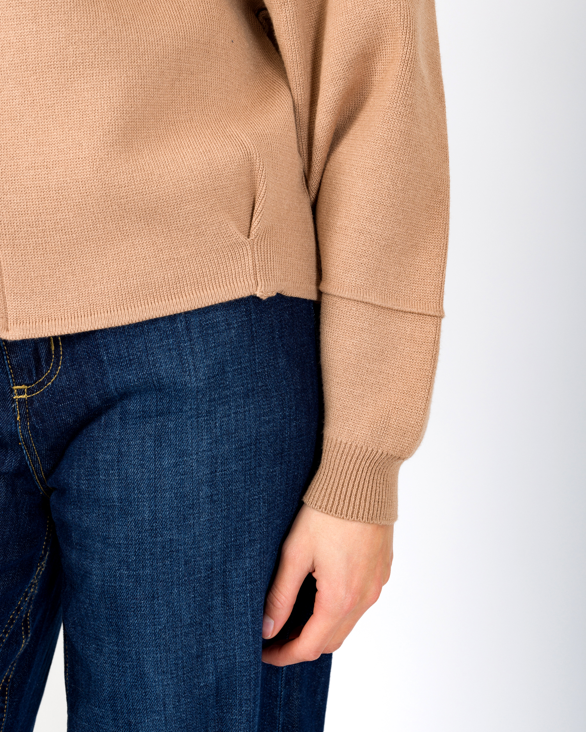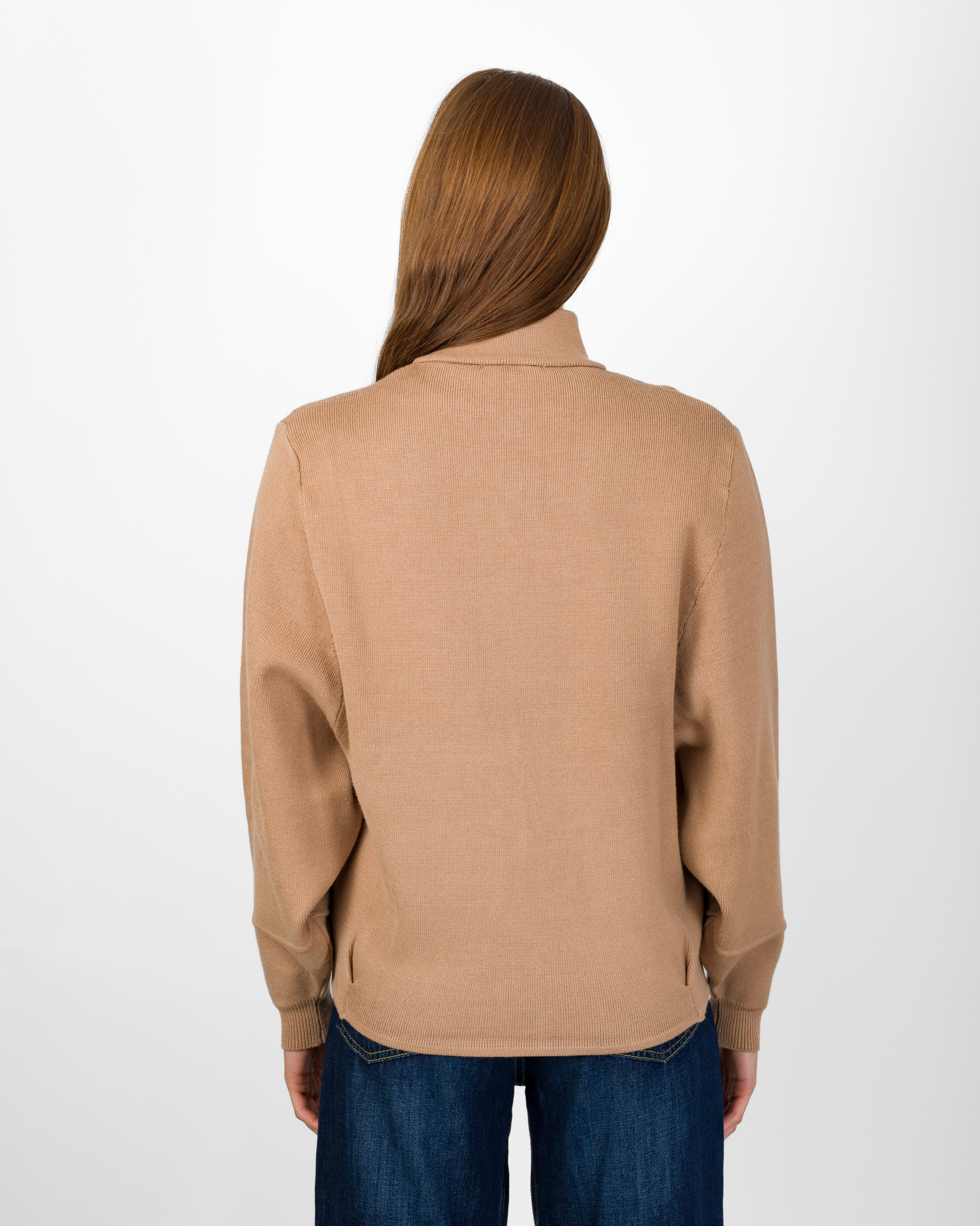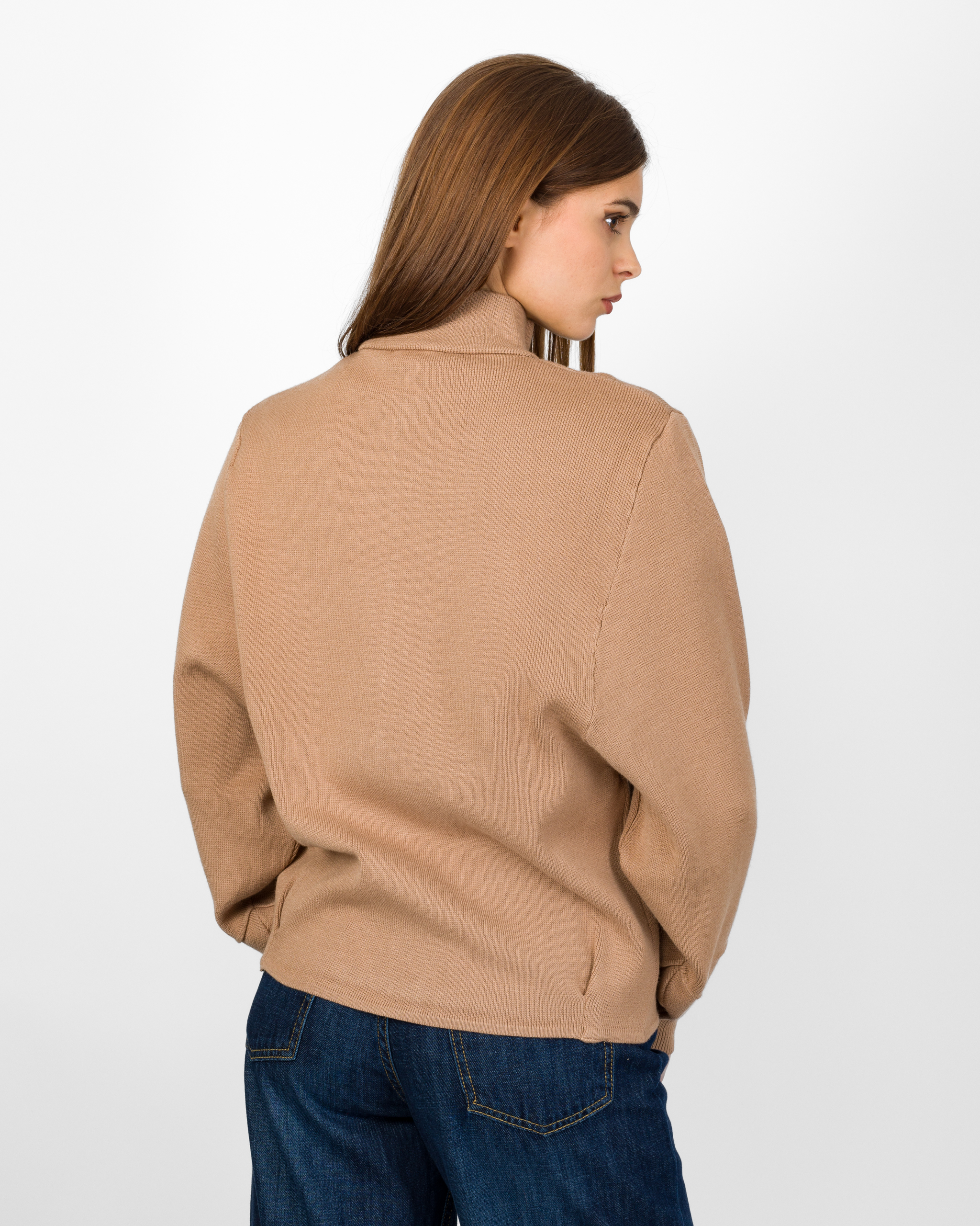Il pull della collezione autunno/inverno di Kontatto è caratterizzato da un design moderno e avvolgente. Presenta collo alto con chiusura frontale a zip metallizzata, maniche lunghe voluminose ed una linea con lunghezza regolare che rende il capo versatile e facile da sovrapporre.