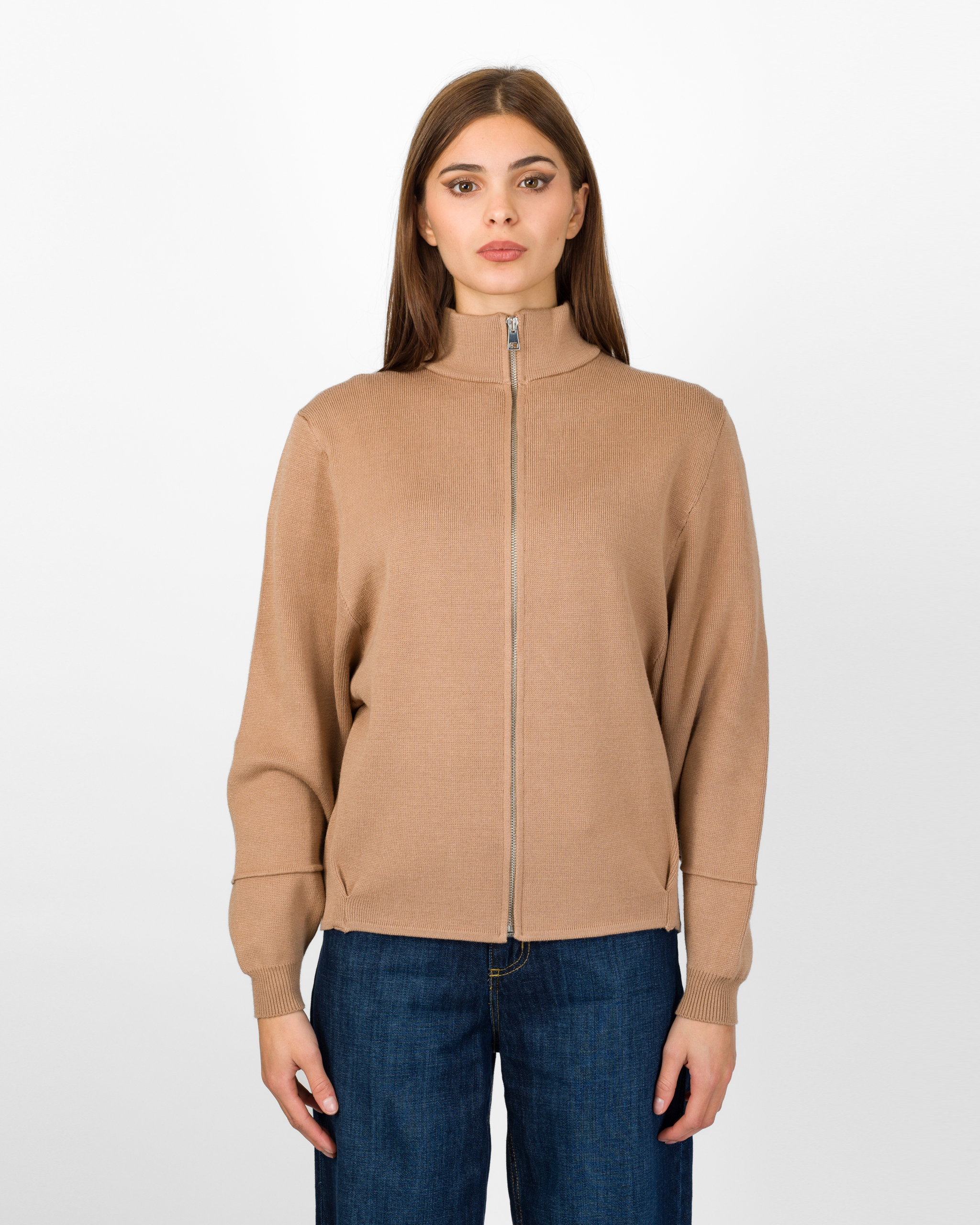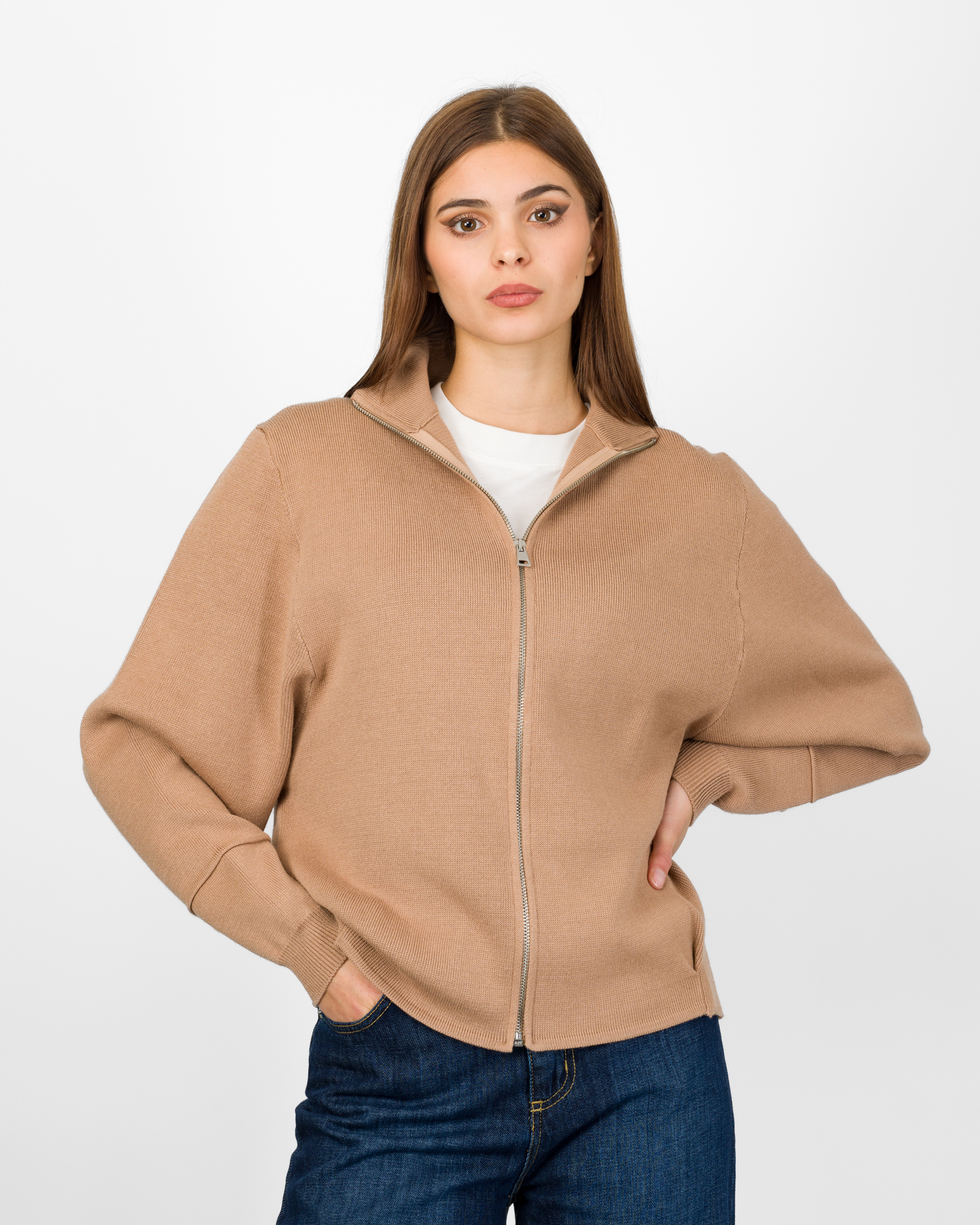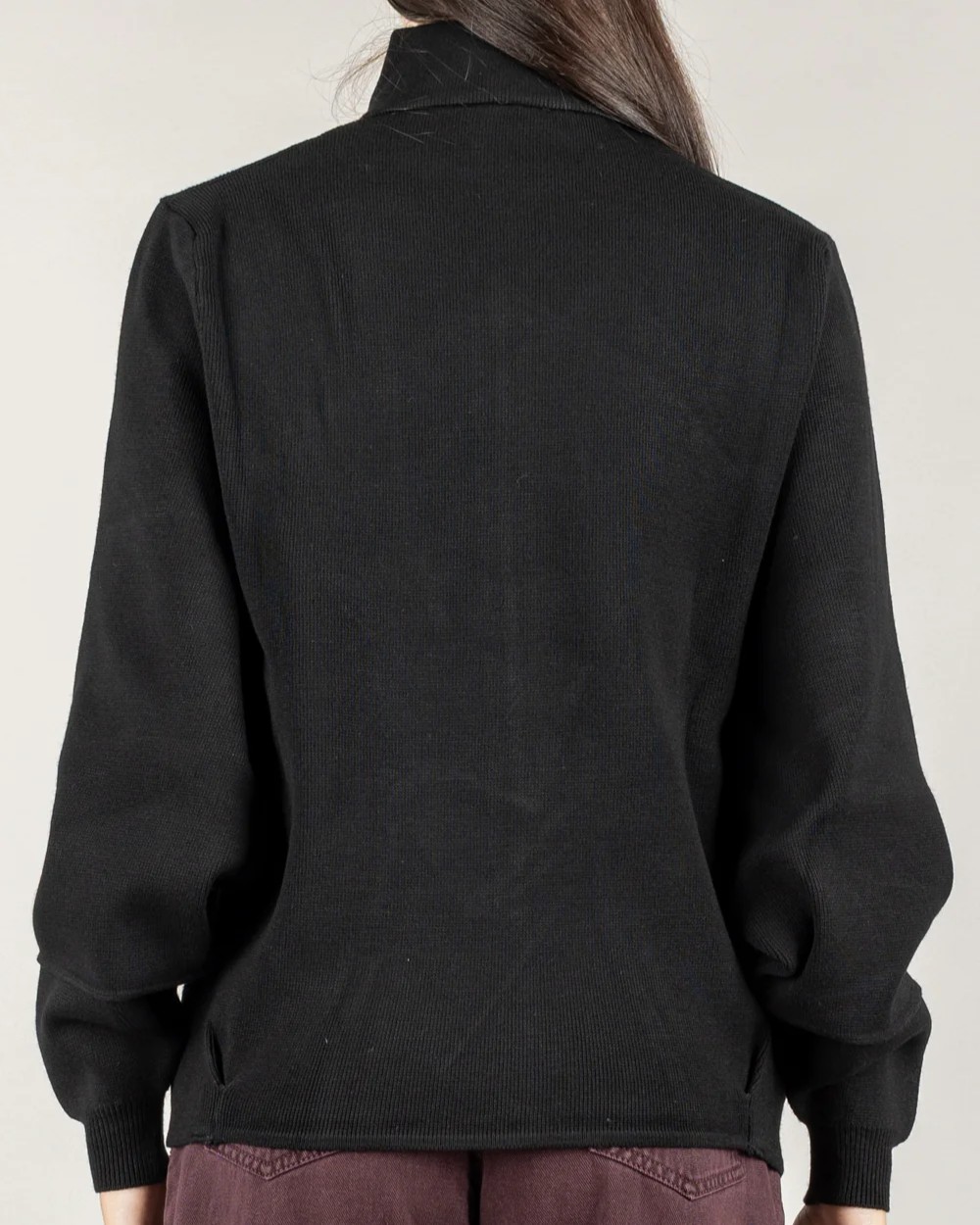 Il pull della collezione autunno/inverno di Kontatto è caratterizzato da un design moderno e avvolgente. Presenta collo alto con chiusura frontale a zip metallizzata, maniche lunghe voluminose ed una linea con lunghezza regolare che rende il capo versatile e facile da sovrapporre.