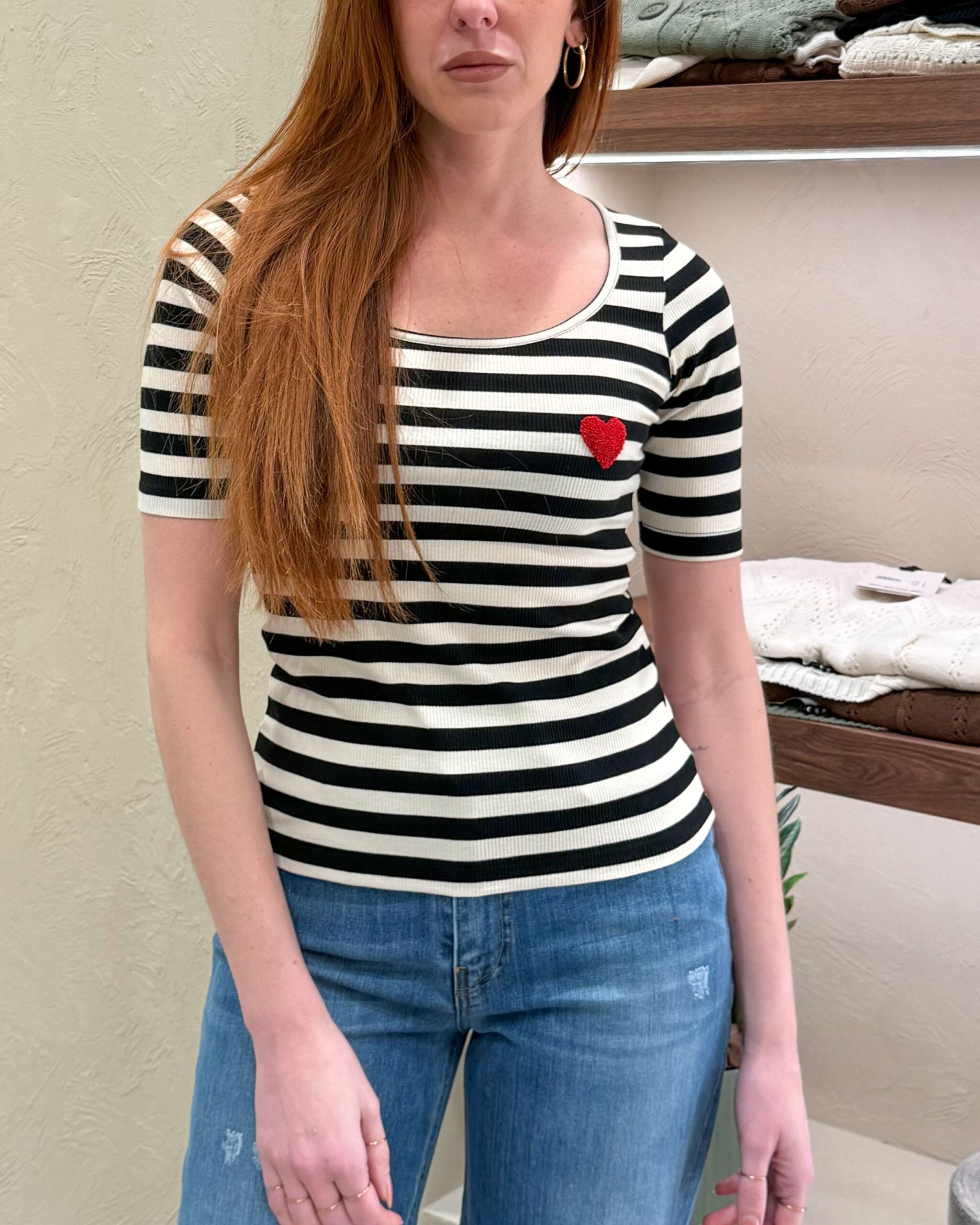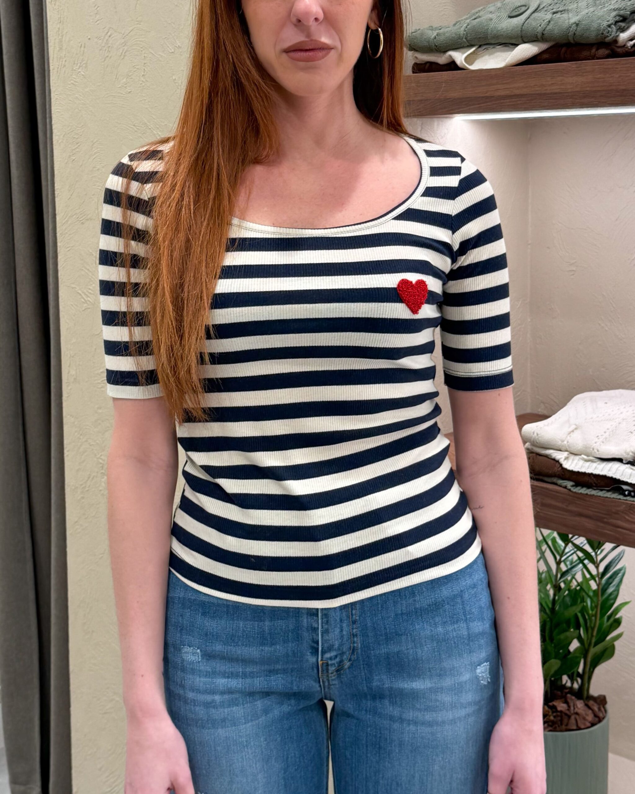 T-SHIRT A RIGHE CON CUORE BOUCLÉ – VICOLO
