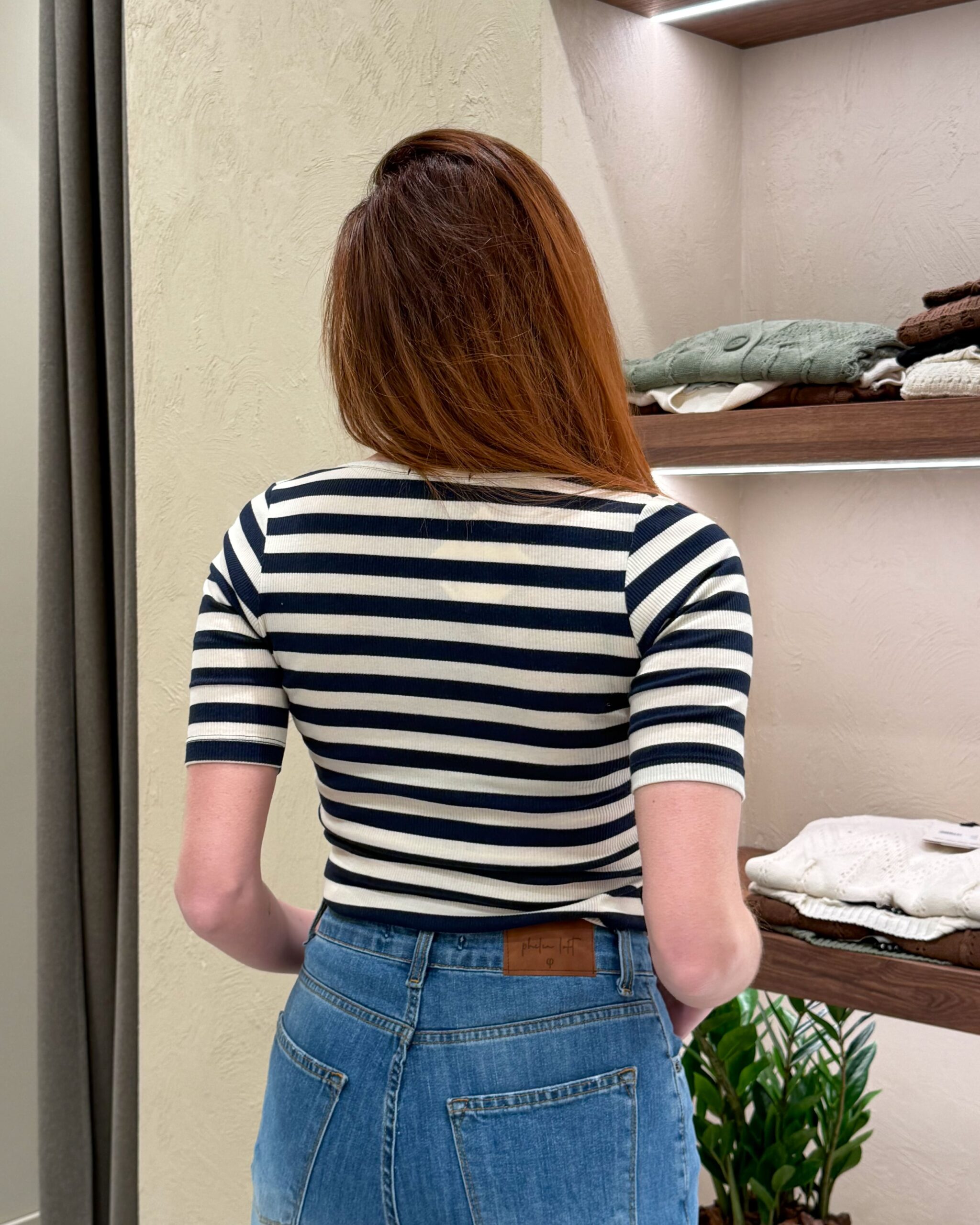 La t-shirt della collezione primavera/estate di Vicolo presenta scollo tondo e motivo a righe all-over, arricchito da un delicato patch a cuore bouclé a contrasto. La linea essenziale e la vestibilità confortevole la rendono un capo versatile, facile da abbinare a jeans o gonne.